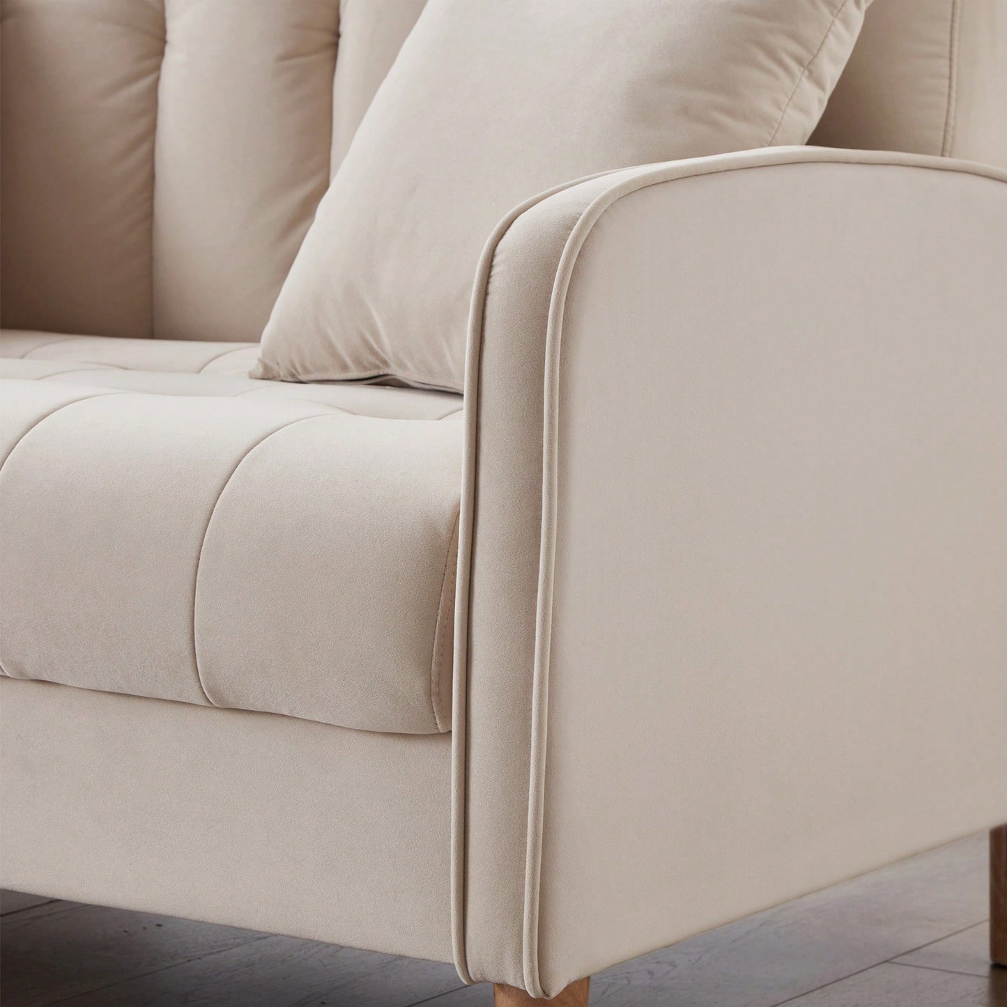 Contemporary Velvet Loveseat For Small Spaces Elegant Tufted Sofa In Beige Ideal For Living Room