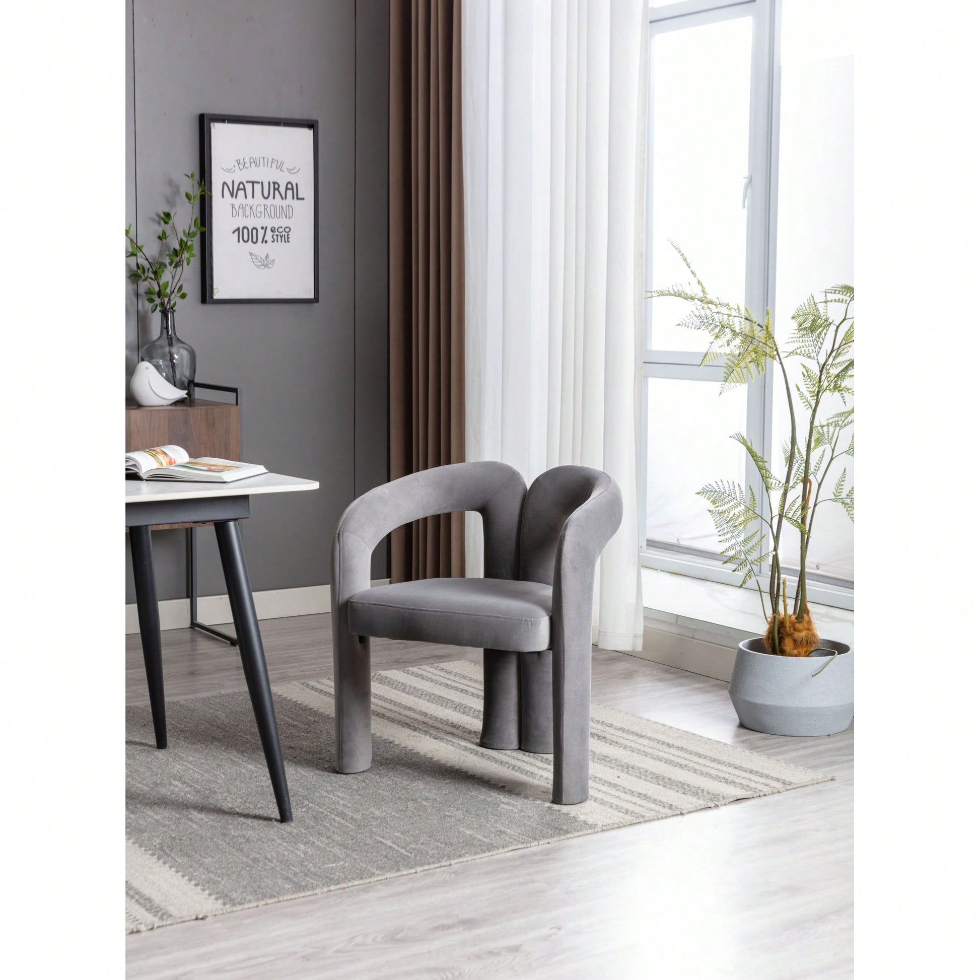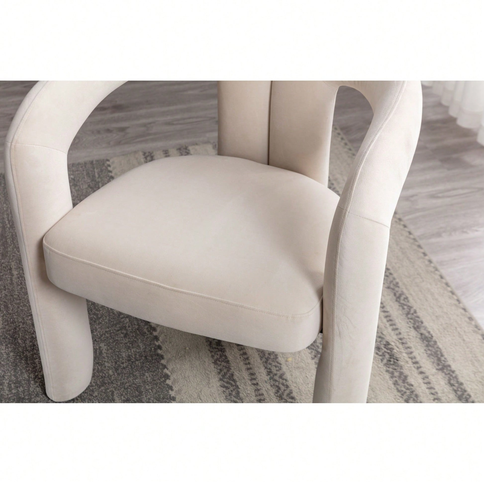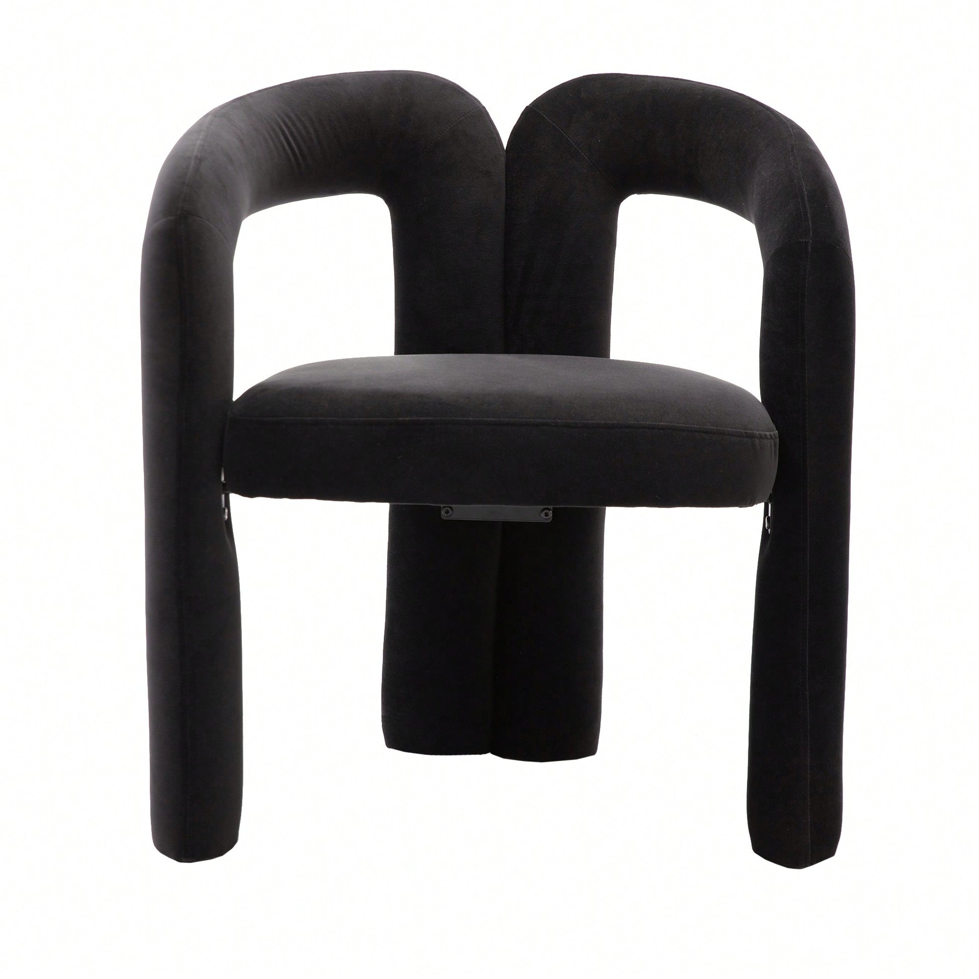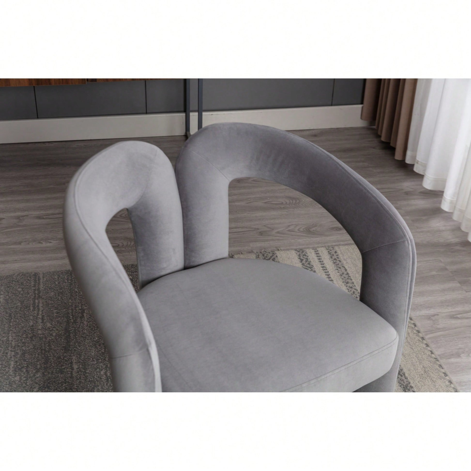This contemporary velvet upholstered accent chair features a sleek design with a curved circular backrest, making it a perfect addition to any living room, dining room, or home office. The soft velvet fabric wraps around a round, full seat, providing exceptional comfort for dinner parties or family gatherings. The chair is filled with high-density foam for added support and comes with wooden leg warmers for stability. Assembly is straightforward, allowing anyone to set it up easily.
