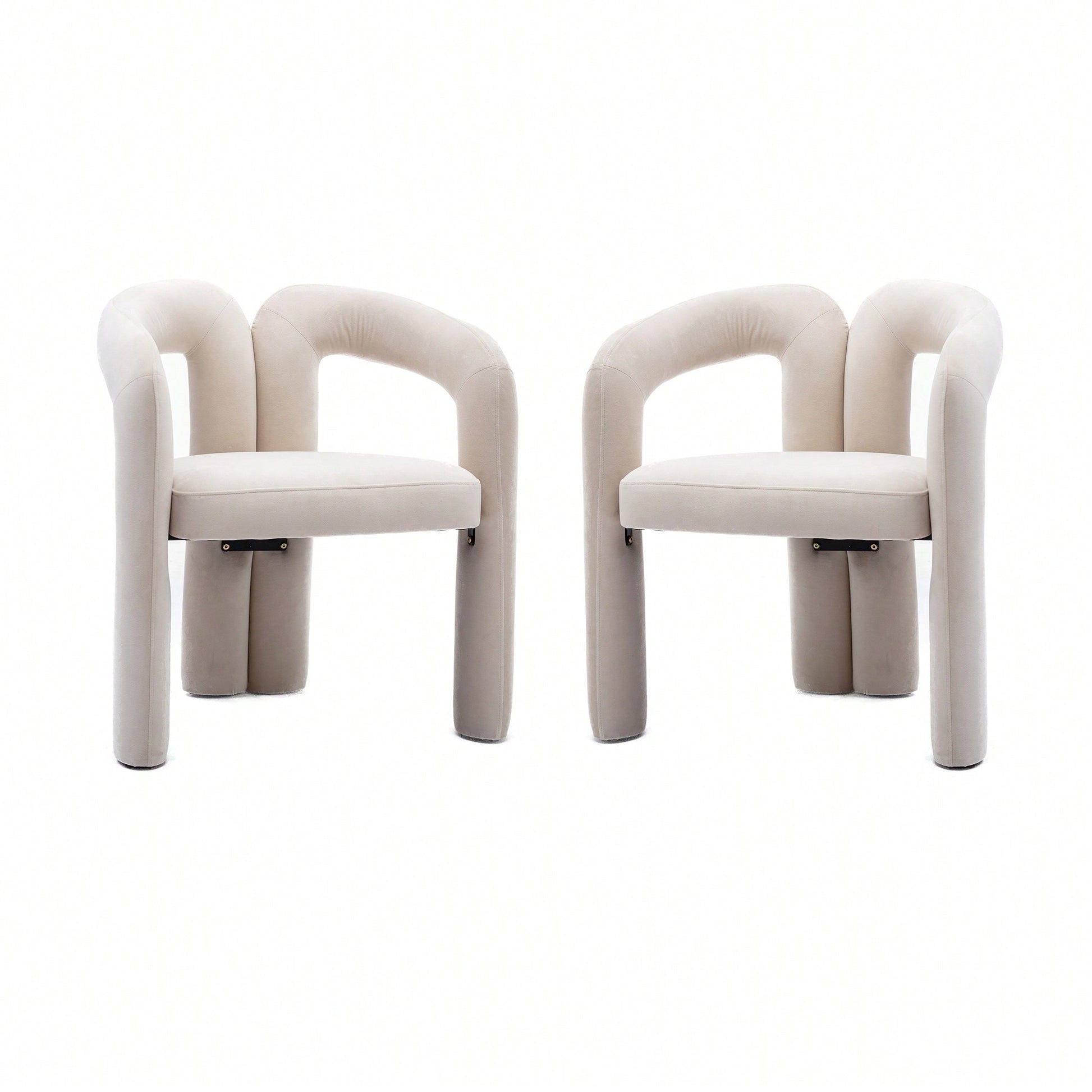 Contemporary Velvet Upholstered Accent Dining Barrel Chairs Set Of 2 Beige For Living Room Kitchen