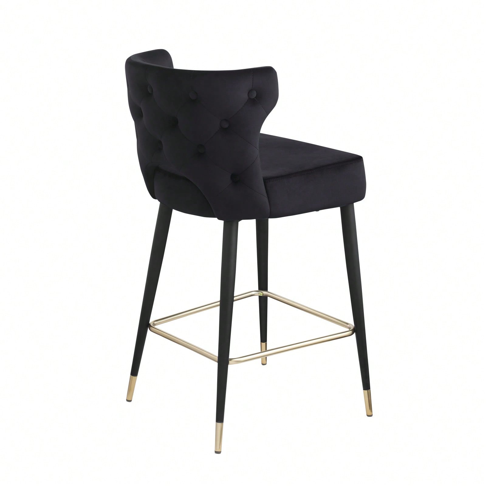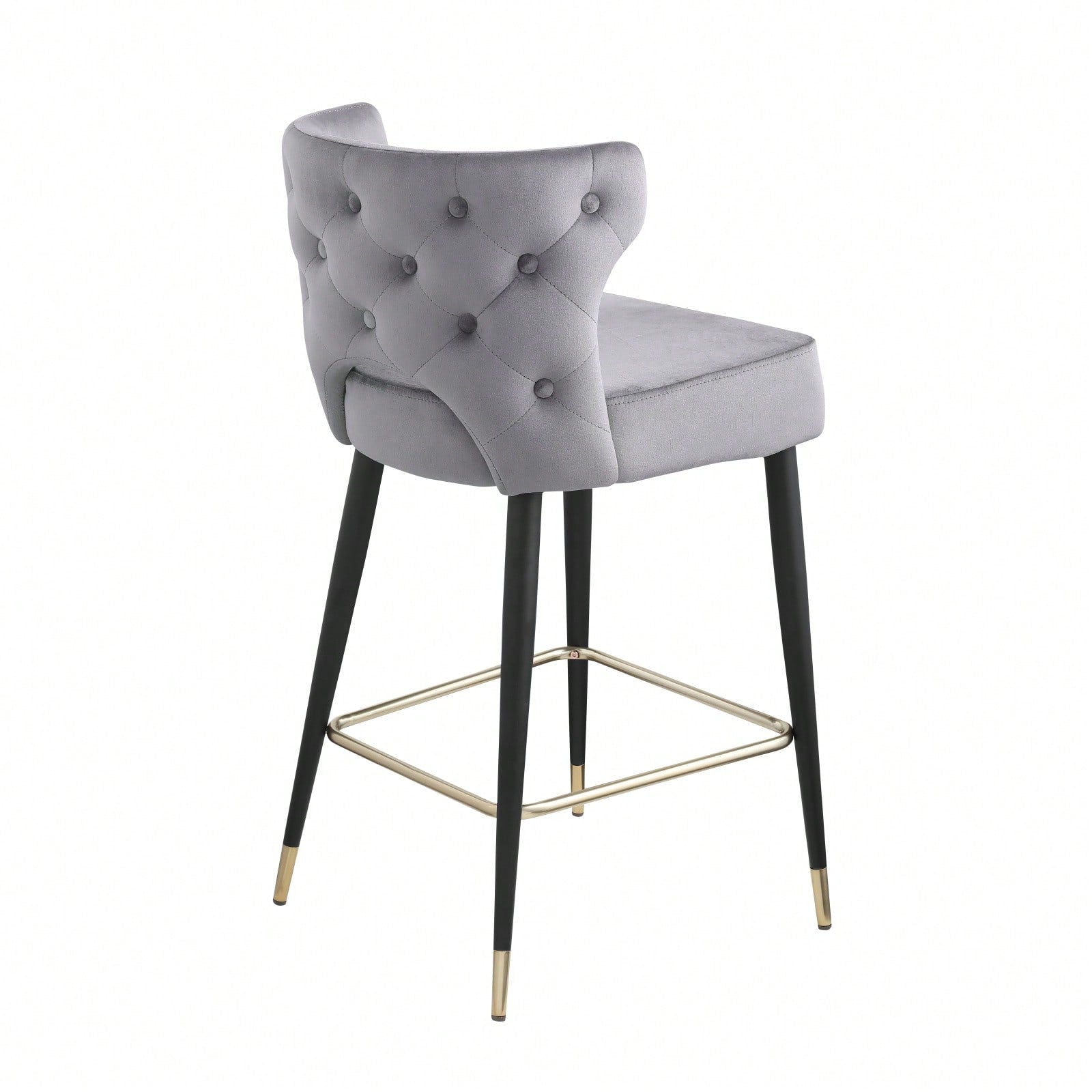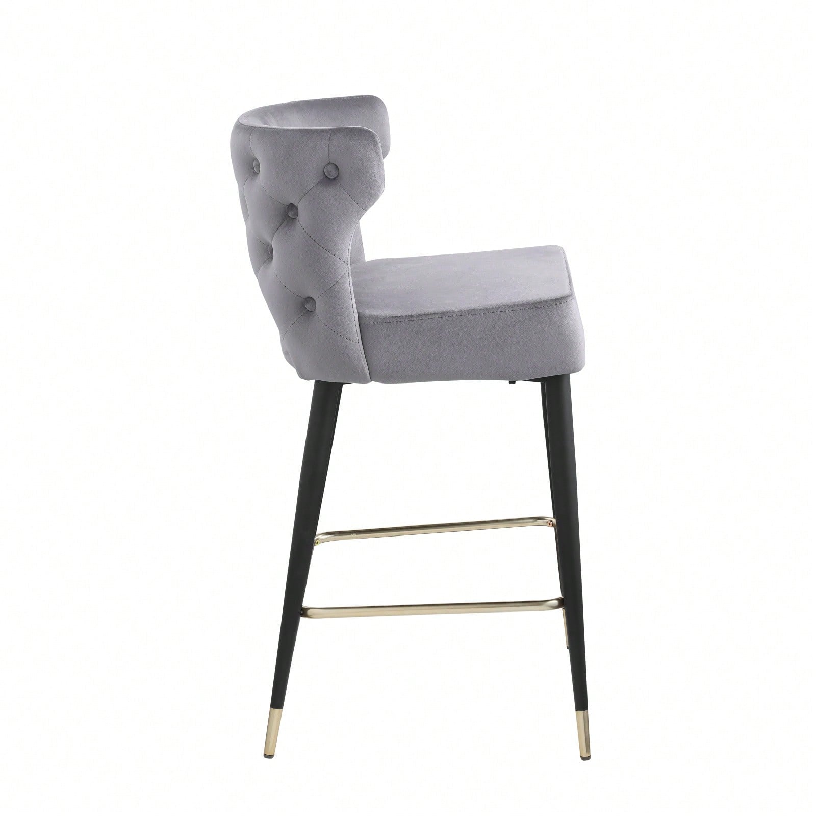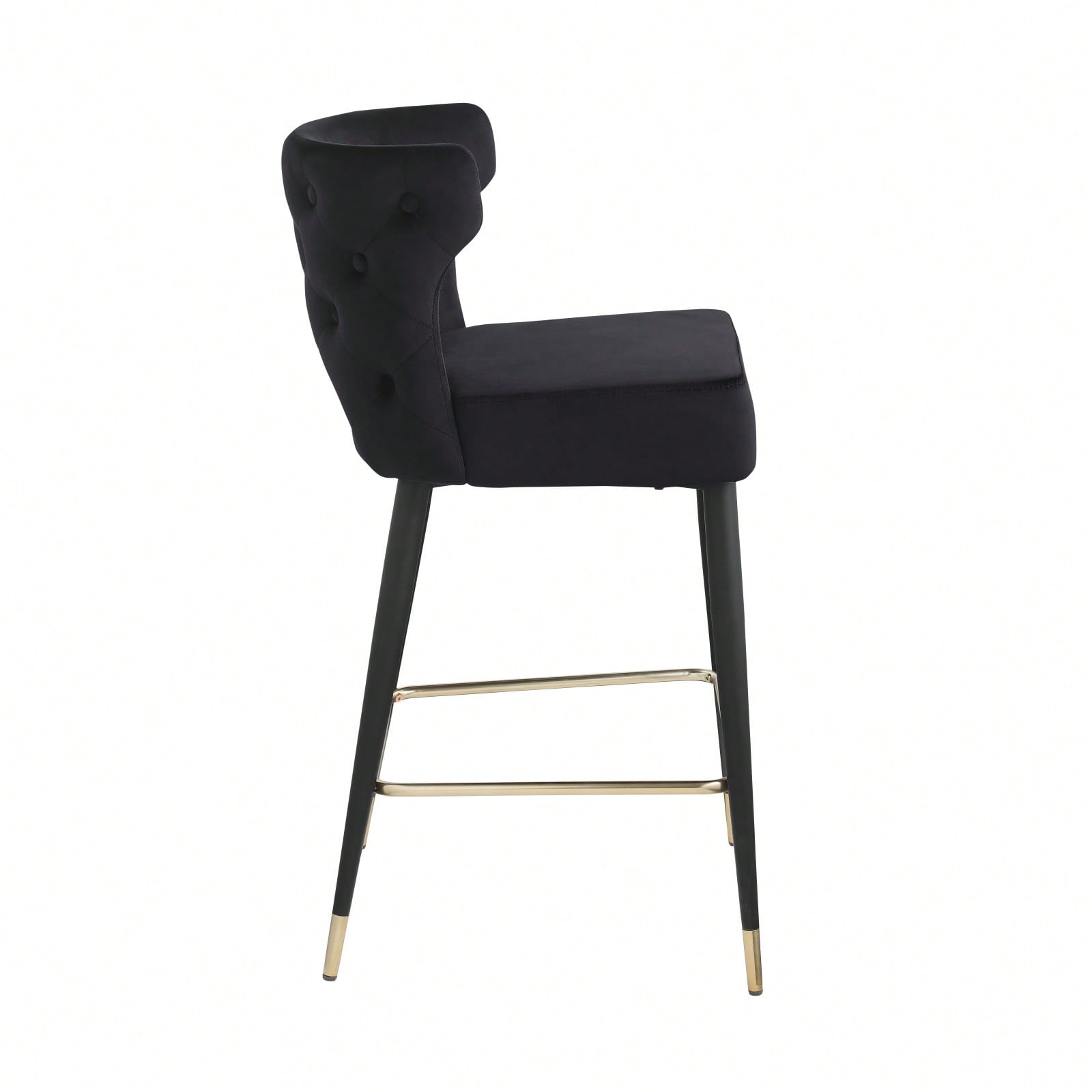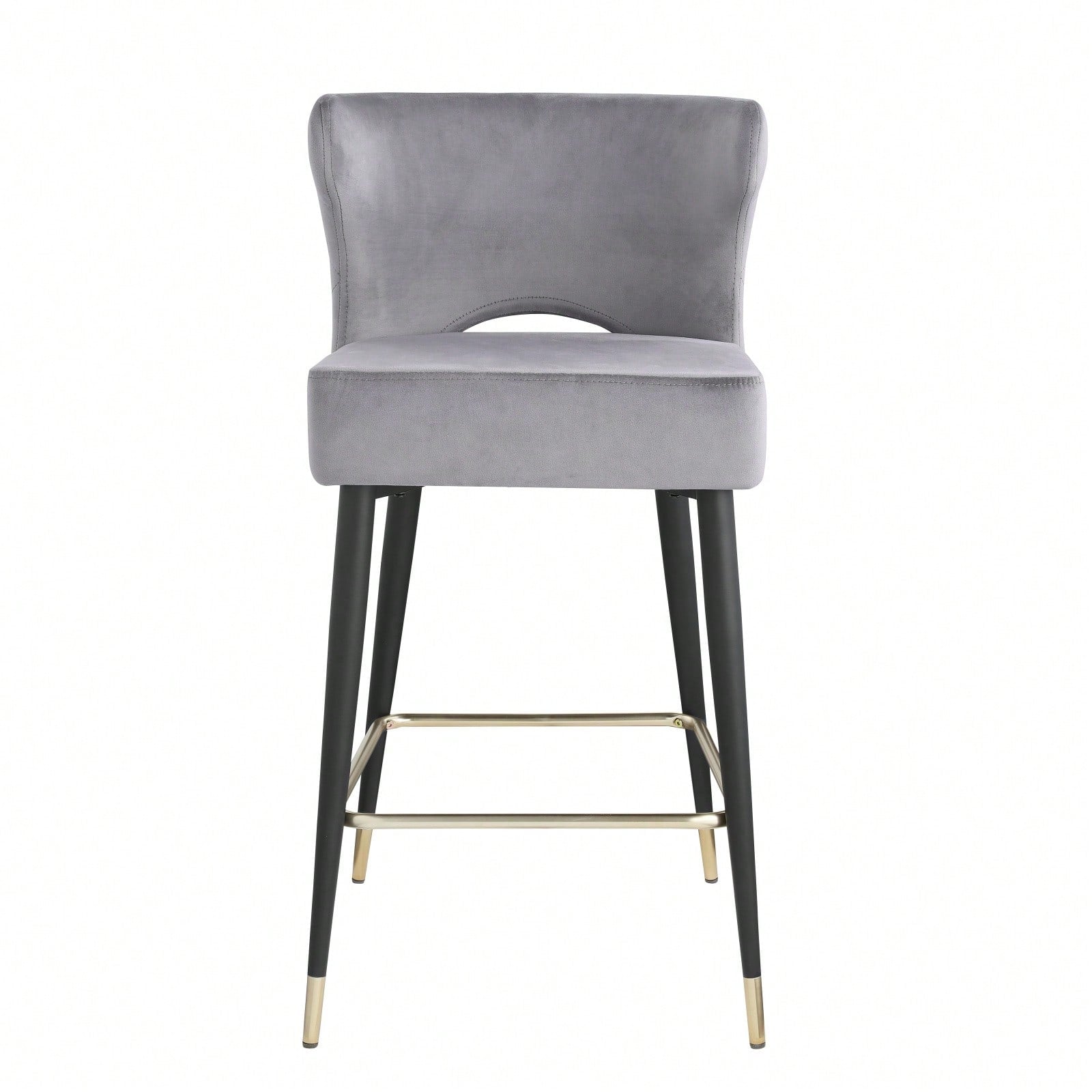 This stylish counter-height stool combines comfort and modern design, making it perfect for elevating your kitchen or bar area. The stool features soft, inviting upholstery and a comfortably padded seat, inviting you to relax and enjoy meals or drinks in style. Its sturdy metal legs boast a sleek, gold-tipped finish, adding a touch of elegance to the design. With its versatile aesthetic, this stool complements a variety of interior styles.