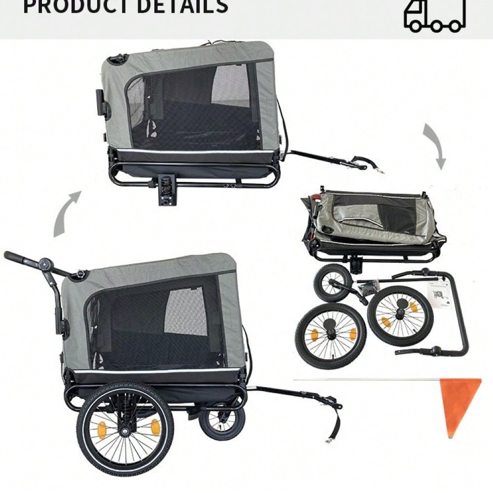 Elder Pet Stroller and Trailer for Medium to Large Dogs with Zippered Entrances and Mesh Doors