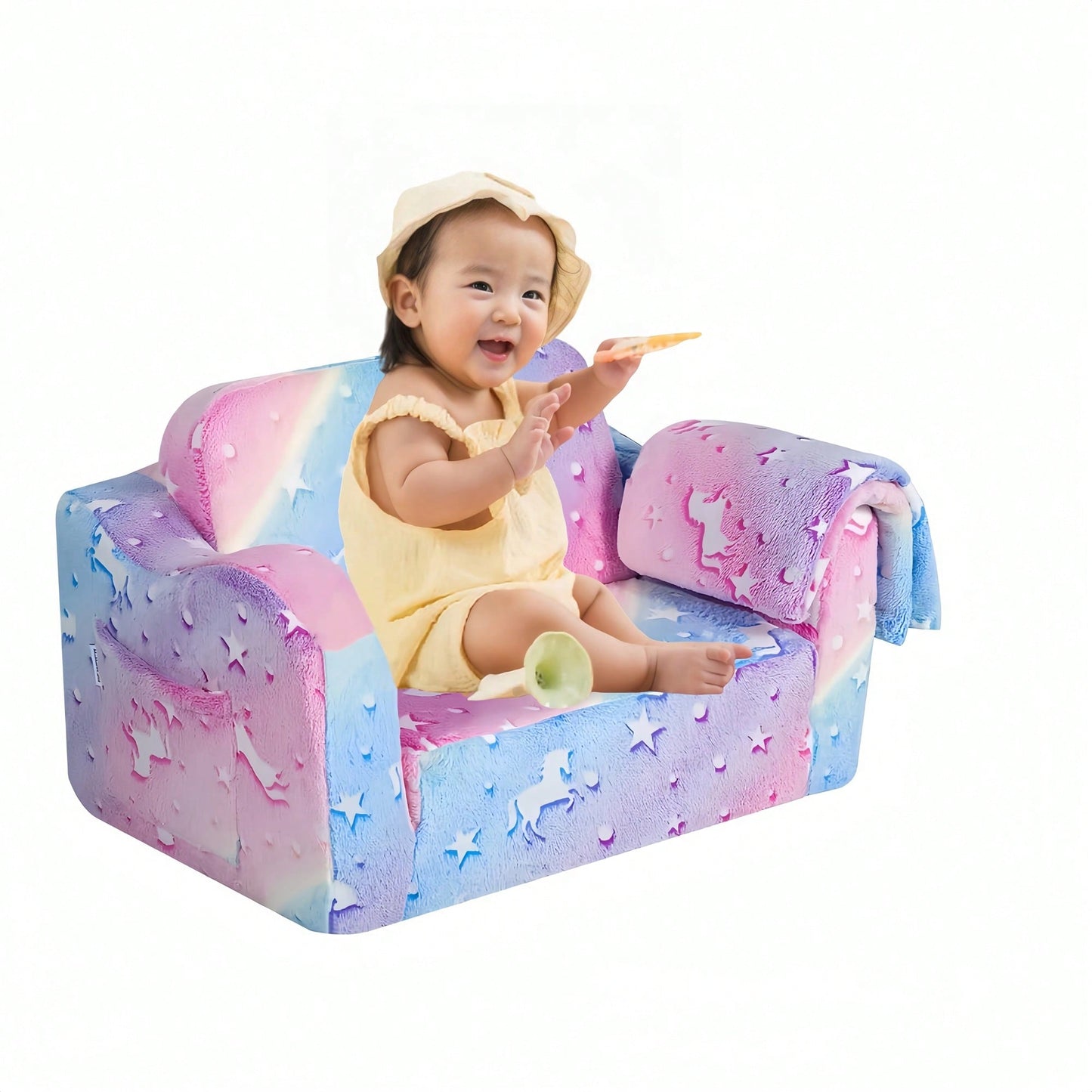 This compression modular kids sofa is the perfect addition to any playroom or bedroom. Designed for versatility, it can transform from a couch to a lounger or mattress, making it ideal for various activities. The high-density foam cushions ensure safety and comfort, allowing children to play and relax without worry. Its cheerful design invites kids to create memorable moments filled with joy and laughter. When playtime is over, it serves as a chic and comfortable sofa that complements any decor. This engaging piece not only provides a fun space for children but also encourages interactive learning and cognitive development through play.