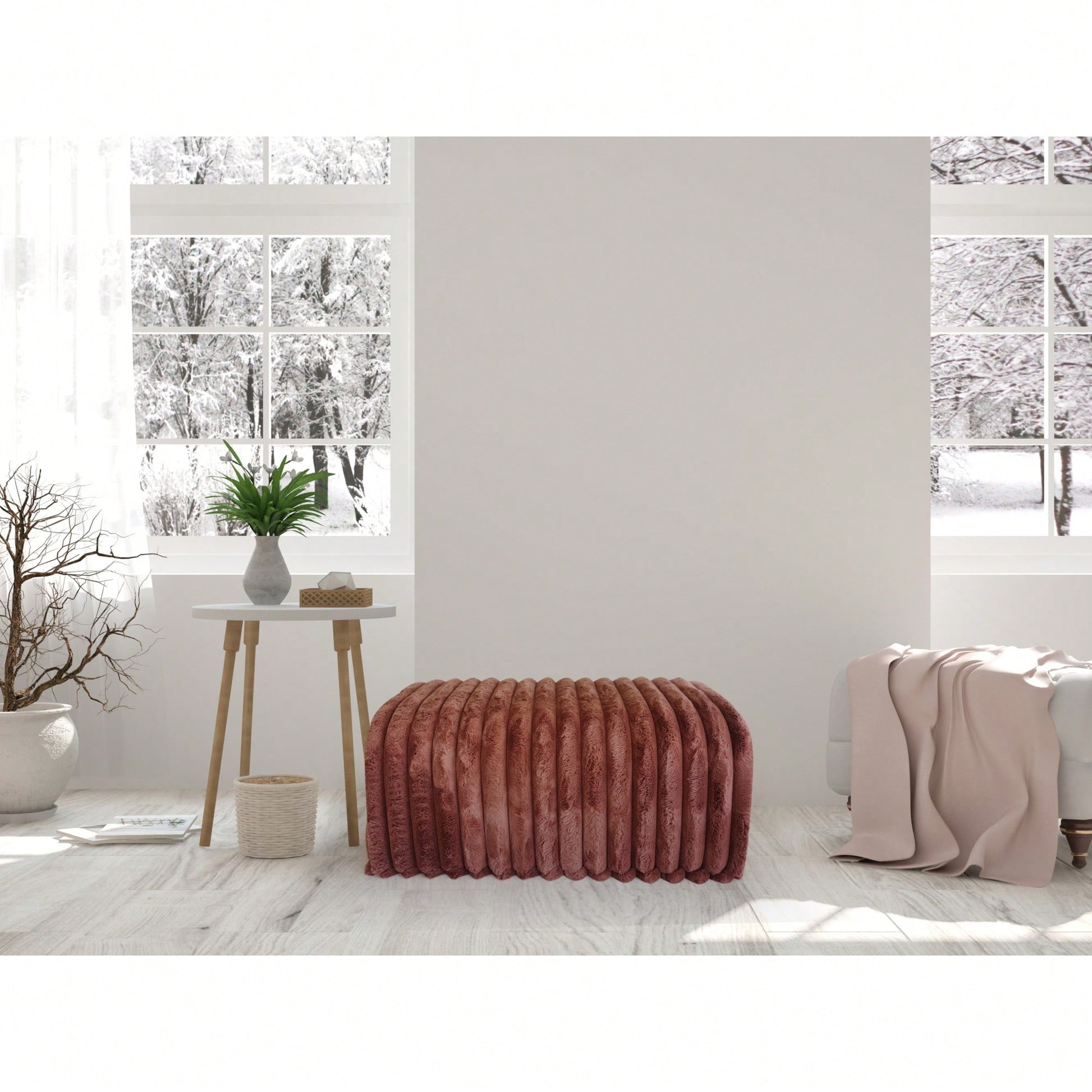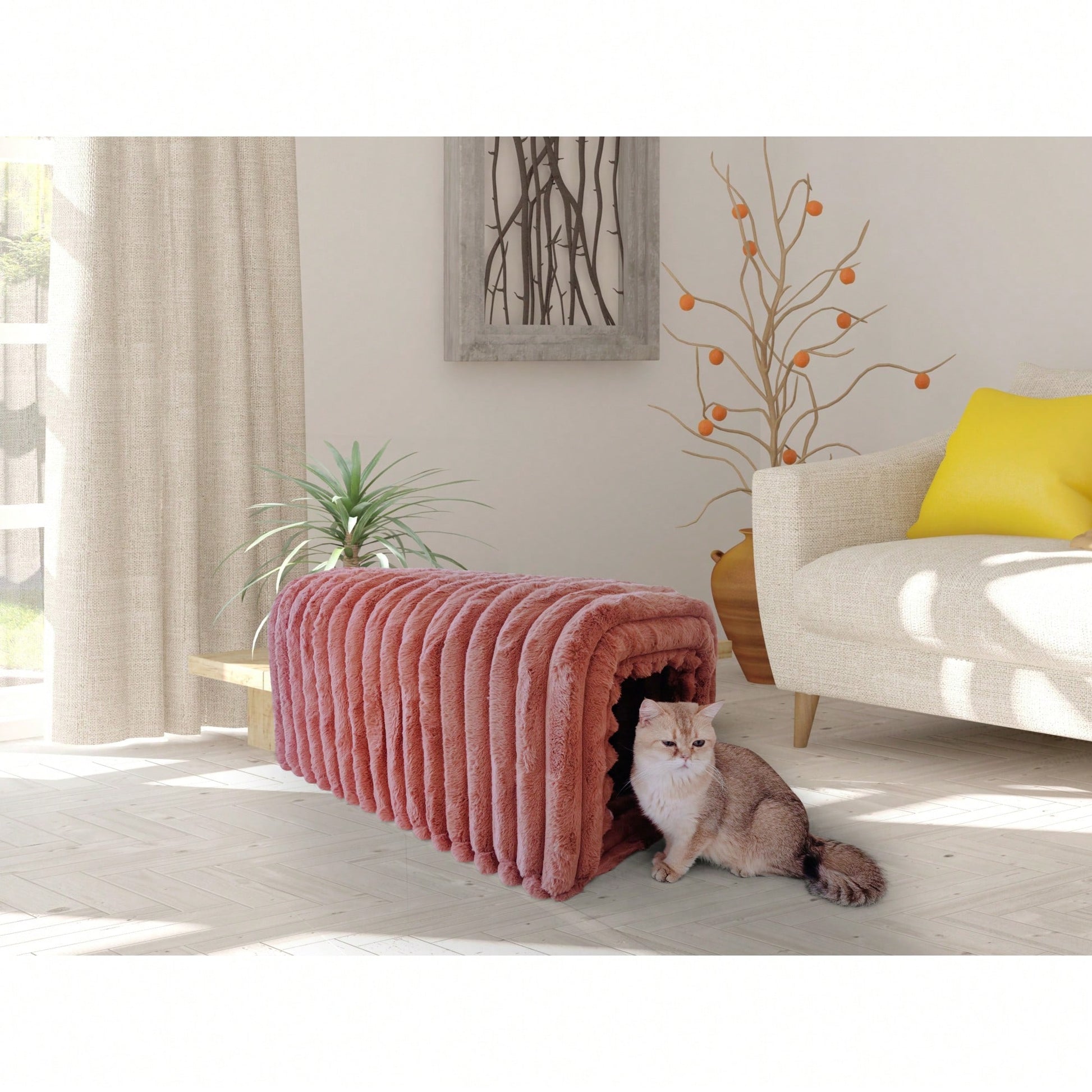 This versatile storage bench combines functionality with comfort, making it an ideal addition to any home. The arch hollow design allows it to serve as a seating area, a concealed storage compartment, and a cozy hideaway for your cat. The movable cushions make cleaning effortless, while the soft rabbit plush and sponge filling provide a comfortable seating experience that maintains its shape over time. Whether placed in the entryway for easy shoe changes, next to the bed for convenient storage, or in the living room as a stylish seating option, this bench enhances every corner of your home. The breathable corduroy and rabbit plush fabric ensure durability and a pleasant touch.