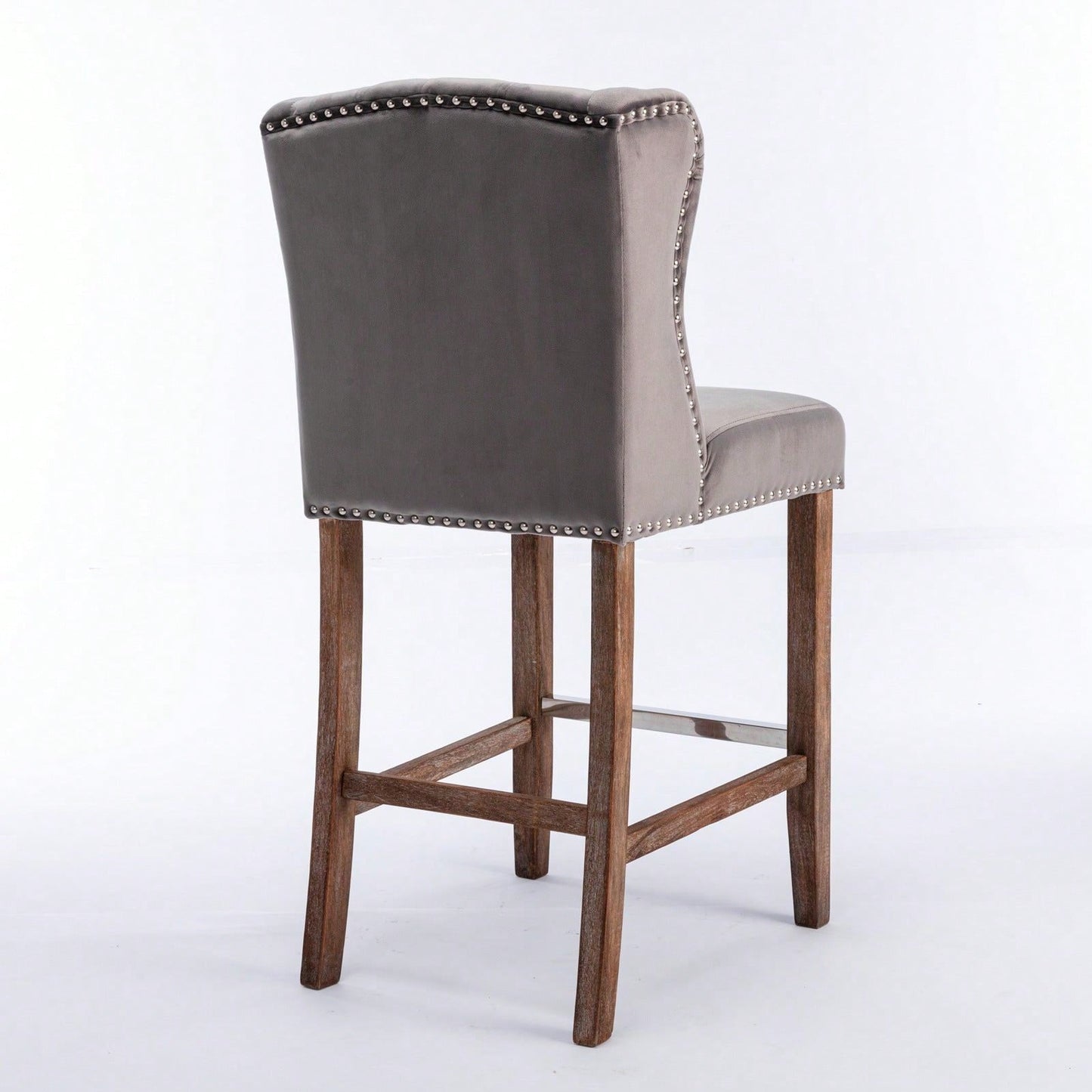 Upholstered Wingback Counter Height Bar Stools 27 Inch with Nailhead Trim and Tufted Back Set of 2
