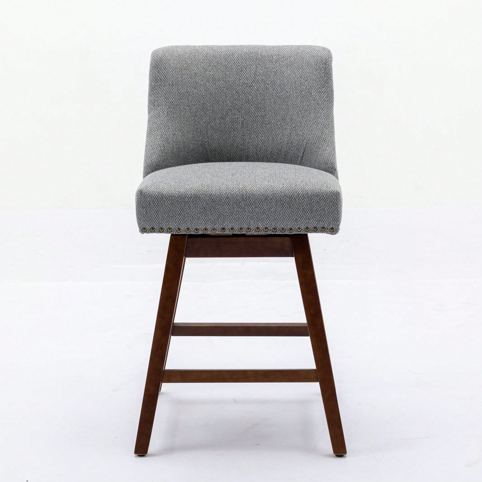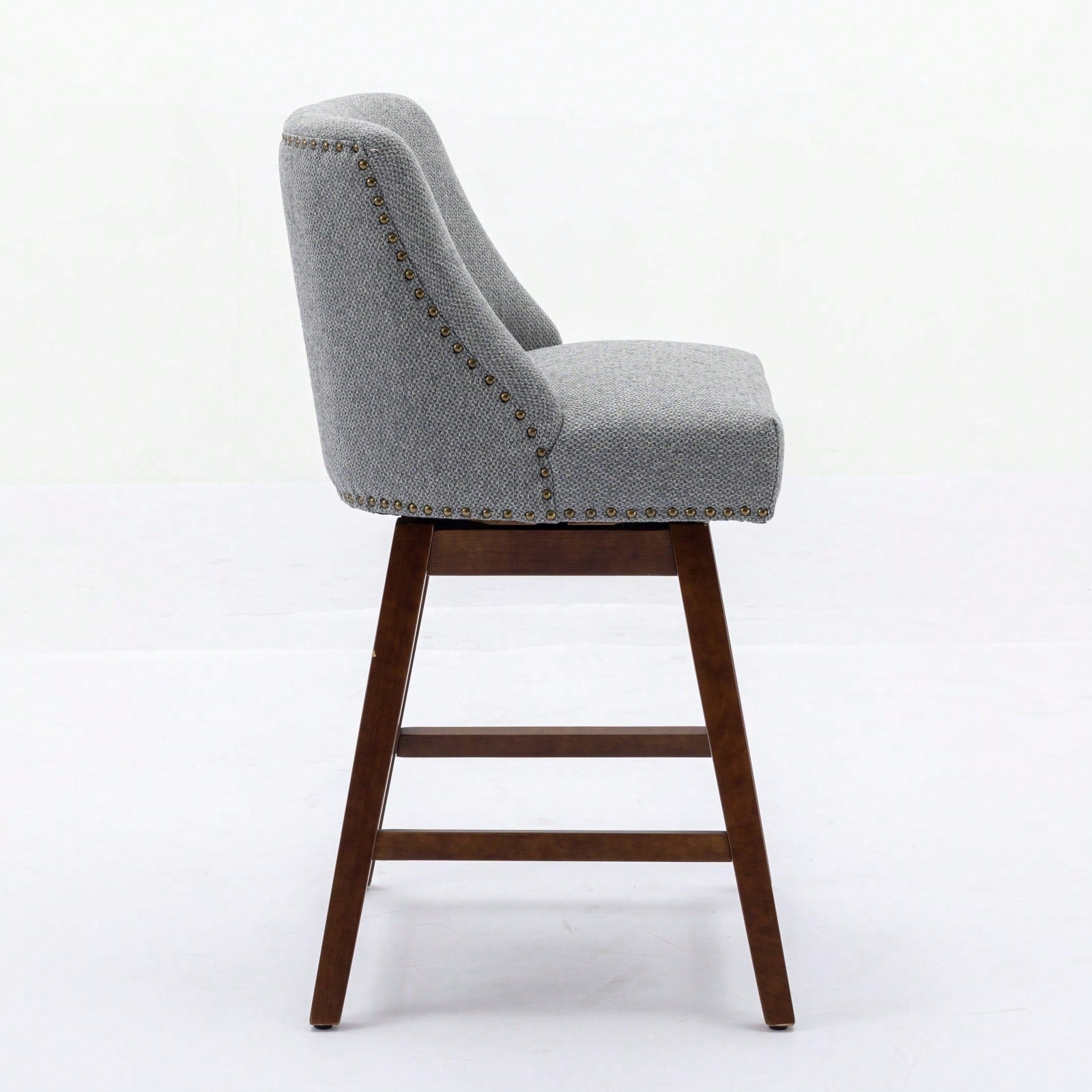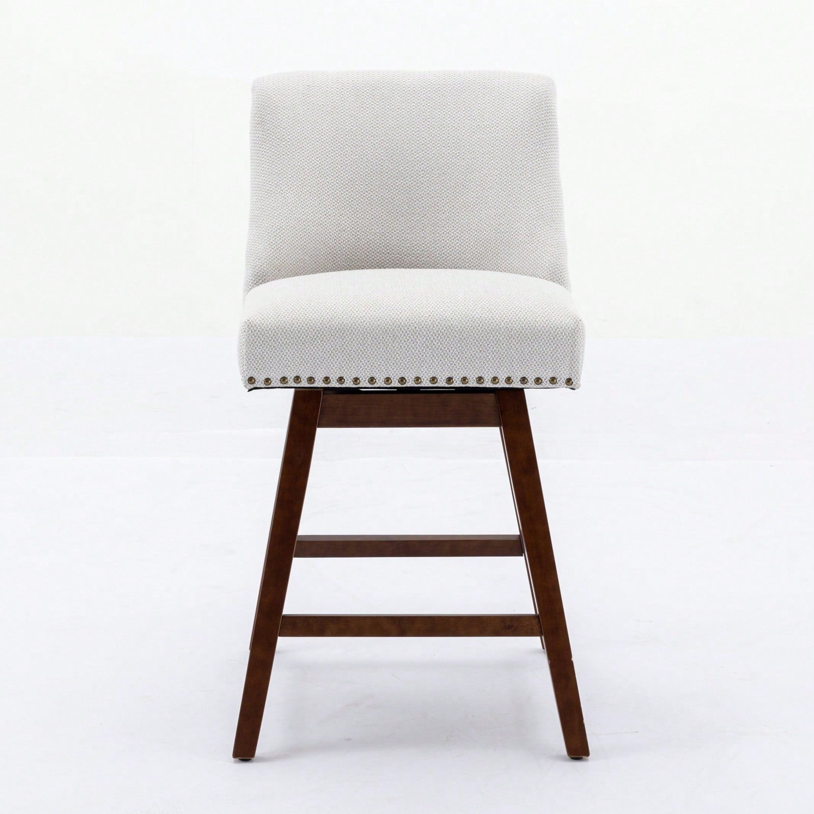 Enhance your dining experience with these stylish counter height swivel barstools. The curved back provides excellent support for your back and the thick cushion ensures a comfortable seating experience. The soft foam and steel spring inner filler offer great cushioning, perfect for extended sitting. The 360-degree swivel seat allows for easy movement and communication, making socializing with friends and guests effortless. Made from high-quality materials, these barstools are sturdy and can accommodate up to 300 lbs.