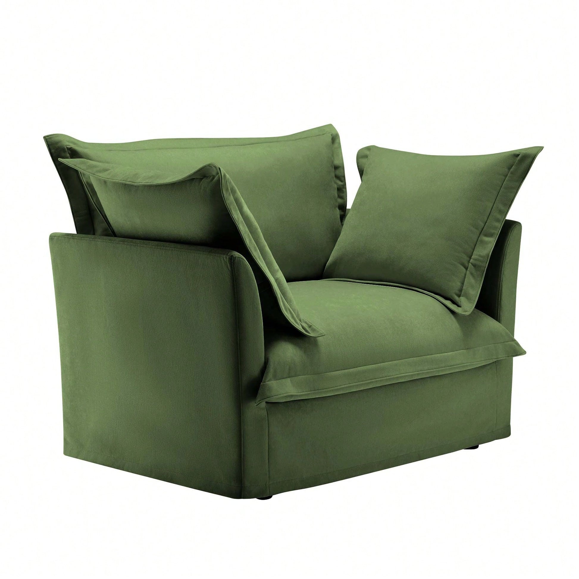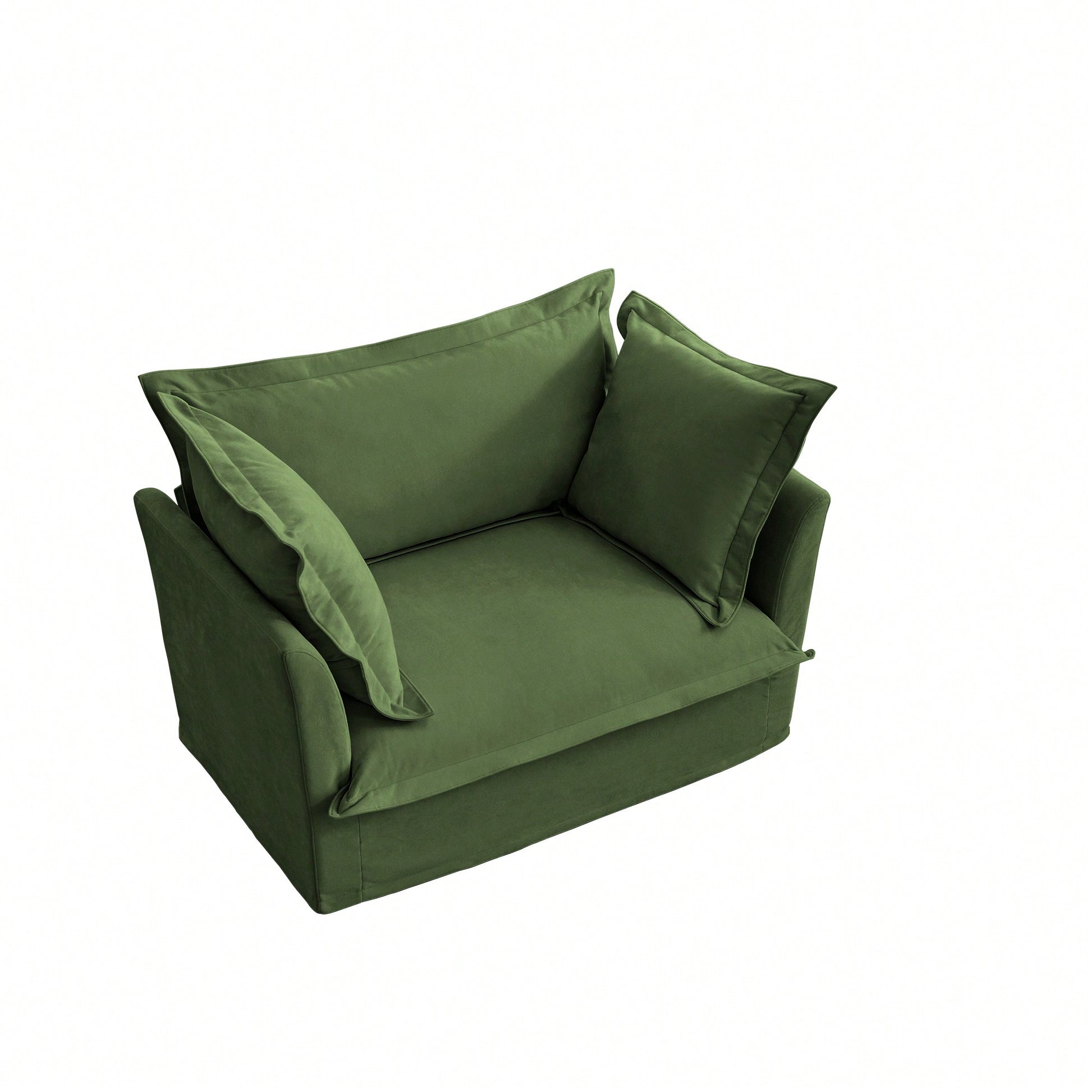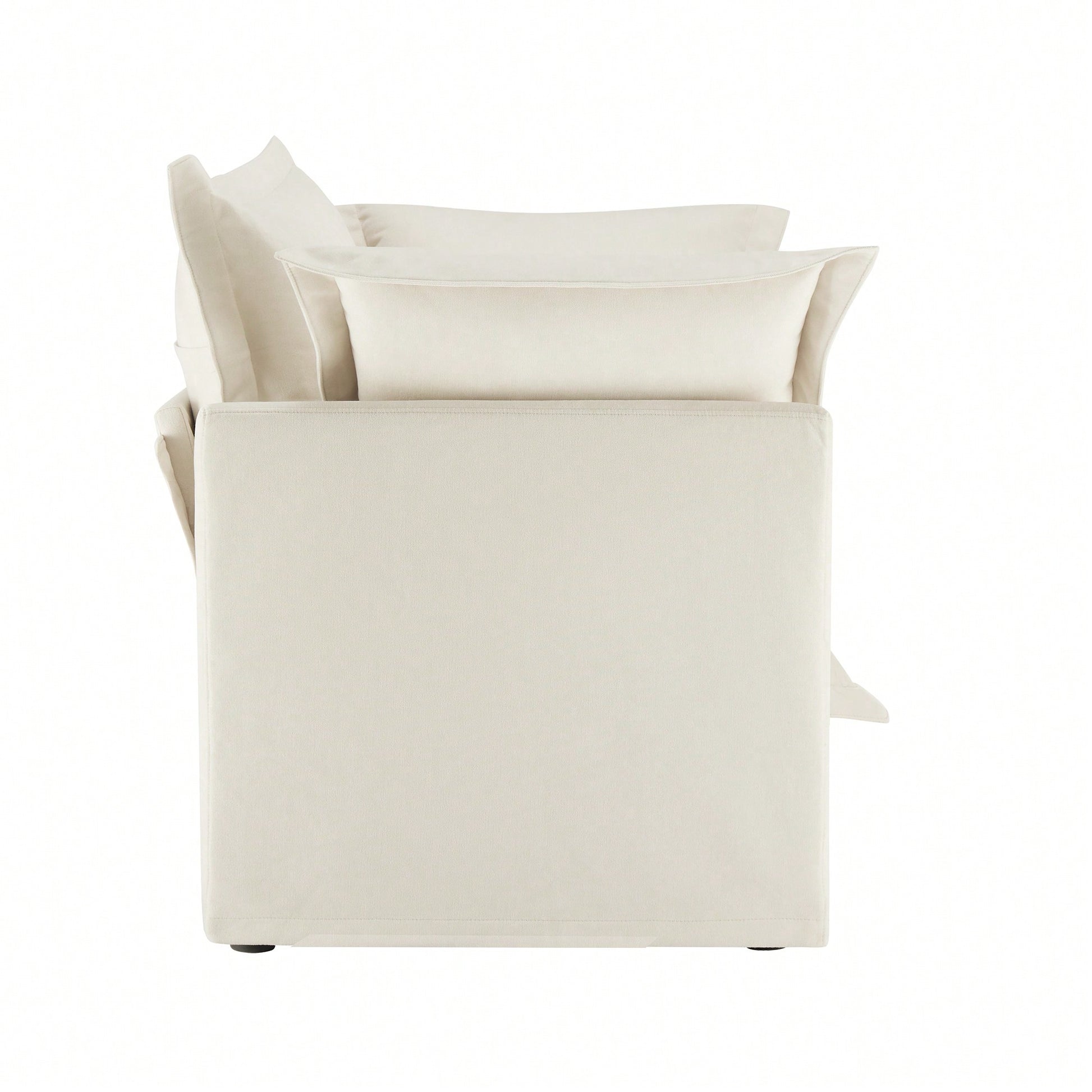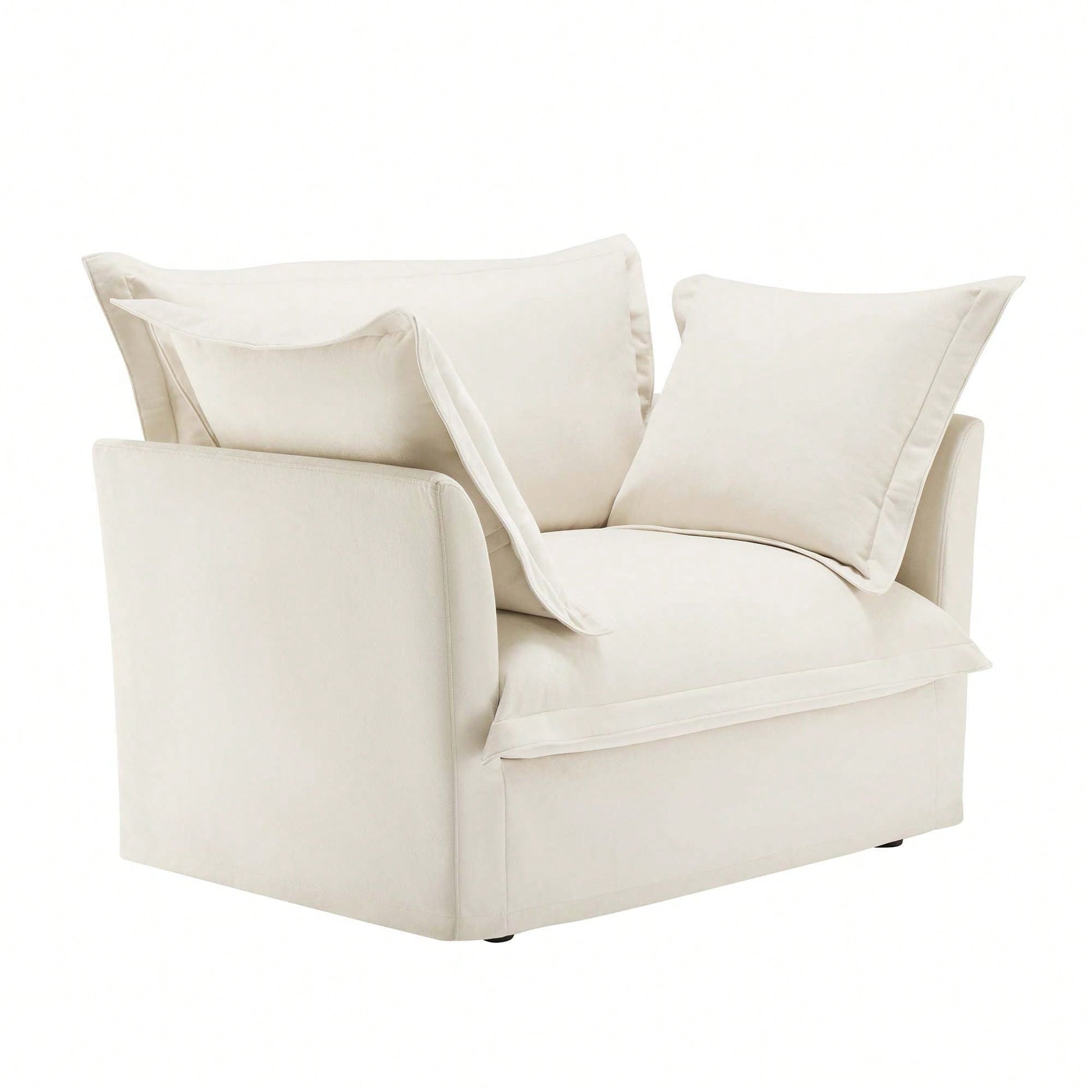**Key Features** - Luxurious deep seat with high back and soft cushions for ultimate comfort - Elegant design with cascading hem and detailed stitching - Removable and washable covers for easy maintenance - Breathable chenille fabric that adapts to your body shape - Sturdy wood frame supports up to 300 pounds per seat **Product Description** This slip-covered armchair combines luxurious comfort with elegant design. Featuring a deep seat and high back pillows, it offers unparalleled relaxation with premium sponge and cotton filling. The removable covers make it family-friendly, while the breathable chenille fabric ensures a soft and inviting experience. The high-density foam cushions provide support without built-in springs, and the warm hug design of the pillows and armrests adds to the overall comfort. Built to last with a robust wood frame, this sofa is easy to assemble in under ten minutes. **Specifications** - Material: Chenille fabric - Weight capacity: 300 pounds per seat - Assembly time: Less than 10 minutes - Cushion type: High-density foam - Care: Removable and washable covers