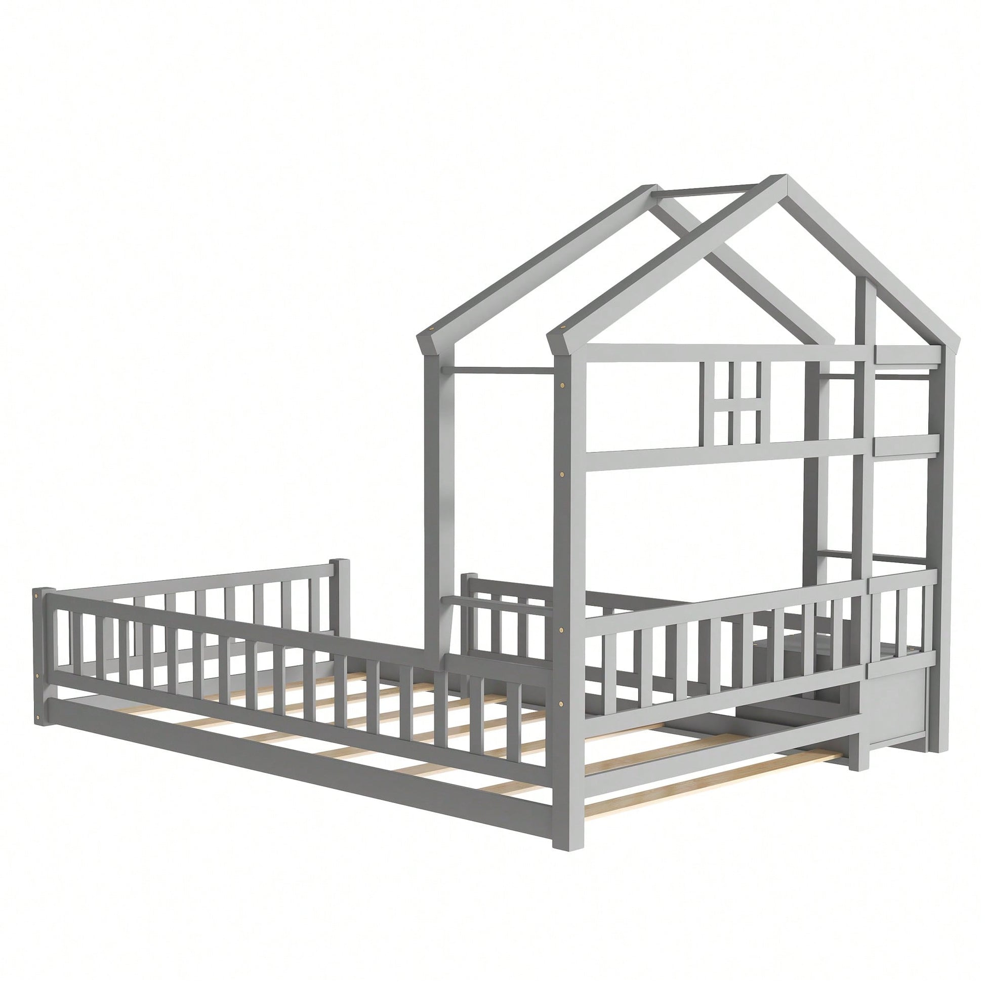 Queen Size Bed Frame with Storage Headboard Charging Station and Drawers Easy Assembly No Box Spring Needed