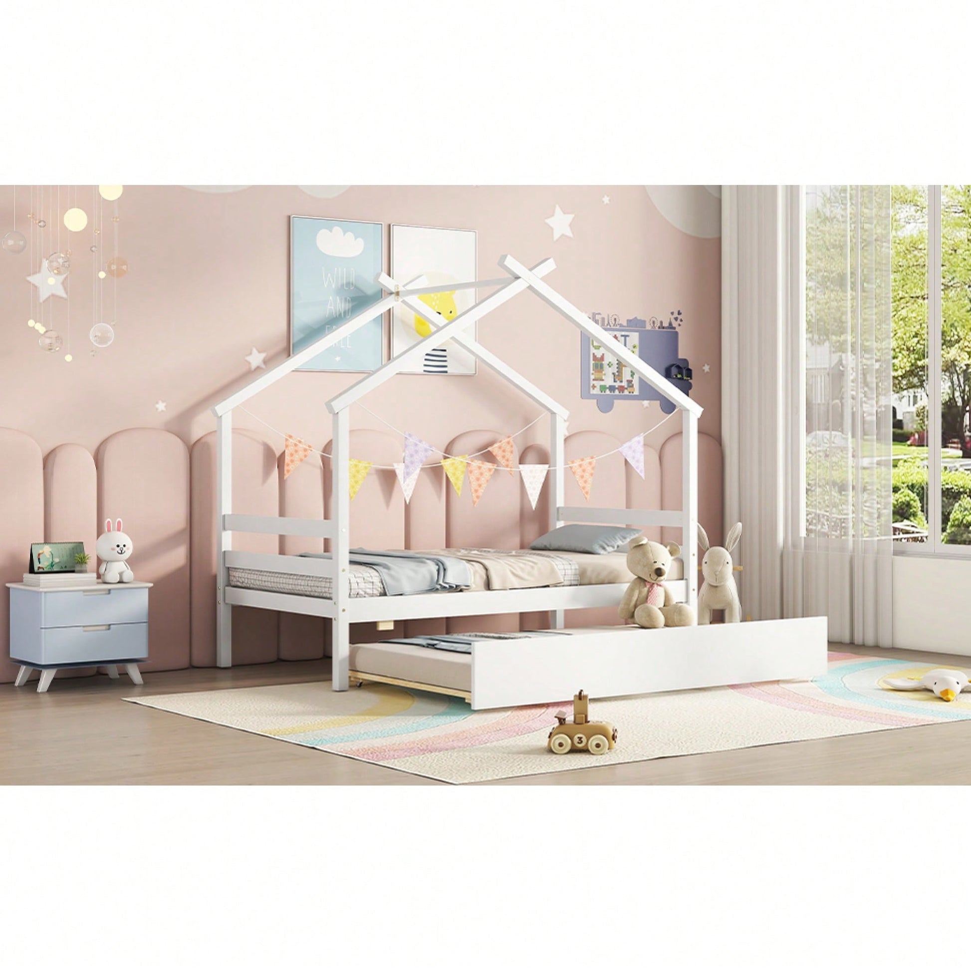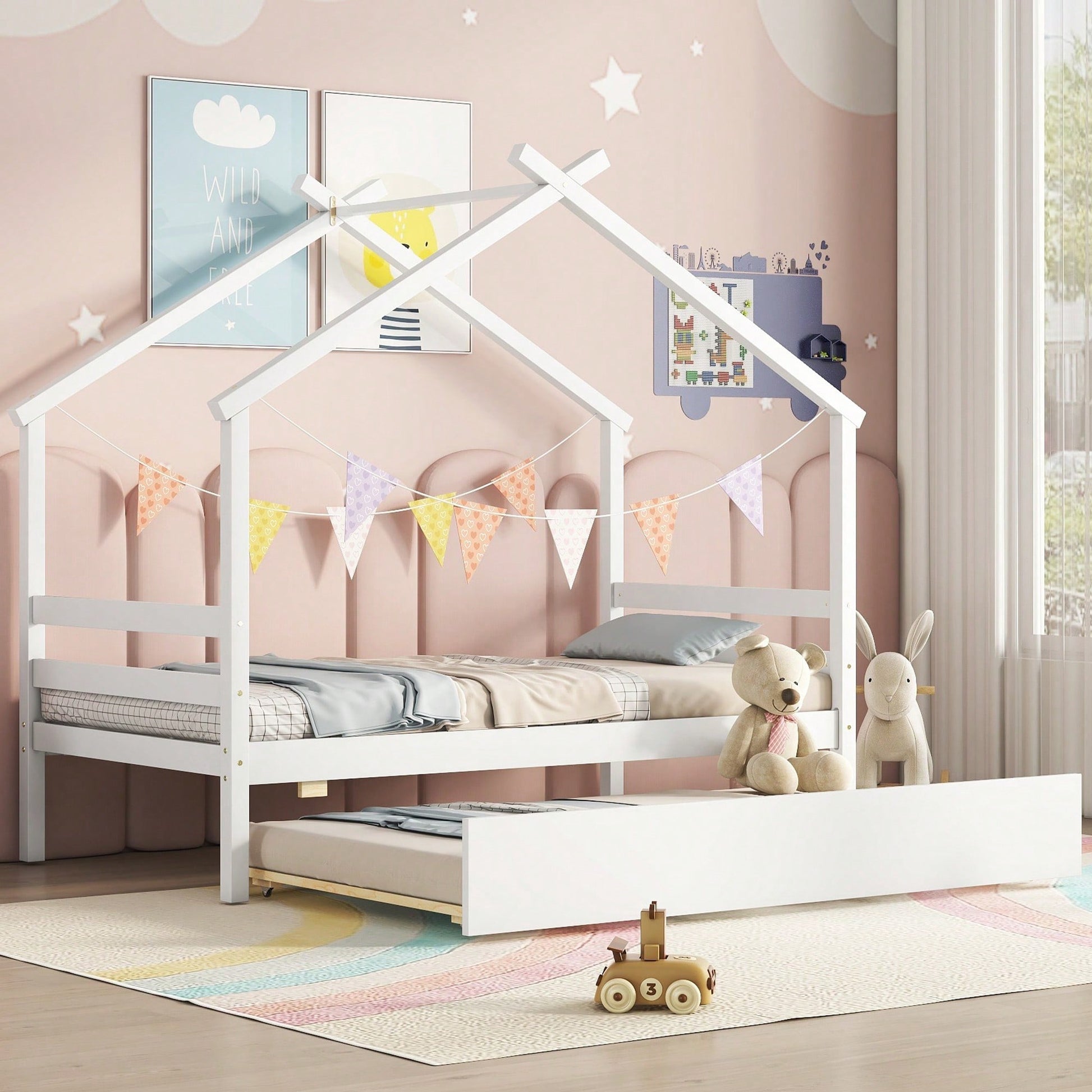 This twin bed features a unique house-shaped design that enhances the aesthetic appeal of any bedroom while providing a sense of warmth and comfort. With an integrated pull-out trundle, this bed is perfect for hosting guests, allowing for effortless transformation of space when needed. Crafted from durable pine wood, it promises long-lasting sturdiness and stability, making it an excellent choice for both kids and adults alike. Its minimalistic style complements a wide range of interior designs, and with various color options, it can match any decor. Assembly is straightforward, enabling you to set it up with ease.