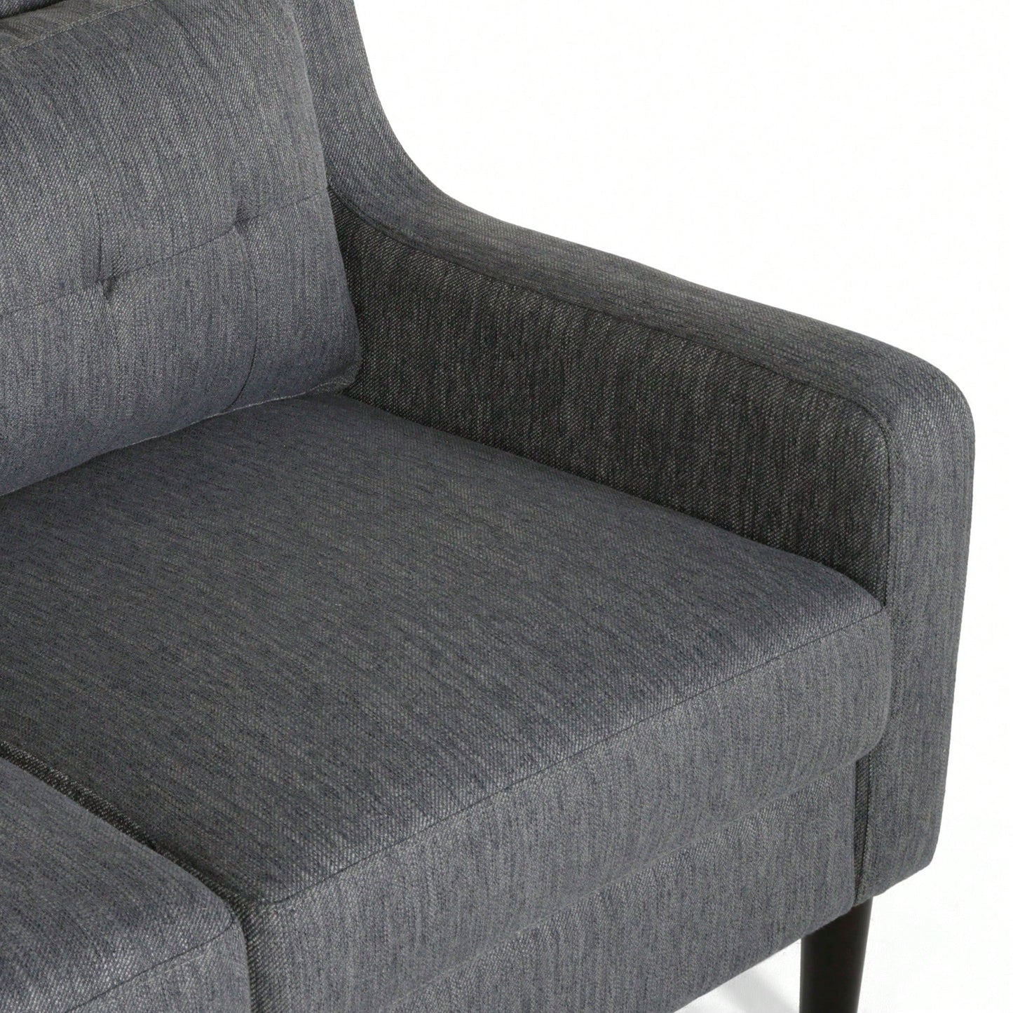 **Key Features:** - Contemporary design with plush accents and tufted waffle stitching - Low profile build ideal for smaller spaces, minimizing clutter - Sloped armrests and tapered legs for a refined look - Tufted backrest cushions for added sophistication and comfort - Removable cushion covers for easy cleaning **Product Description:** This contemporary loveseat combines style and comfort with its plush accents and sleek design. The low profile build, featuring a low backrest, makes it a perfect fit for smaller spaces, creating an open and airy feel. The sloped armrests and beautifully tapered legs enhance its modern aesthetic, while the tufted stitching adds a touch of elegance. With removable cushion covers, maintenance is a breeze, allowing you to keep your loveseat looking fresh and new. **Specifications:** - Dimensions: 58.00" W x 33.50" D x 34.50" H