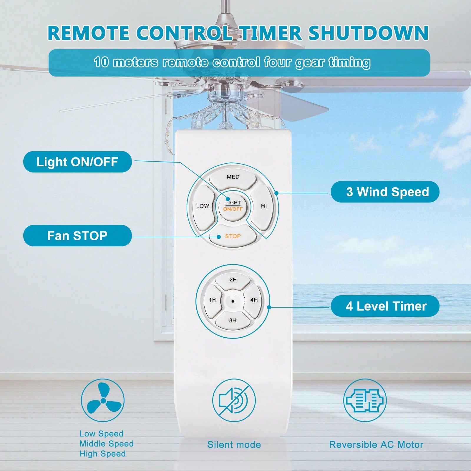 4. 100% copper AC motor with balanced blade assembly ensures silent and efficient operation.