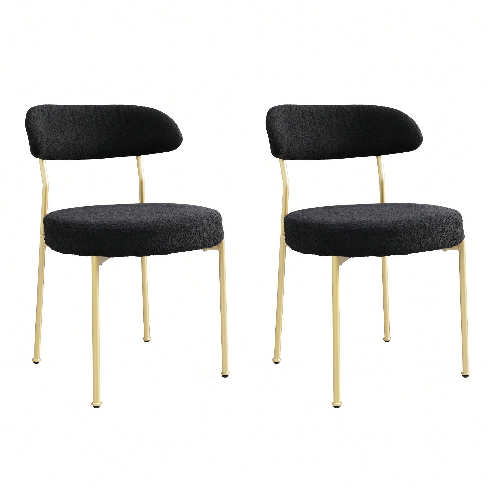 Curved Backrest Upholstered Dining Chairs With Gold Metal Legs Set Of 2 Black