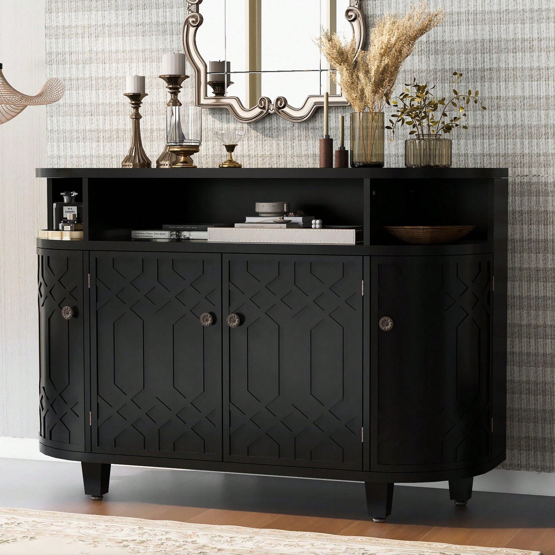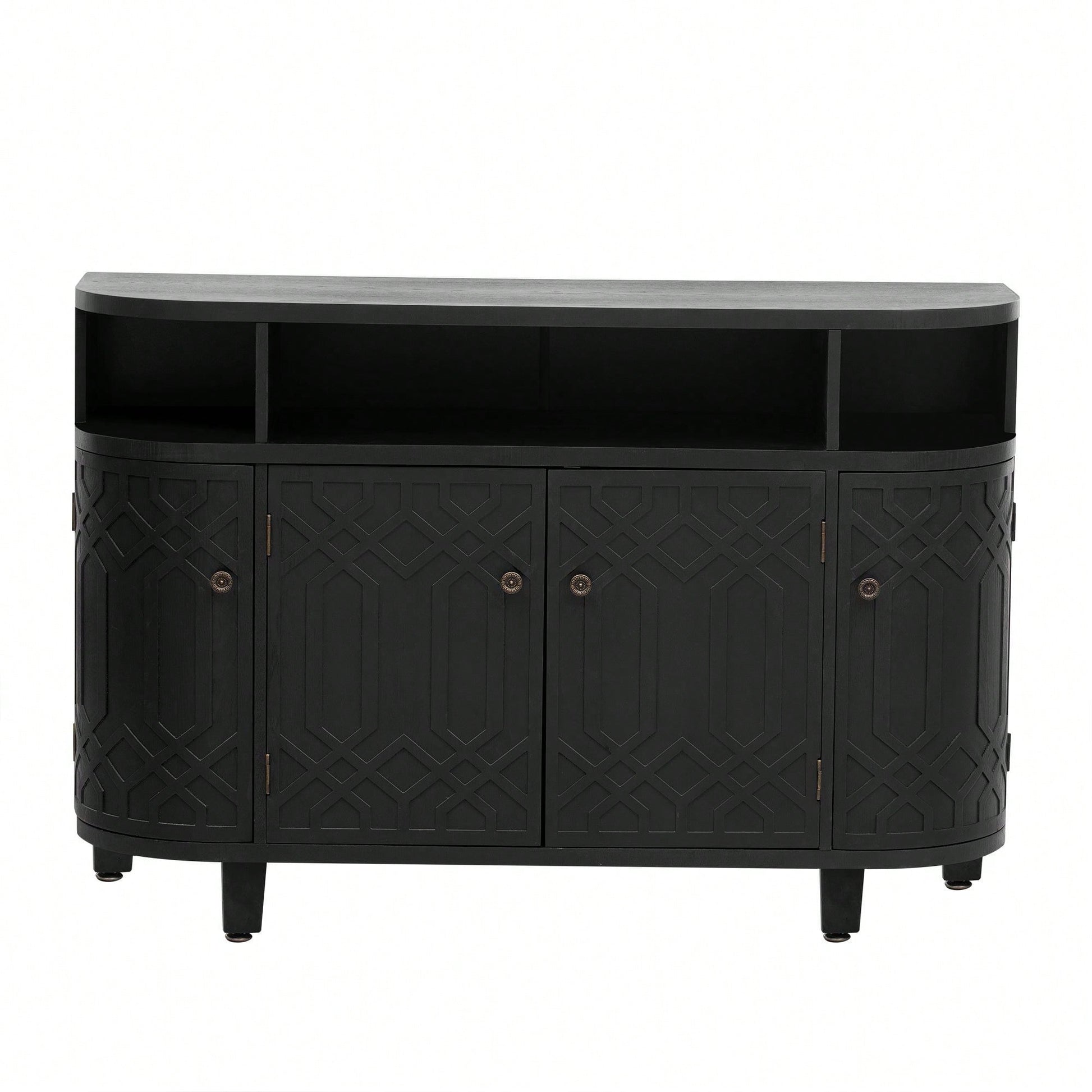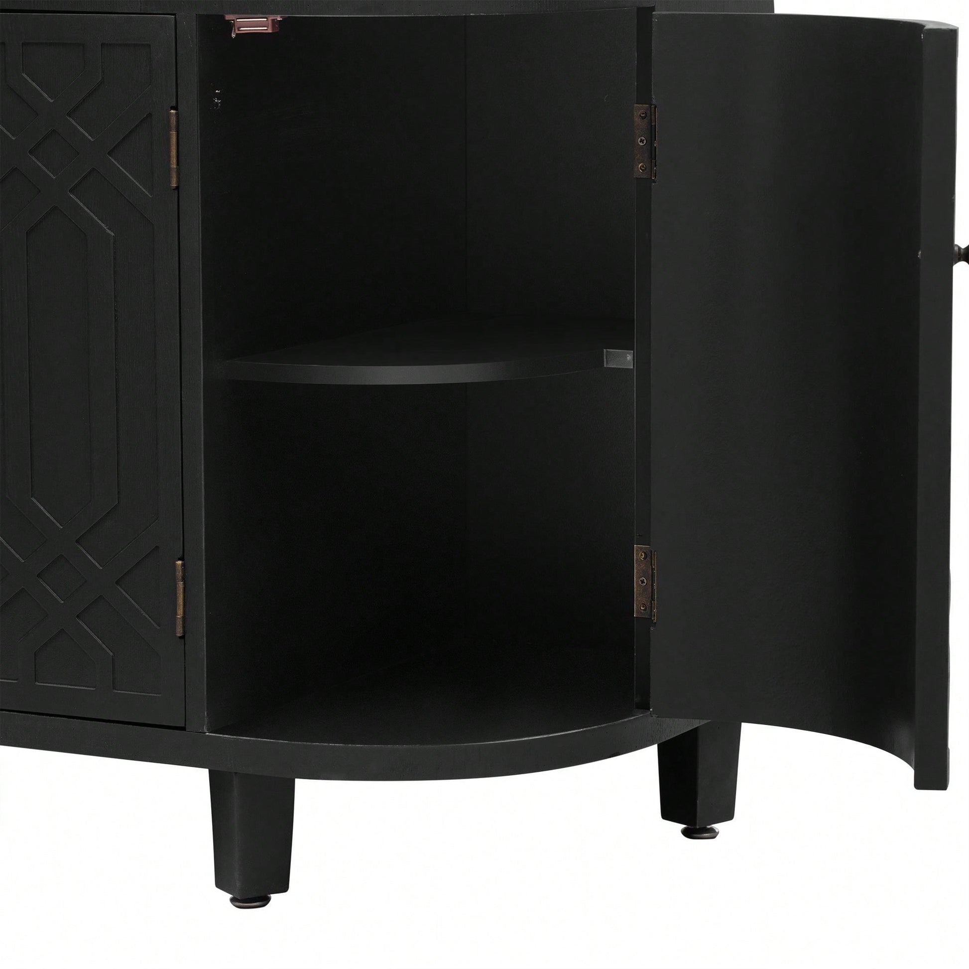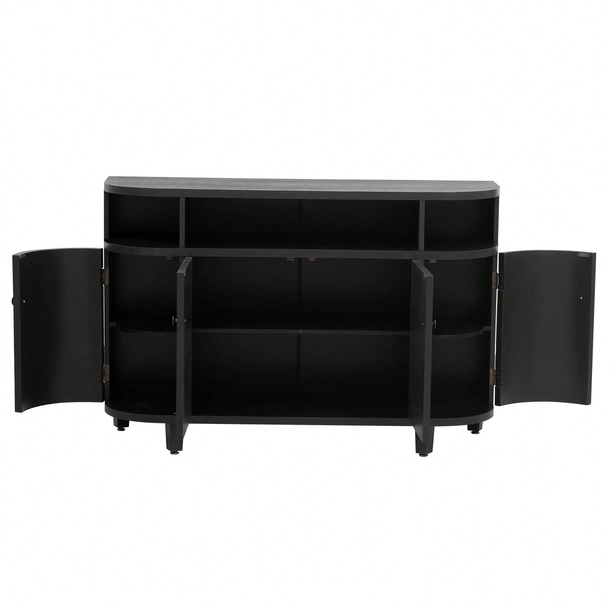 Curved Solid Wood Veneer Storage Cabinet with 4 Doors and Adjustable Shelves for Hallways and Studies