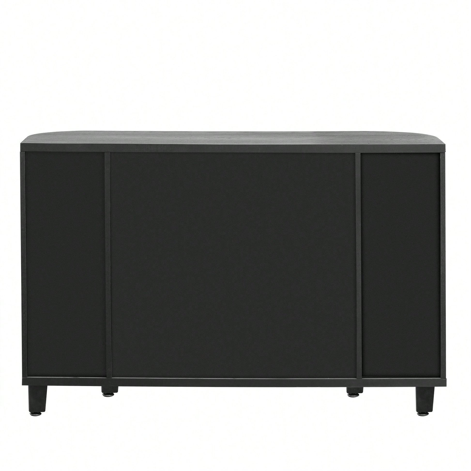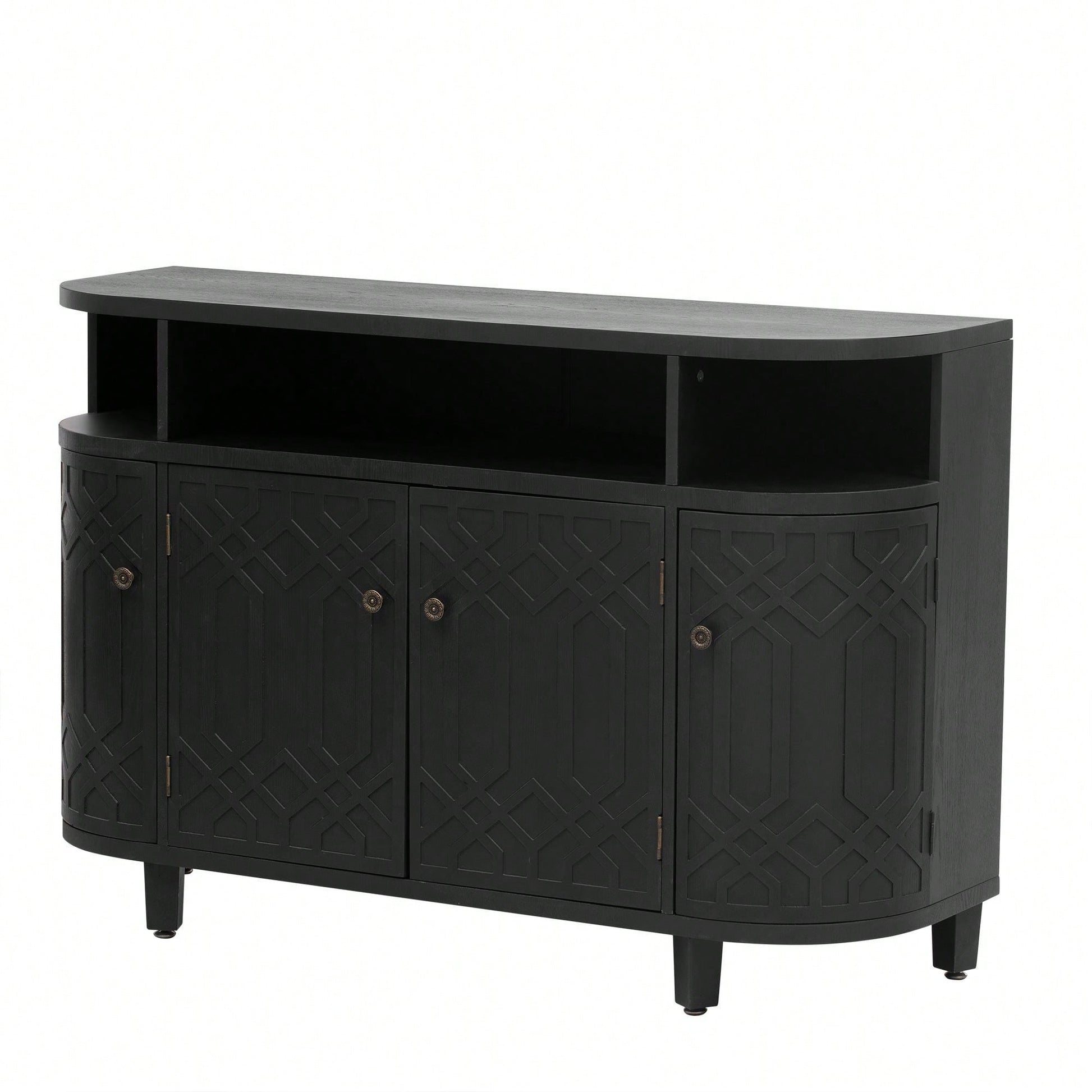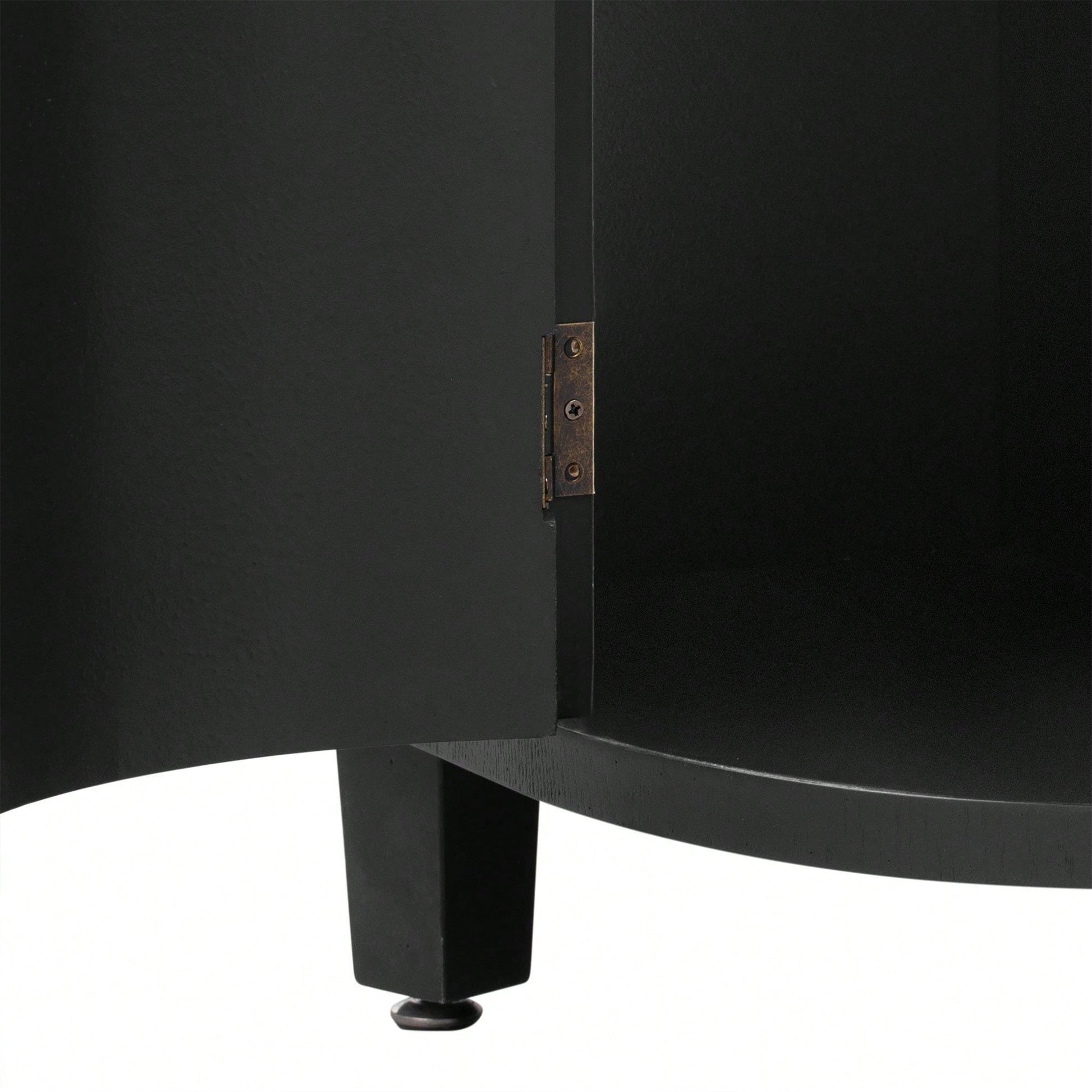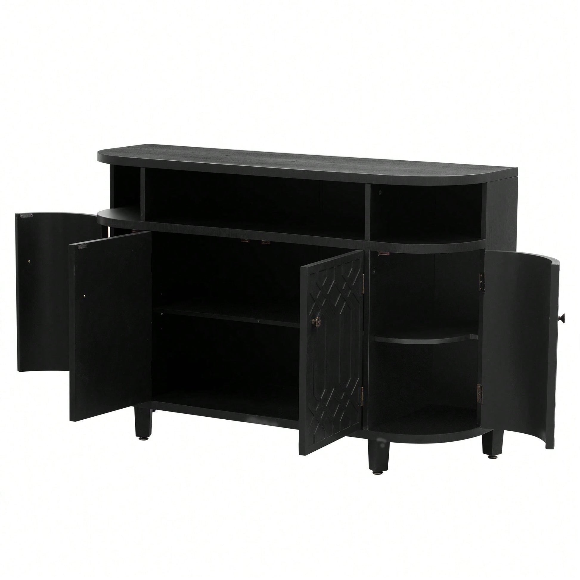 Curved Solid Wood Veneer Storage Cabinet with 4 Doors and Adjustable Shelves for Hallways and Studies