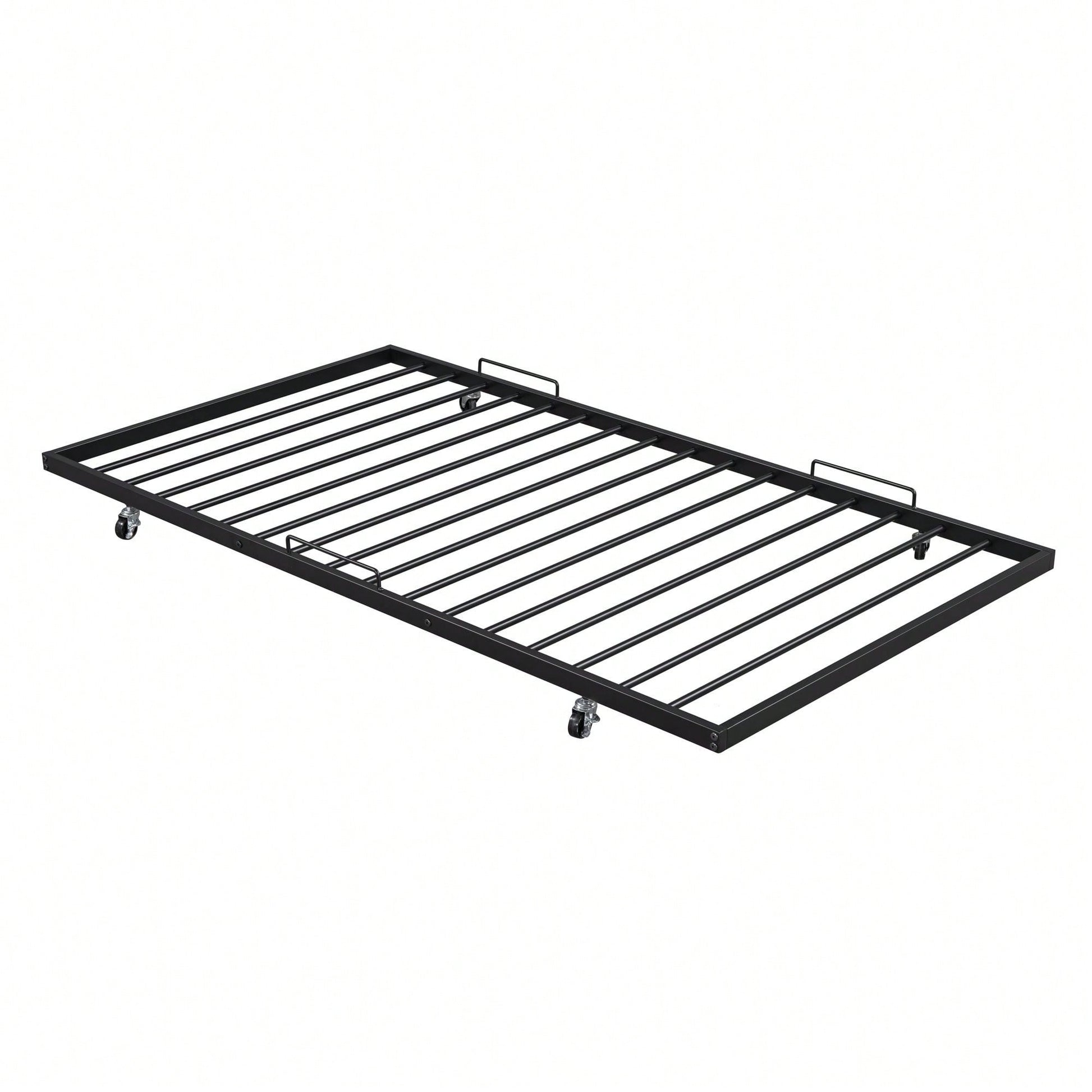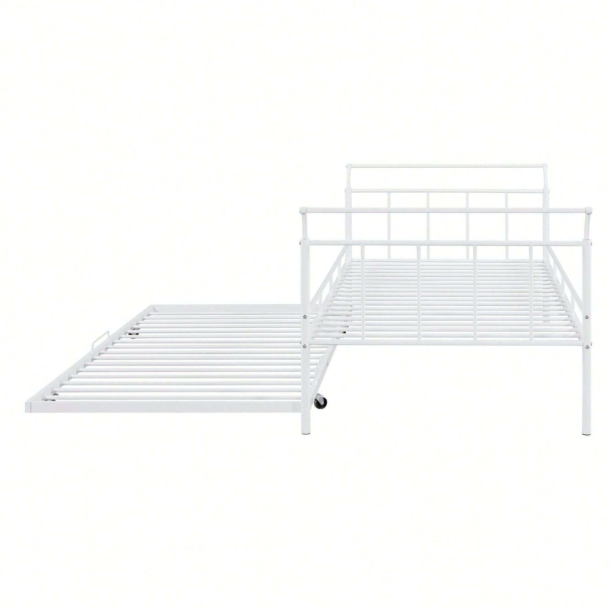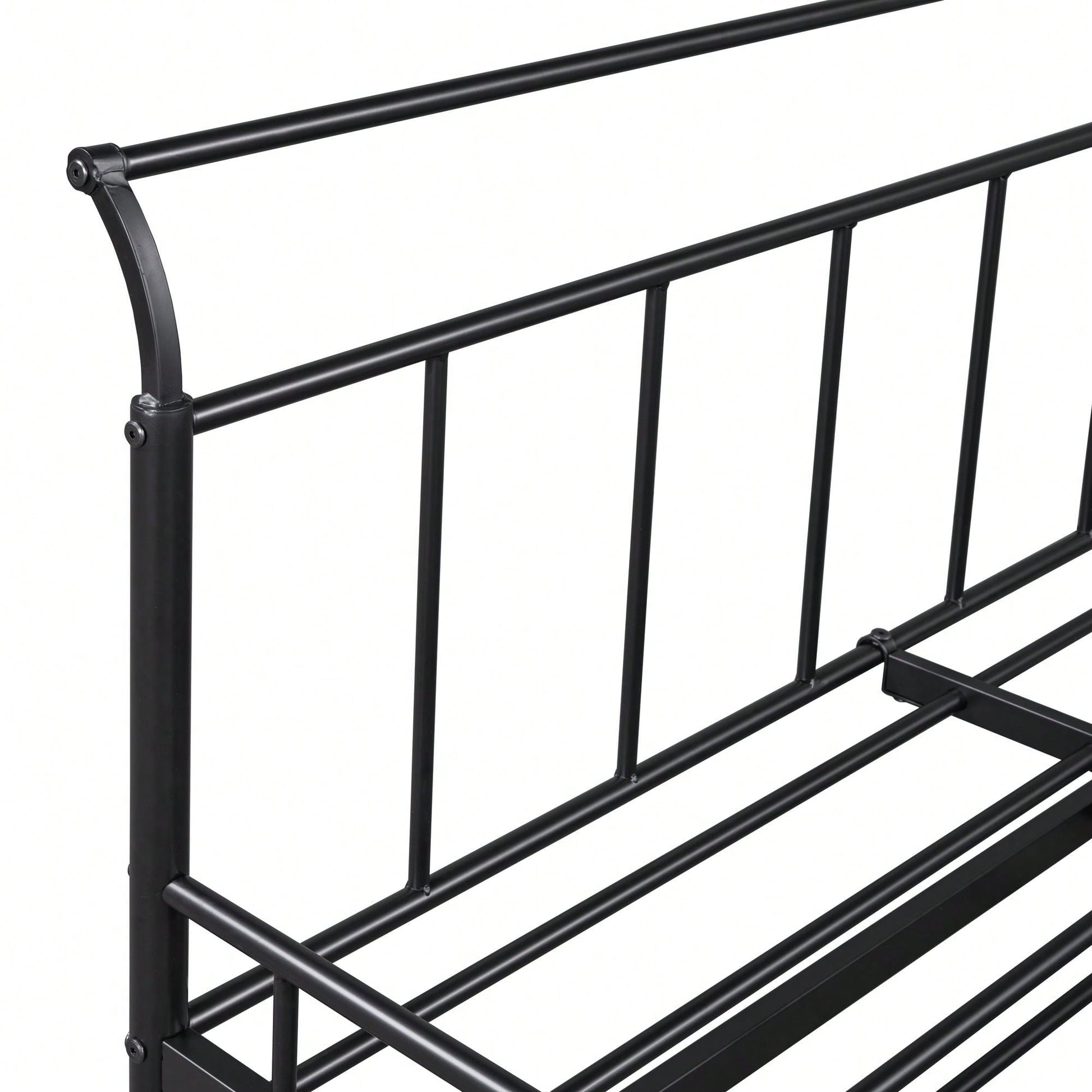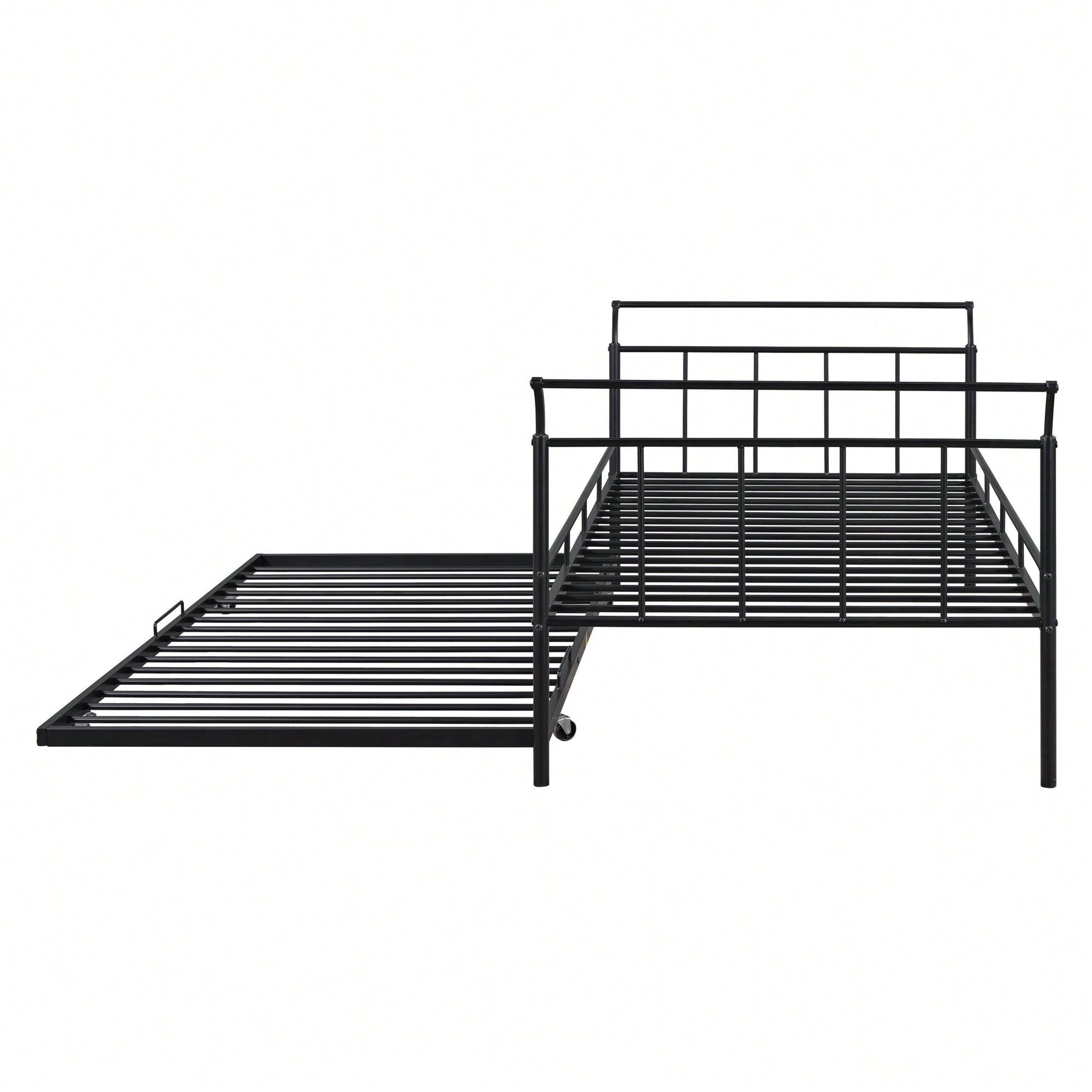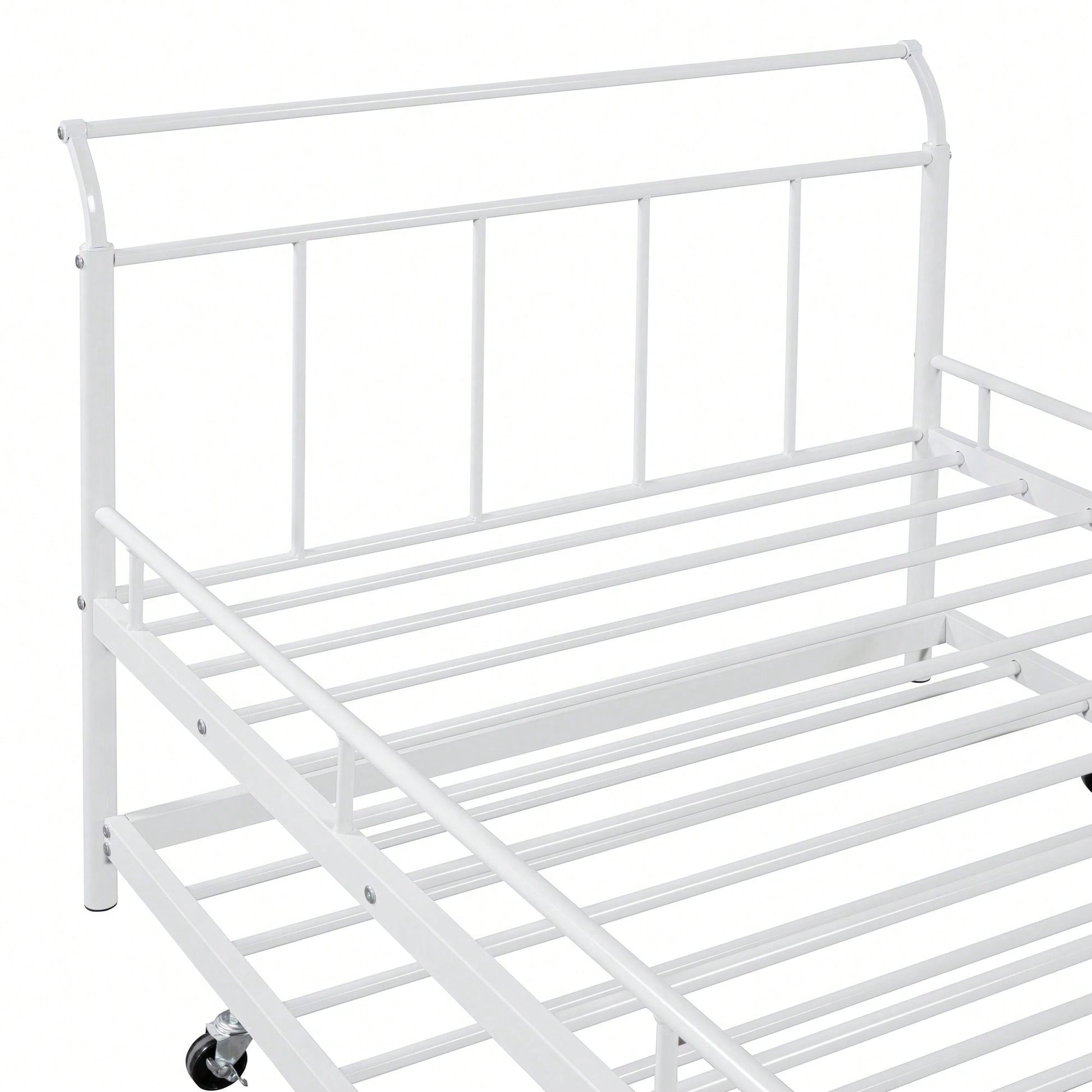 Curved Handle Design, Twin Size Trundle Bed, Durable Iron Construction, No Box Spring Needed