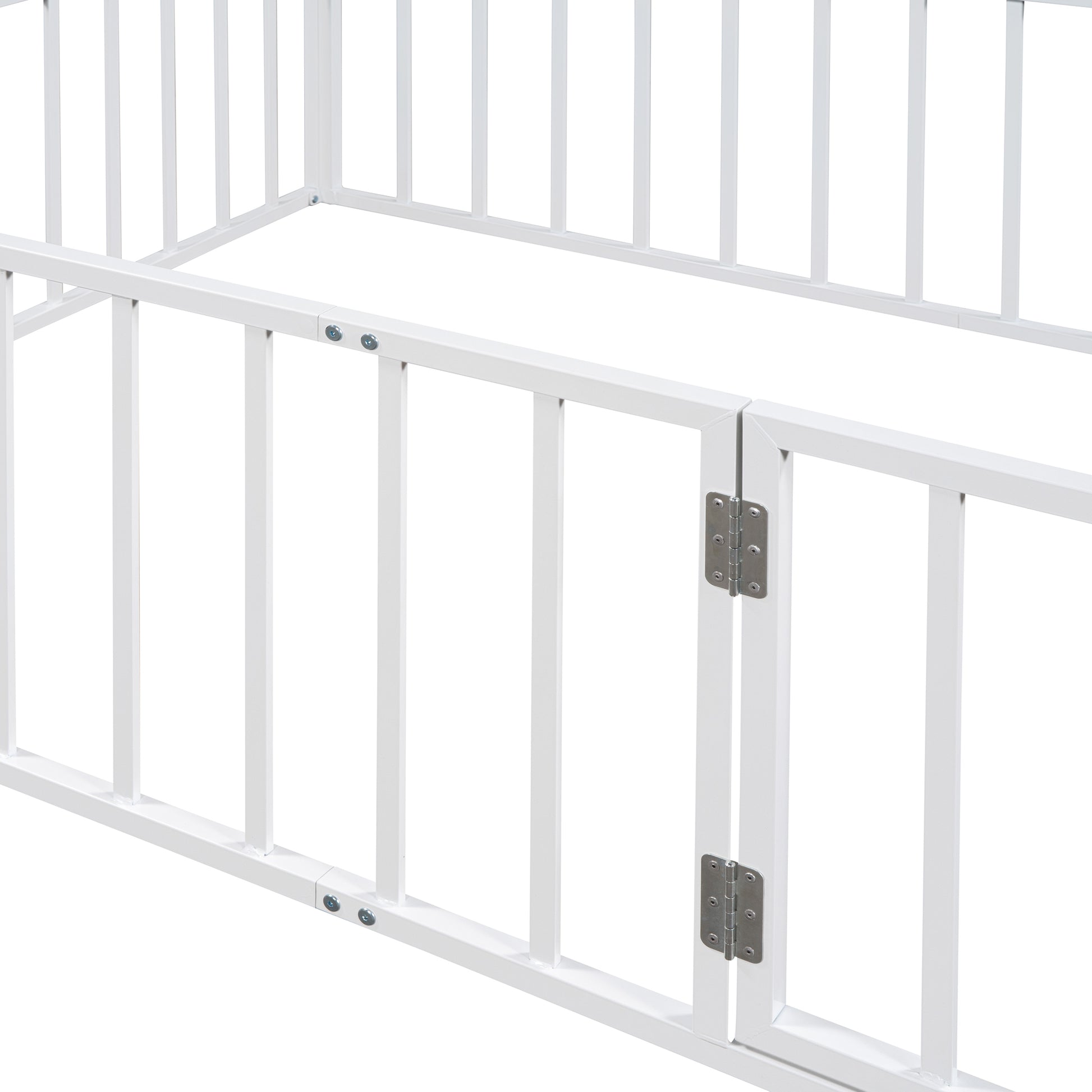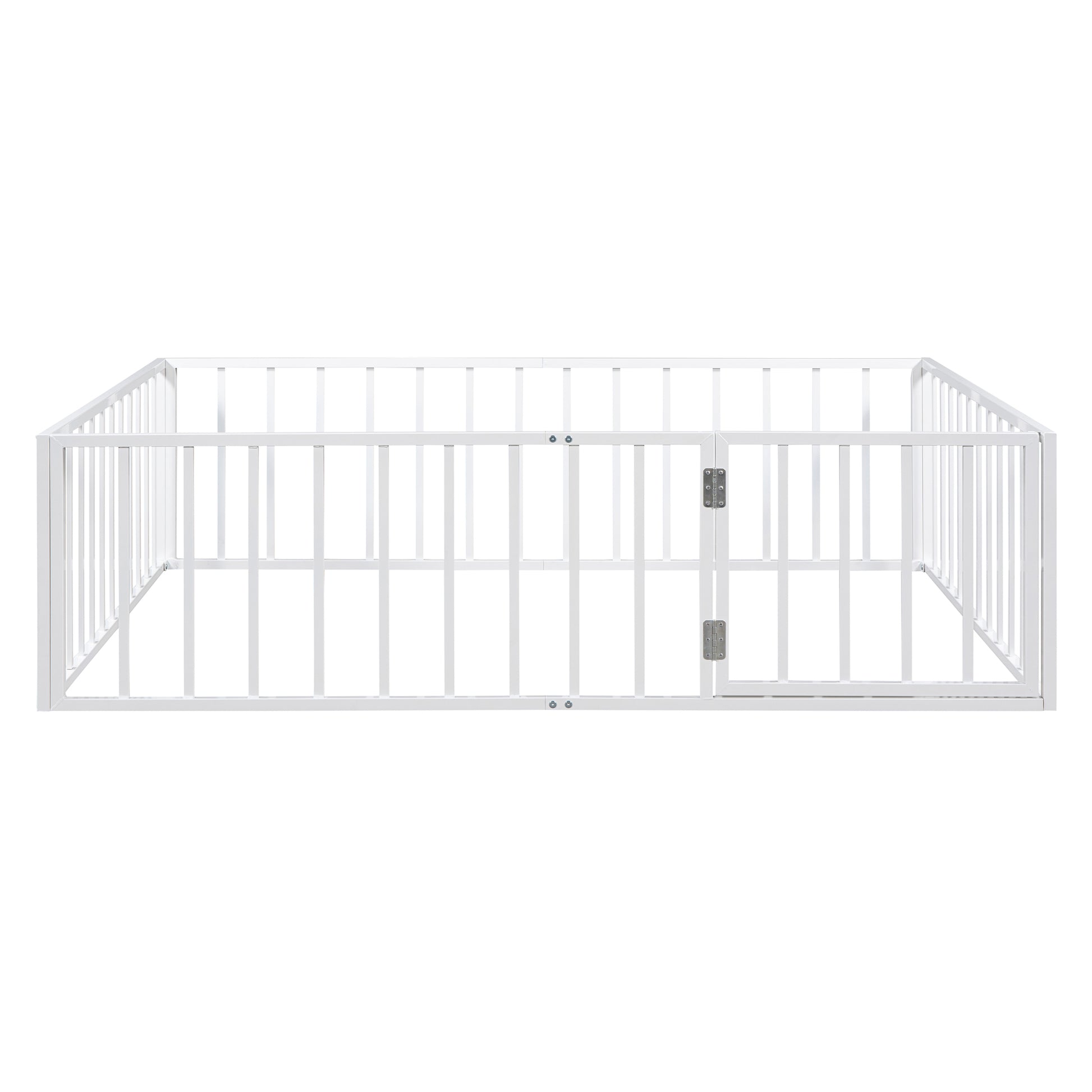 Full Size Metal Floor Bed Frame with Fence and Door, White
