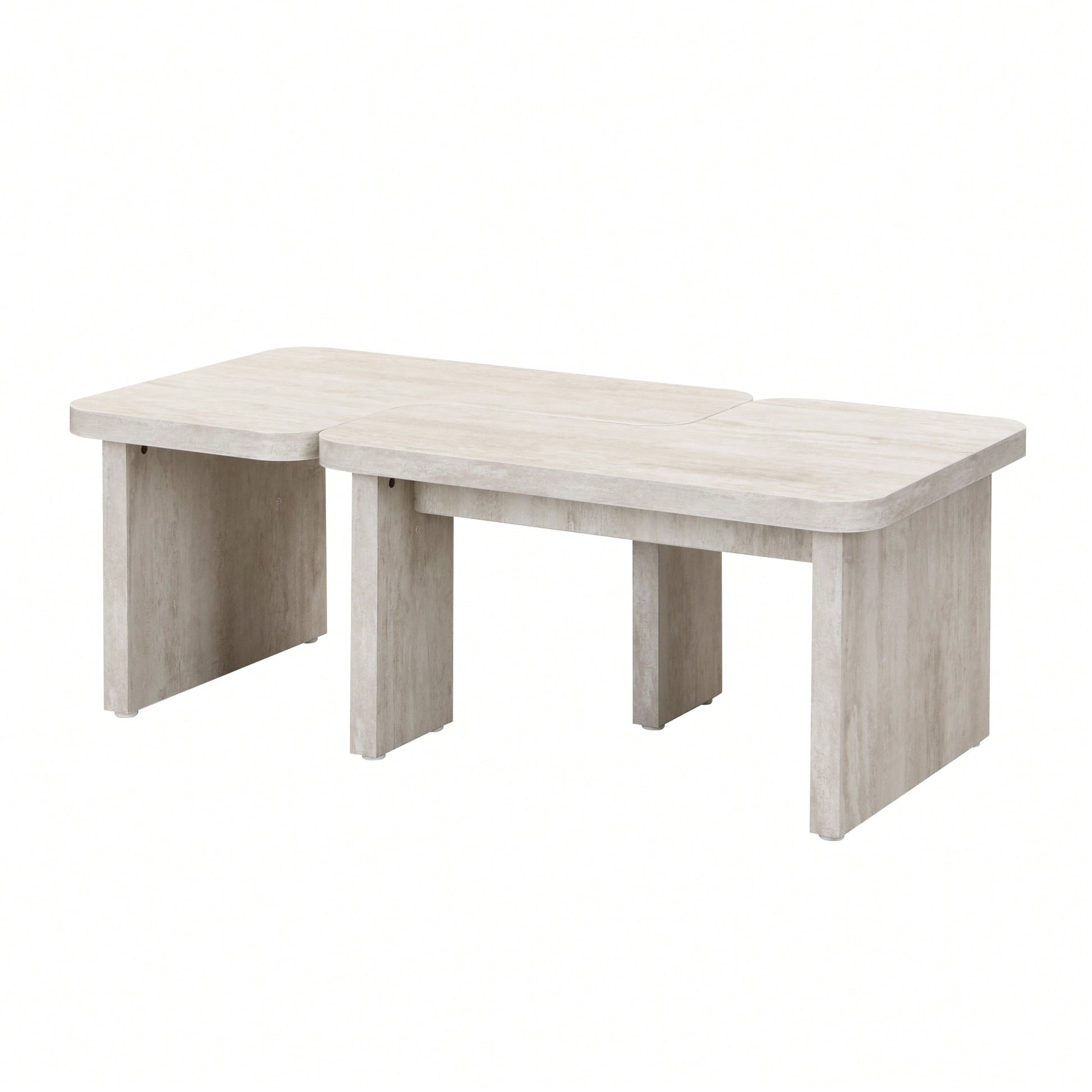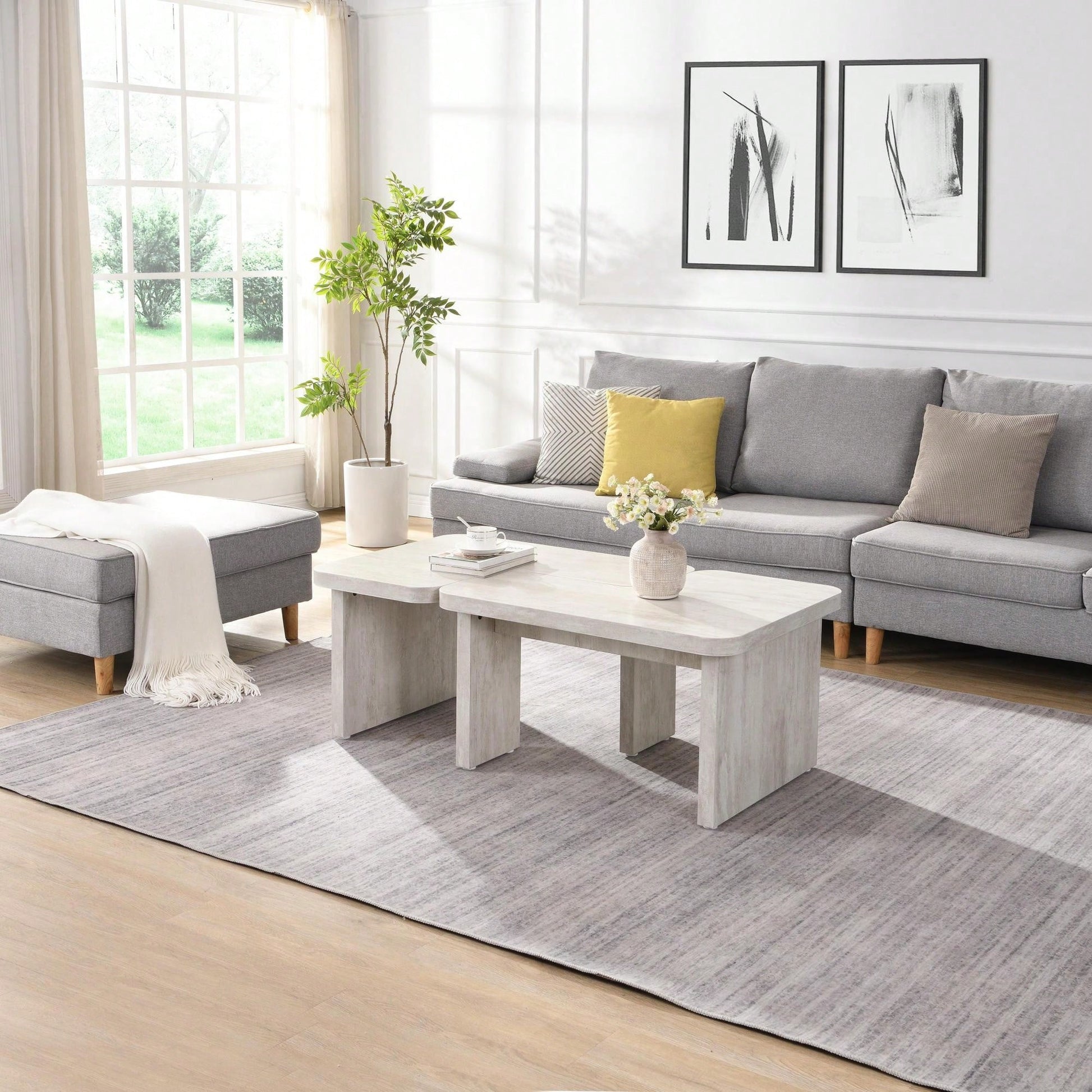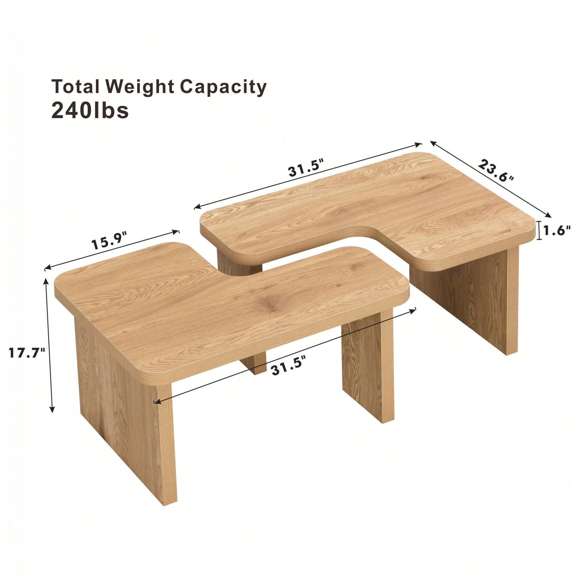 This detachable coffee table features a simple yet stylish design that complements various furniture styles, enhancing the overall aesthetic of your space. The rounded corners not only add to its modern look but also provide safety by preventing accidental knocks. With two splicing configurations, this coffee table adapts easily to different room sizes and usage scenarios, offering multifunctional utility. The smooth surface and legs make maintenance a breeze, while the sturdy construction, with 40mm thick MDF wood boards, ensures lasting stability and durability.