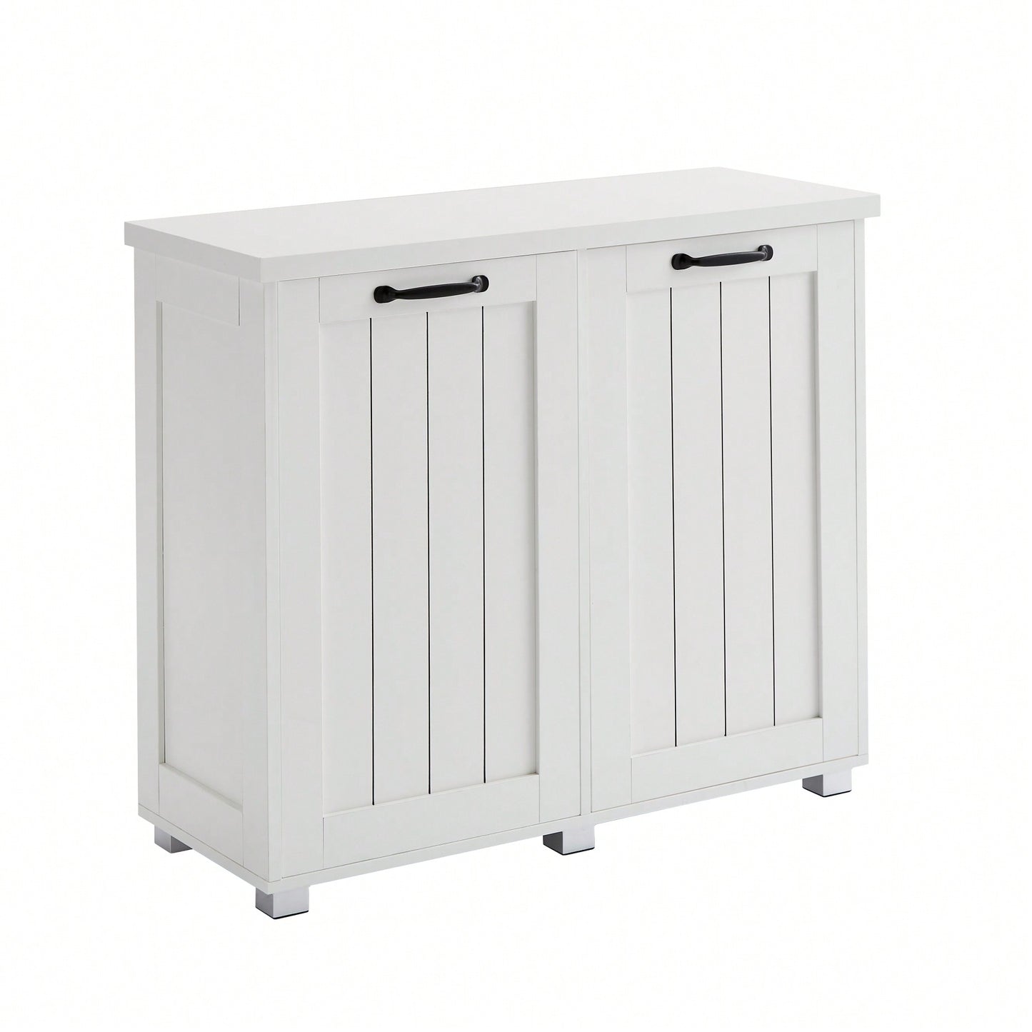 Dual-Compartment Tilt-Out Trash & Laundry Sorter Cabinet With Cutting Board - Pet-Proof Kitchen Storage, Freestanding White Design