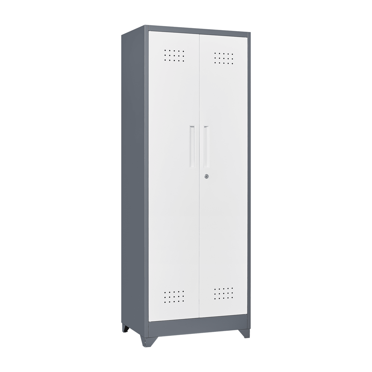 This robust storage cabinet is constructed from premium steel, featuring a reinforced internal frame for enhanced strength and stability, enabling it to support heavier loads. The surface is treated to resist corrosion and rust, ensuring a prolonged service life. The cabinet includes hanging rods and shelves, making it an ideal solution for organizing tools, clothing, and cleaning supplies in various settings such as garages, offices, and basements.