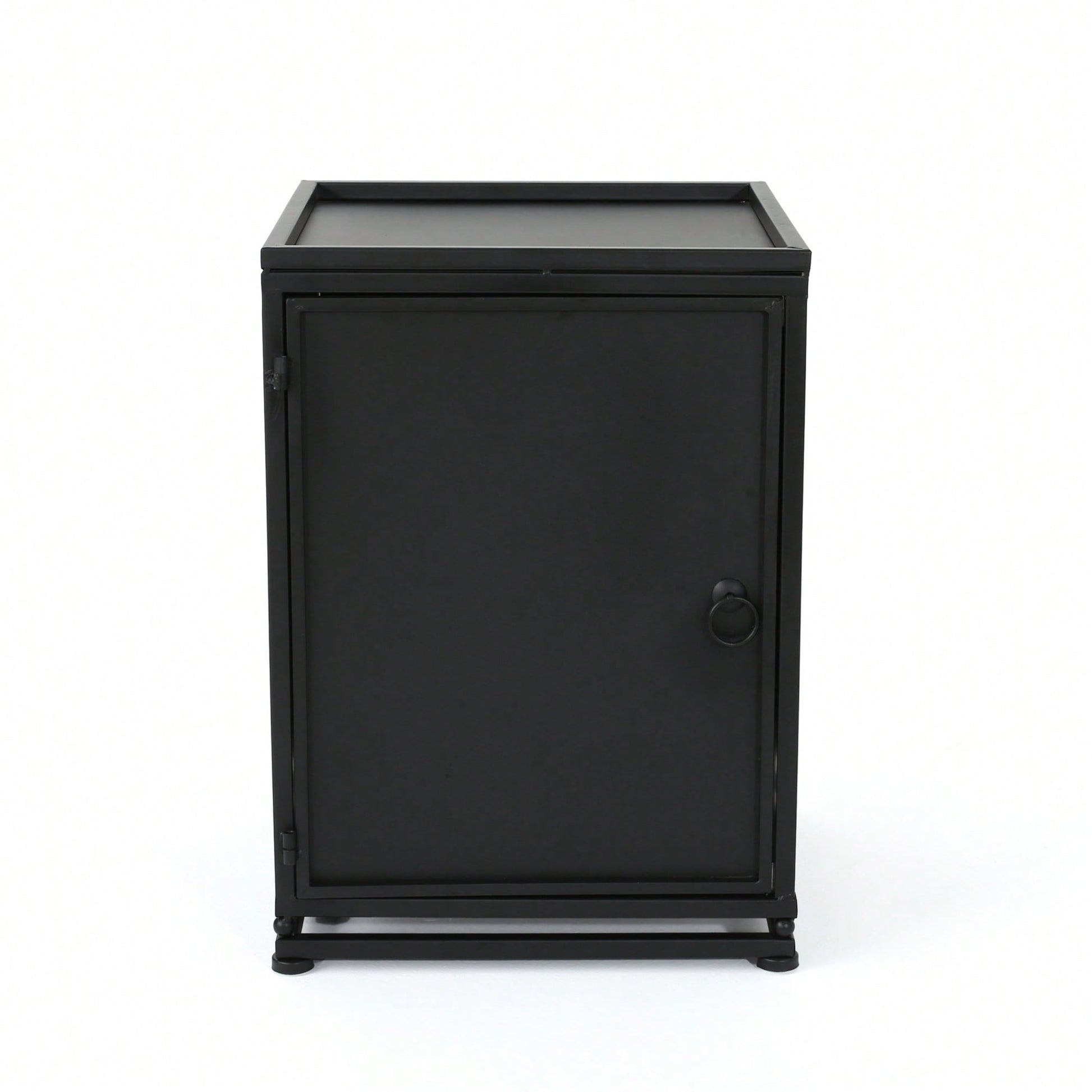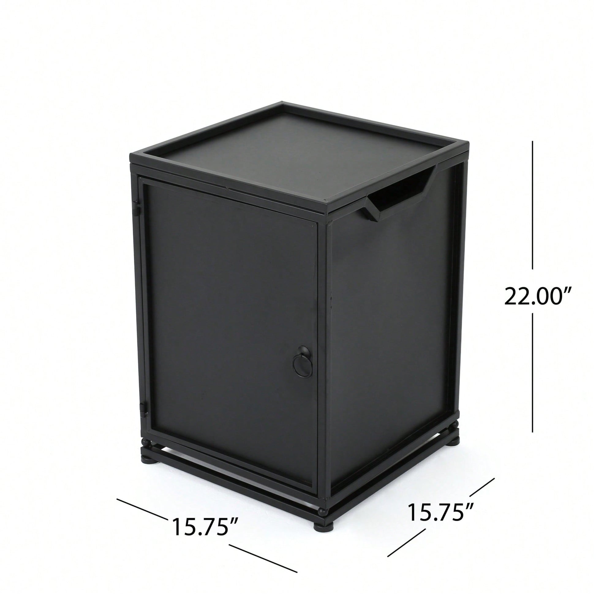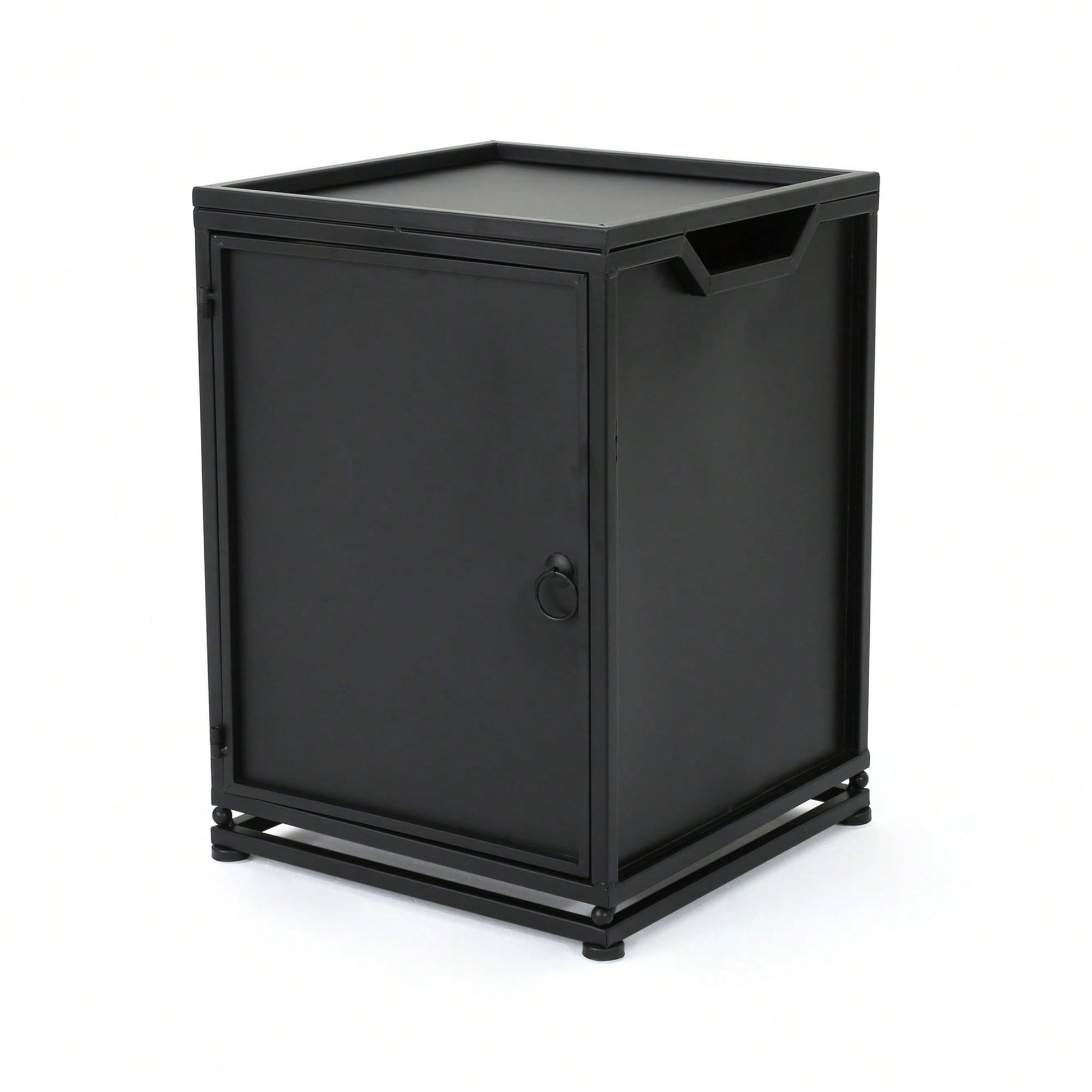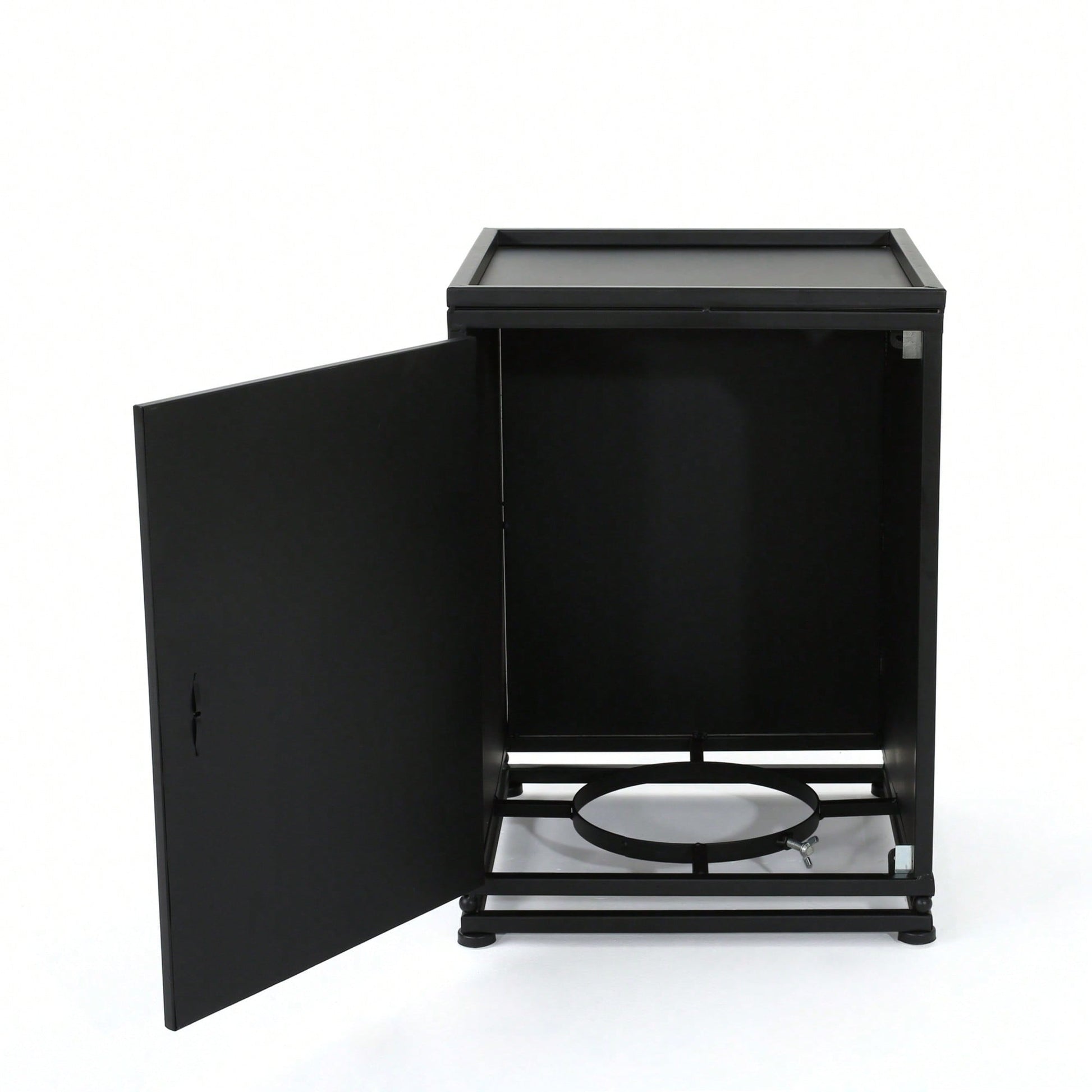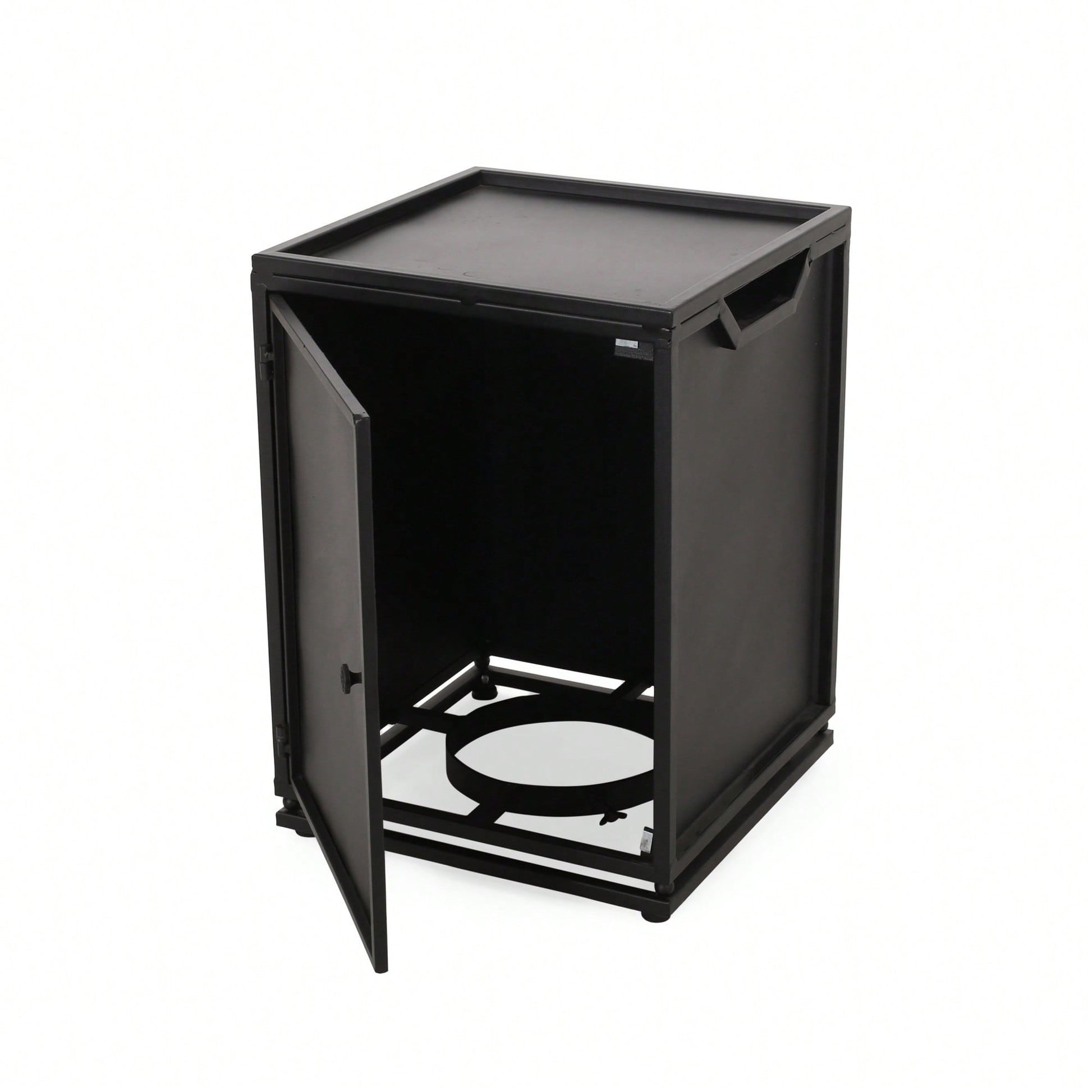This metal tank holder side table combines a chic, minimalistic look with incredible functionality. Its modern design features a sleek metal frame that seamlessly blends with your existing decor, making it an ideal accessory for any interior space. Perfect for hiding your propane tank while also serving as a stylish side table, this versatile piece enhances the aesthetic of your home. Constructed from durable powder-coated iron, it ensures long-lasting use. The convenient door provides easy access to your tank, while the adjustable levelers on the bottom allow for proper hose fitting.