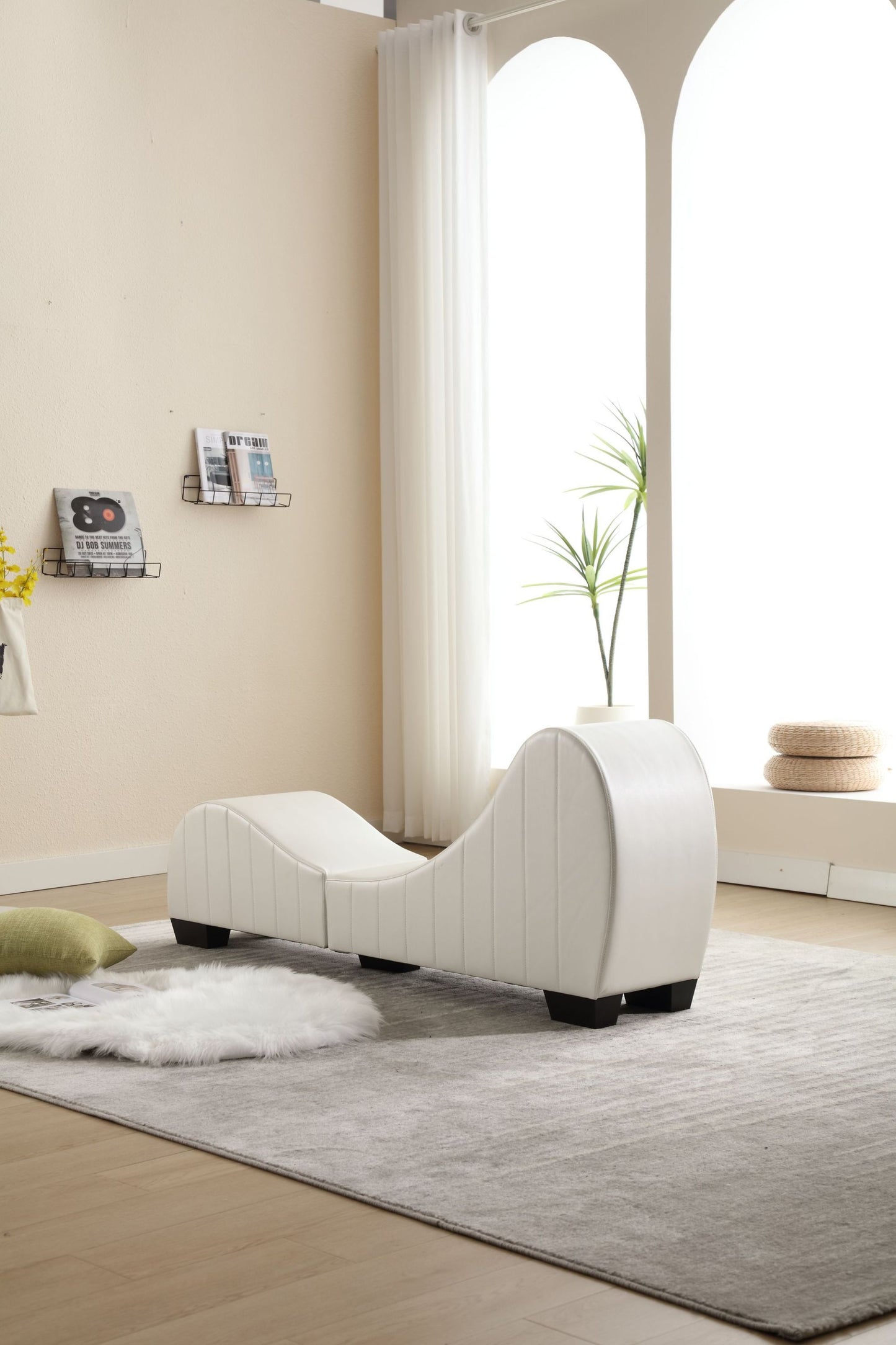 This modern faux leather curved chaise lounge is designed for stretching and relaxation, making it an ideal accent piece for your living room or bedroom. With a minimalist and elegant look, it requires only leg assembly for setup. The lounge provides a comfortable space to unwind while saving room in your home. The high-quality faux leather upholstery is complemented by a thick layer of padding, ensuring a cozy experience. Its sturdy construction features a solid wood and curved frame, allowing for confident use during yoga and other activities.