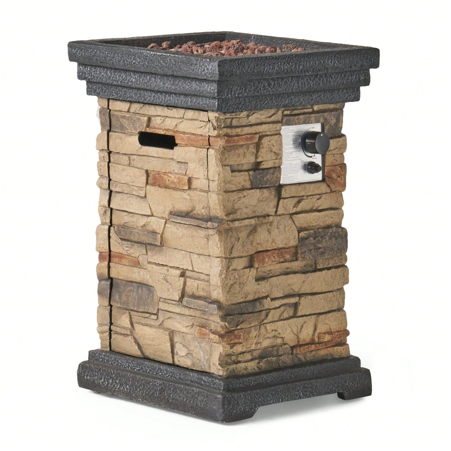 Elegant 19.5-Inch Outdoor Stone Fire Column - 40,000 BTU Patio Heater For Cozy Gatherings
