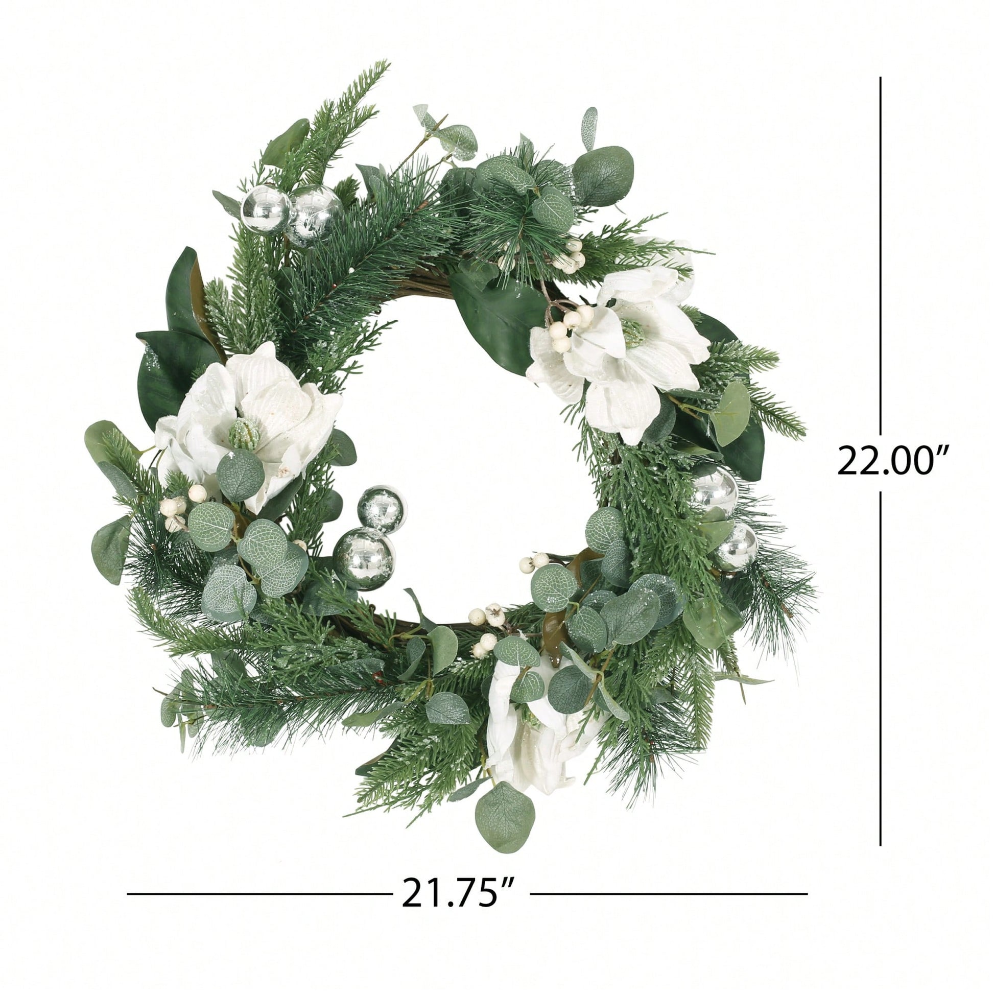 Transform your space with this charming wreath that offers a warm and inviting touch to your home decor. Measuring 21.75 inches wide, 5 inches deep, and 22 inches high, this decorative piece is designed to fit seamlessly into various settings. The lightweight construction allows for effortless movement and placement, making it easy to change its location to suit your decor needs. With its beautifully full and lush look, this wreath serves as a stunning focal point in any room or setting, and it arrives ready to use with no assembly required.