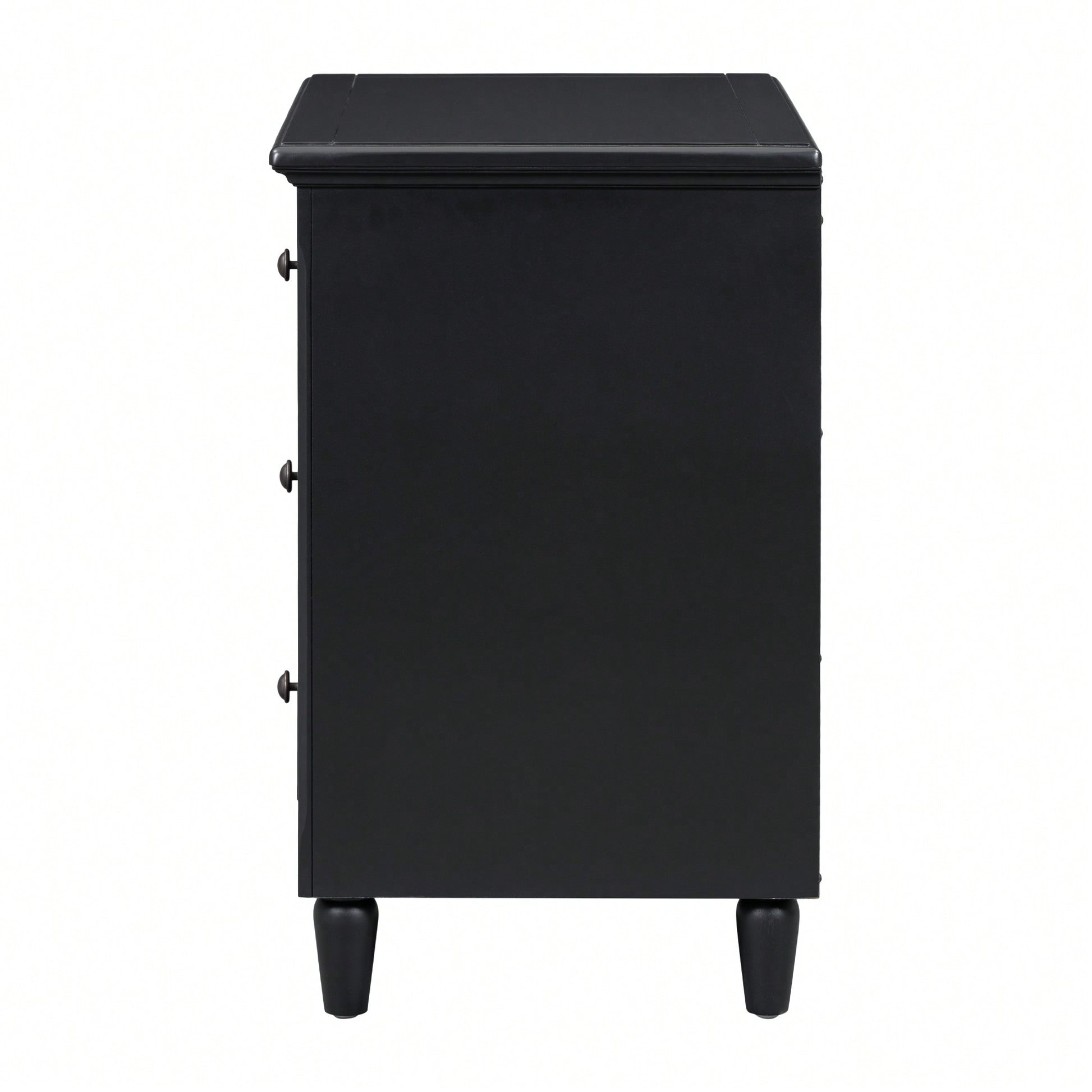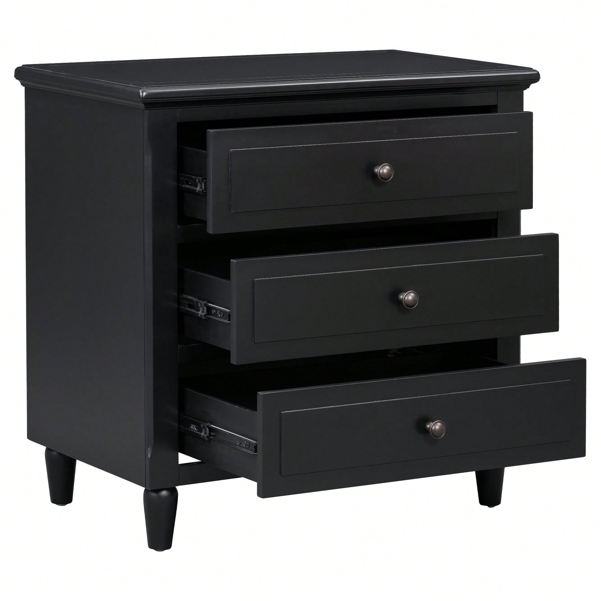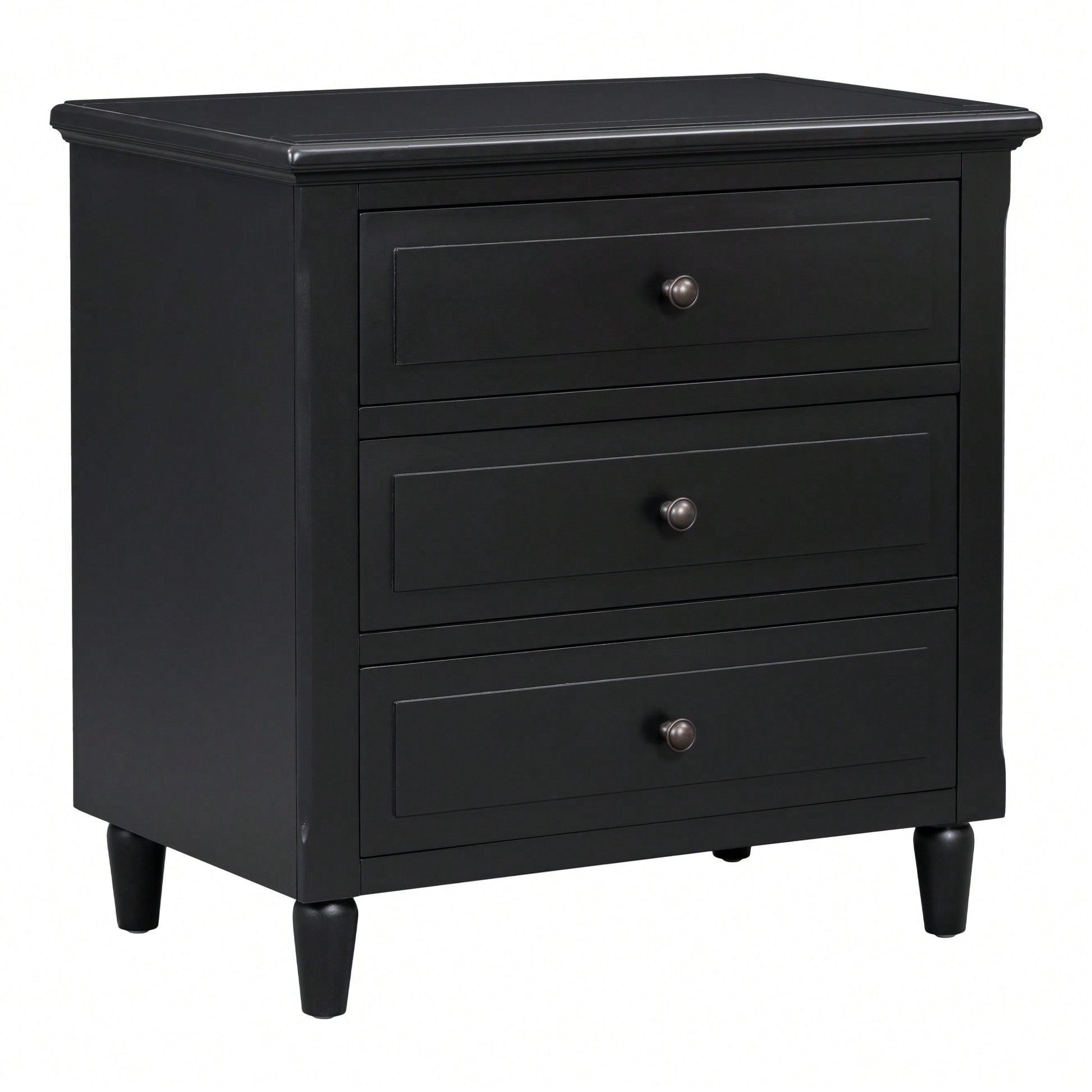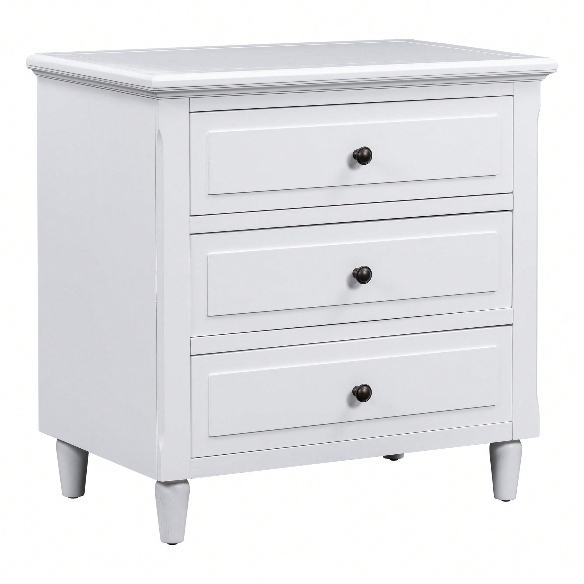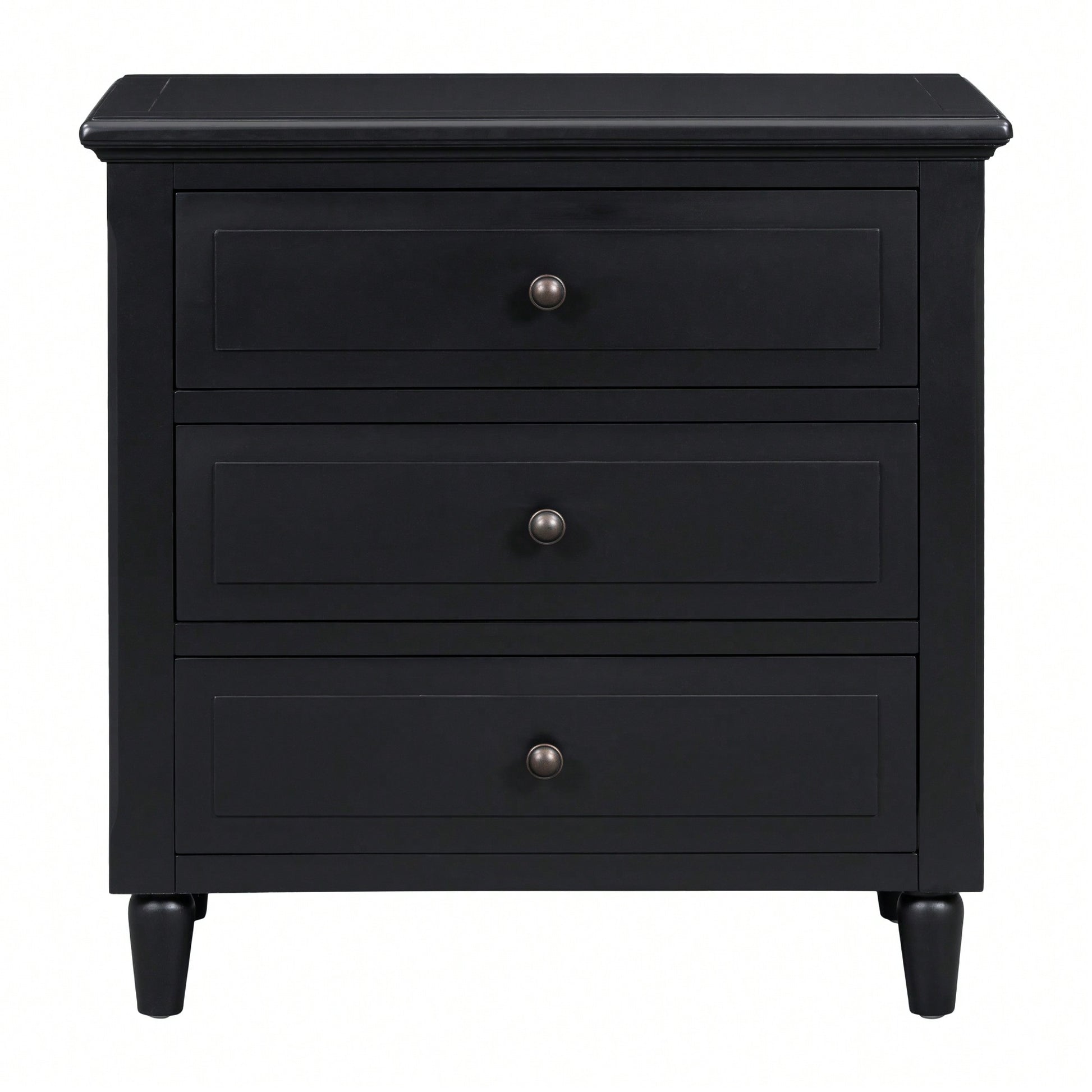 Elegant 3-Drawer Wooden Nightstand With Ample Storage Space For Bedroom Furniture