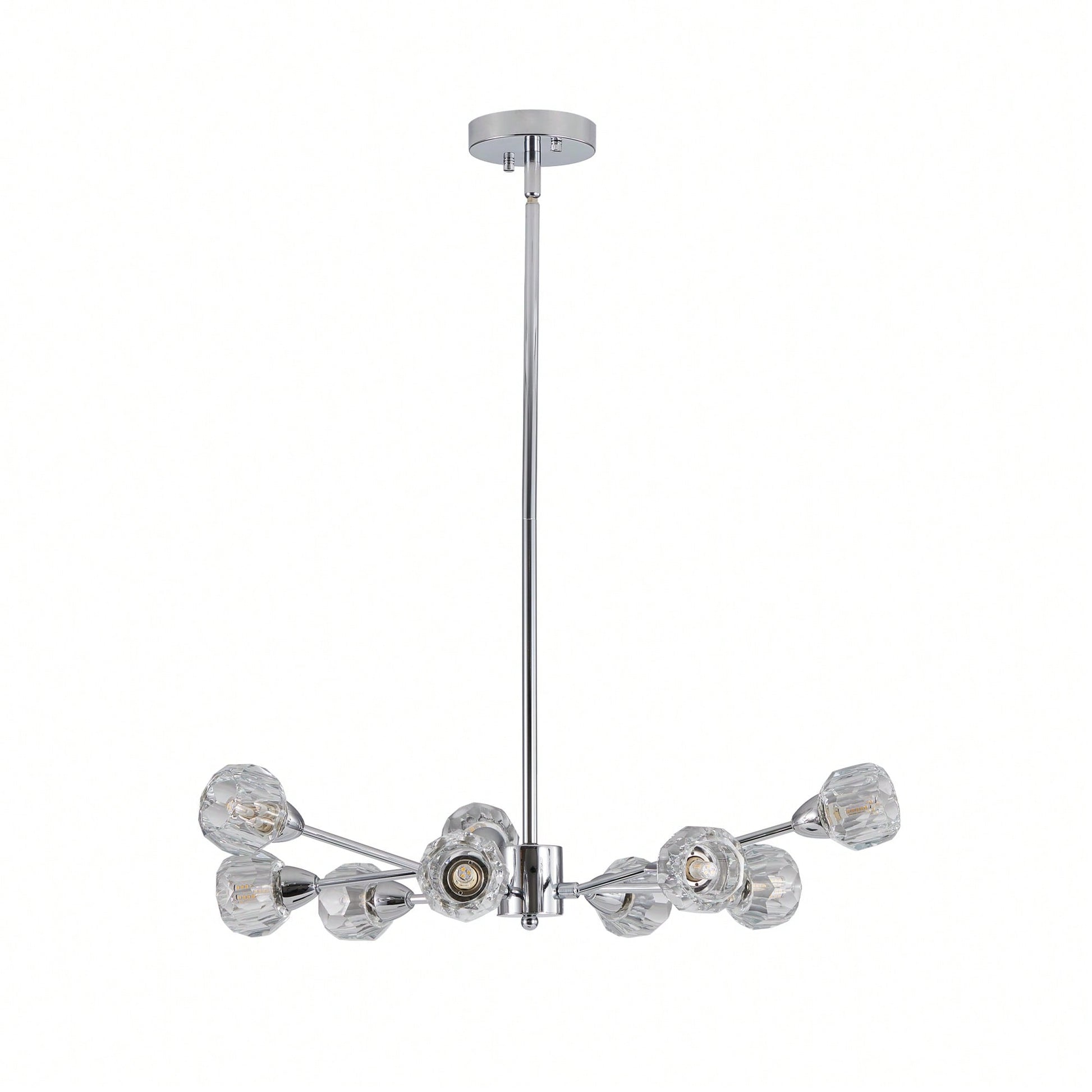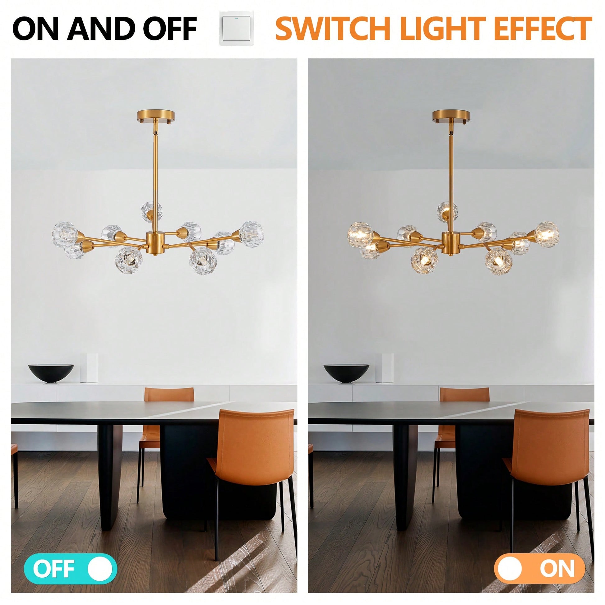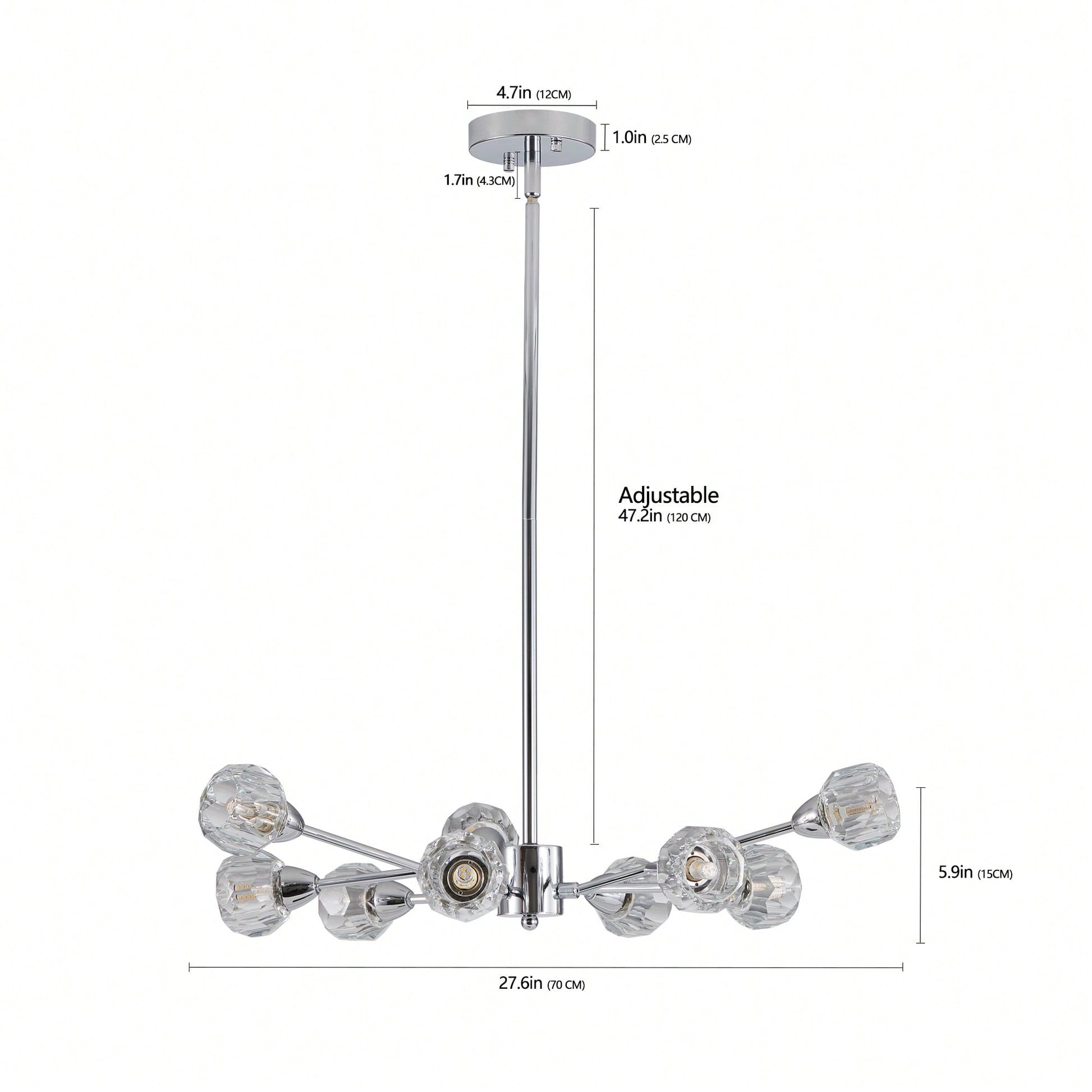This modern chandelier features a stunning globe crystal diamond shape and a sleek chrome lamp body, making it a perfect addition to any contemporary space. When illuminated, the light reflects beautifully through the crystal, enhancing the ambiance of your room with a romantic and elegant glow. Ideal for dining rooms, living rooms, bedrooms, kitchens, and entryways, this versatile chandelier complements a variety of interior styles. It is compatible with both incandescent and halogen bulbs, ensuring you can choose the perfect lighting for your needs. The chandelier comes with all necessary installation accessories and detailed instructions for easy setup.