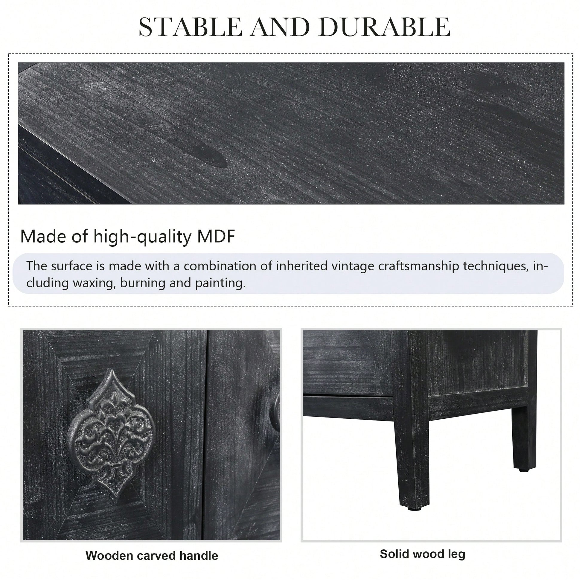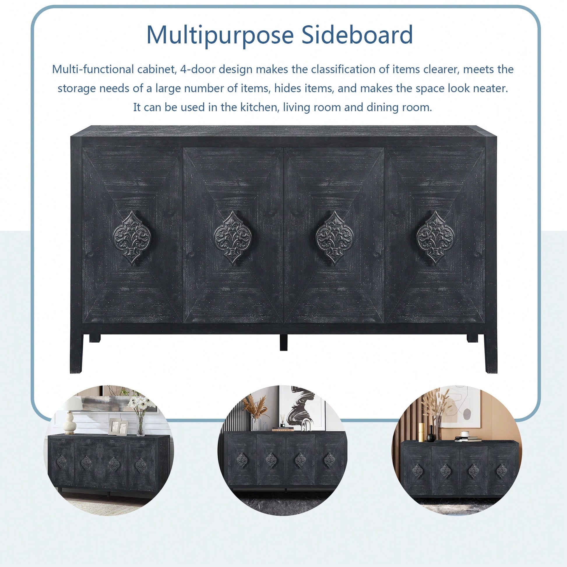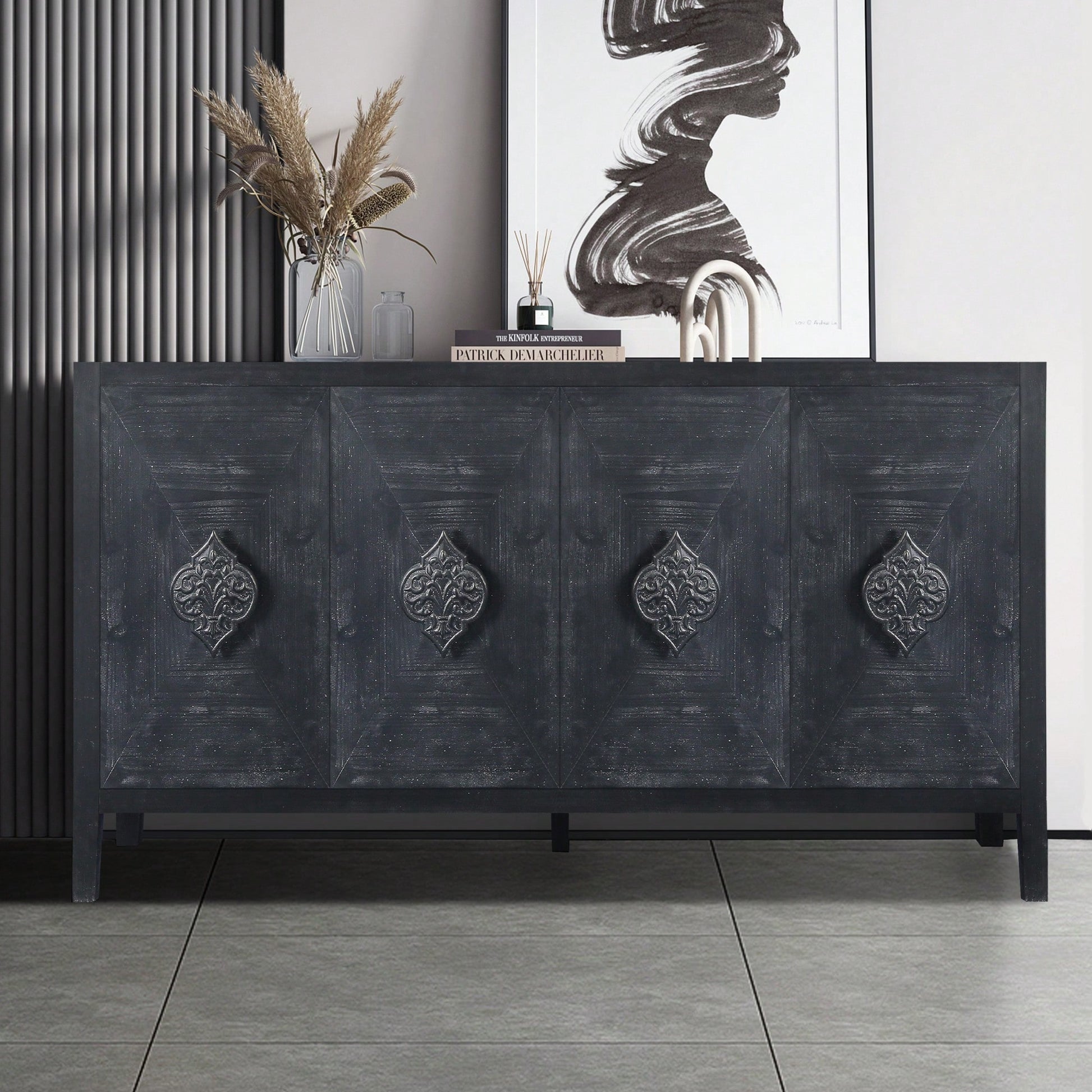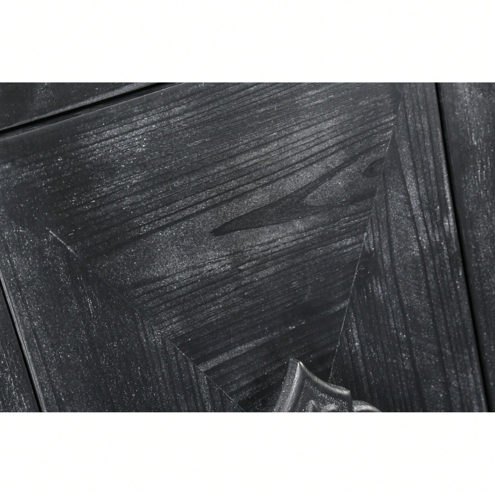 Elegant Antique Carved Flower Door Handle For Four-Door Cabinet - Perfect For Living Room, Kitchen, Or Hallway (Black Finish)