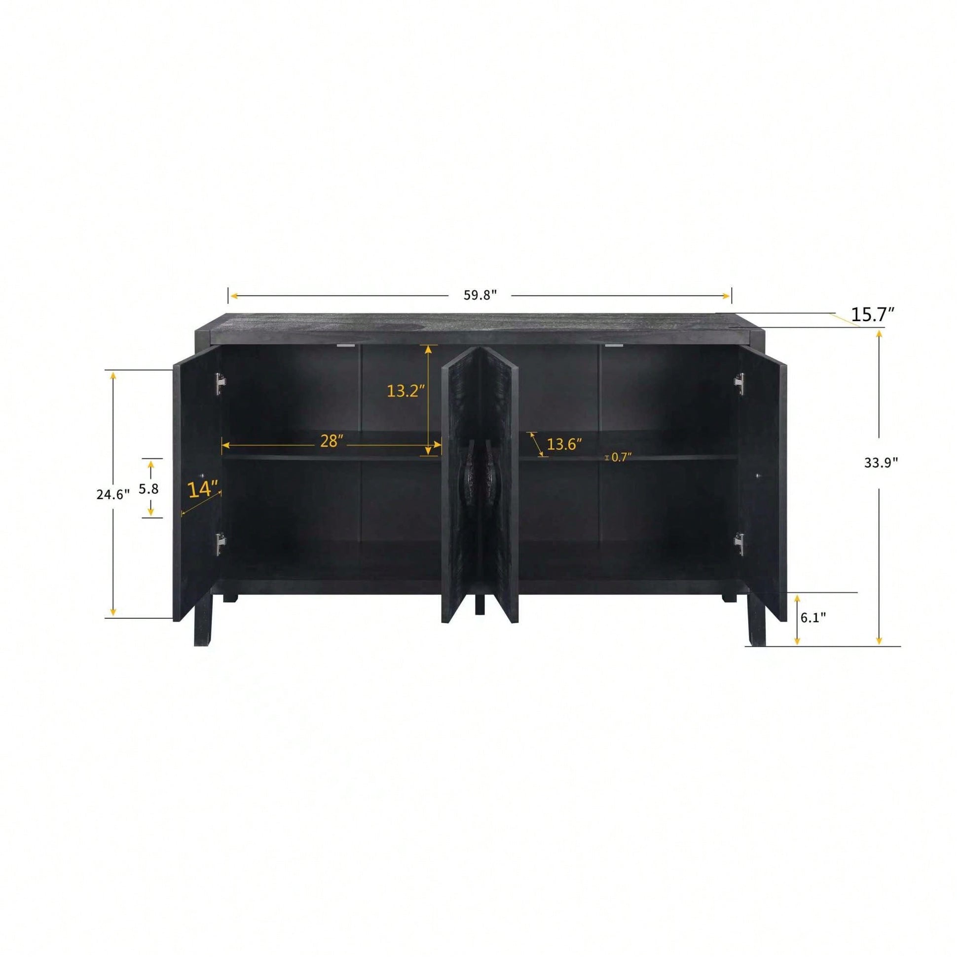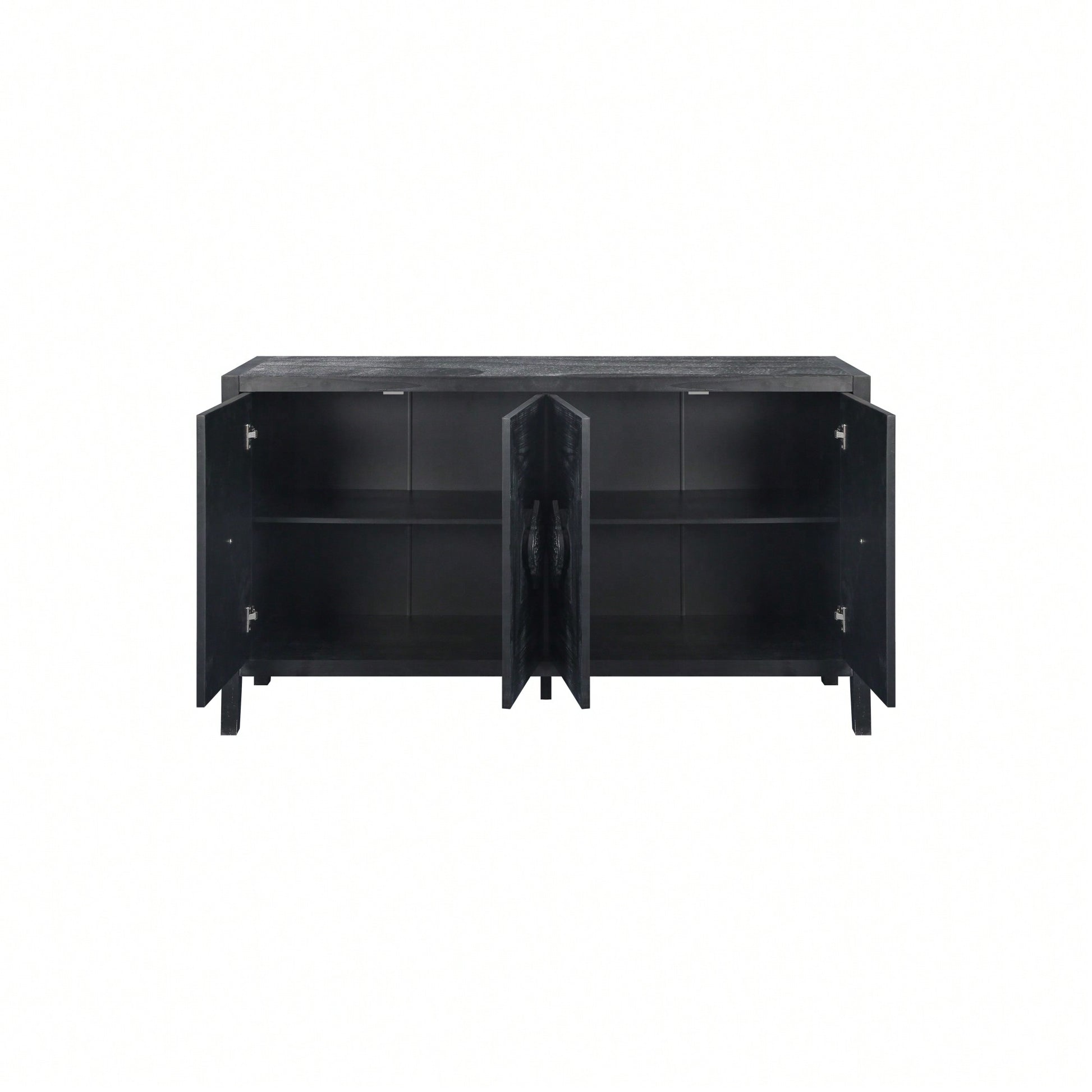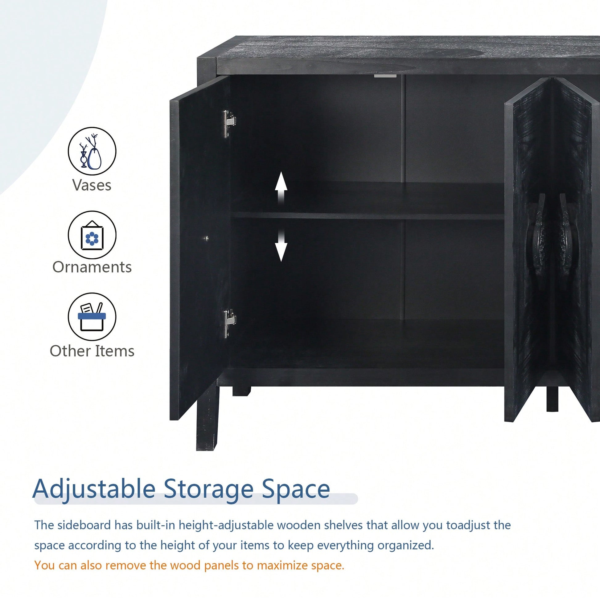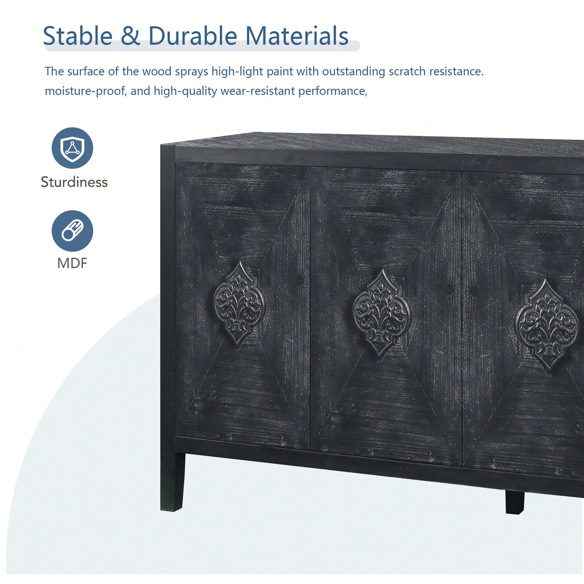 Elegant Antique Carved Flower Door Handle For Four-Door Cabinet - Perfect For Living Room, Kitchen, Or Hallway (Black Finish)