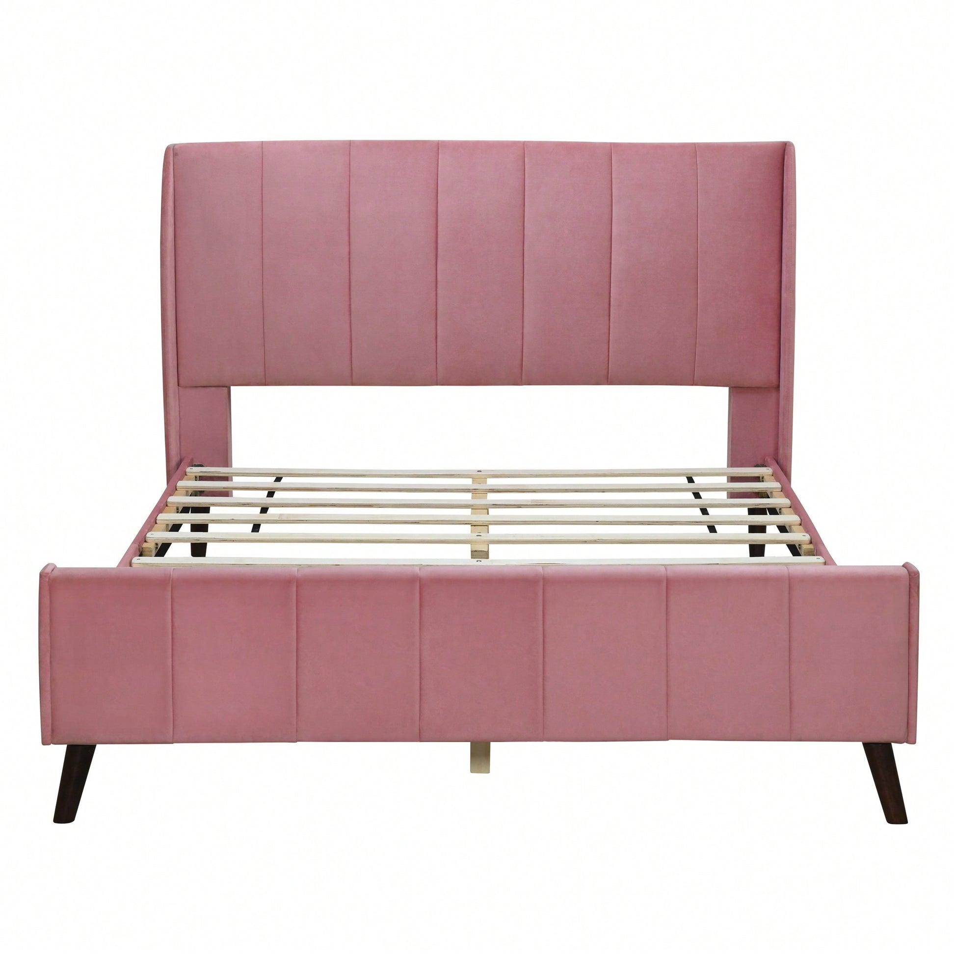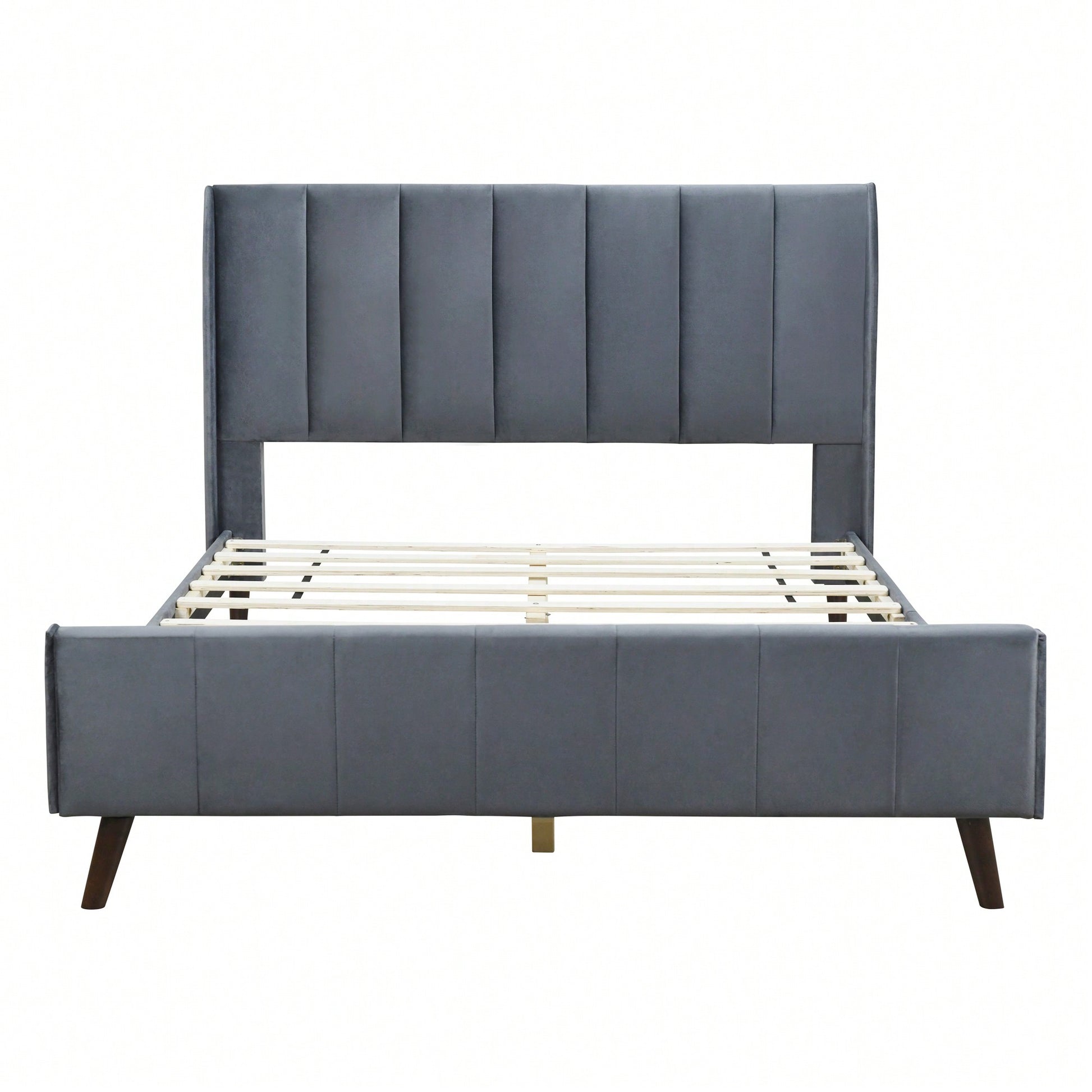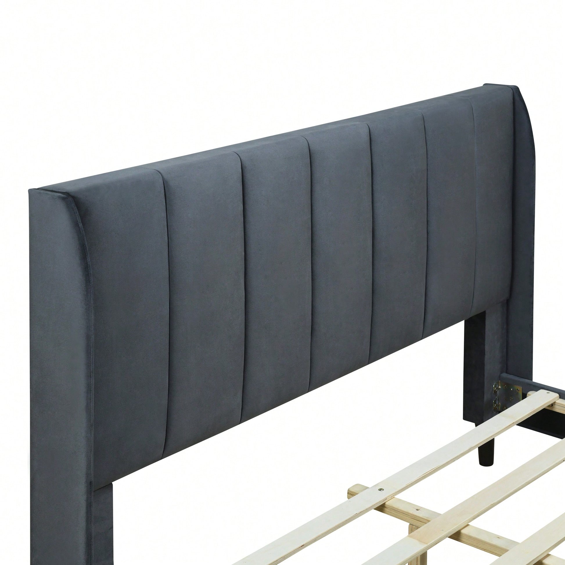 This upholstered platform bed combines style and functionality, featuring a plush, foam-filled velvet that creates an inviting atmosphere in any bedroom. The headboard is elegantly tufted, adding a sophisticated touch to the overall design. The footboard not only enhances the aesthetics but also serves as an ideal space for hanging clothes and organizes your space neatly. The platform bed's hollow base adds versatility, allowing you to utilize vertical space effectively for storage, such as games or puzzles.