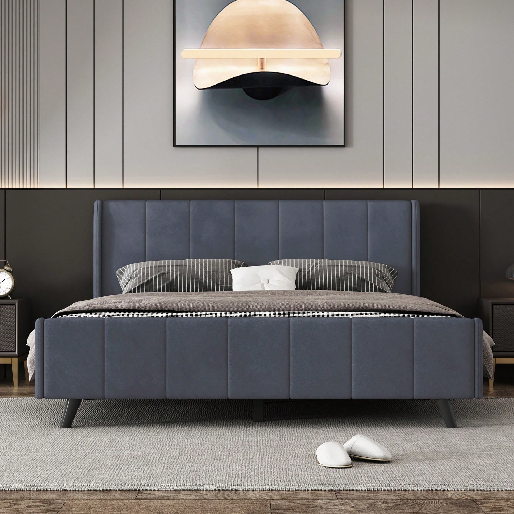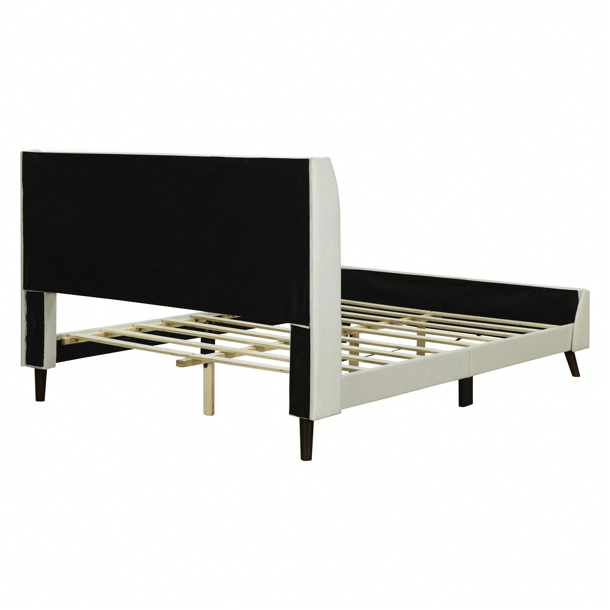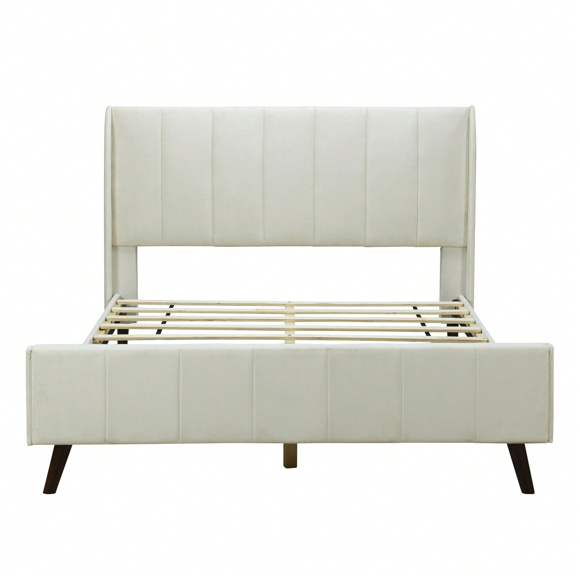 Elegant Beige Velvet Queen Size Upholstered Platform Bed For Luxurious Bedroom Decor