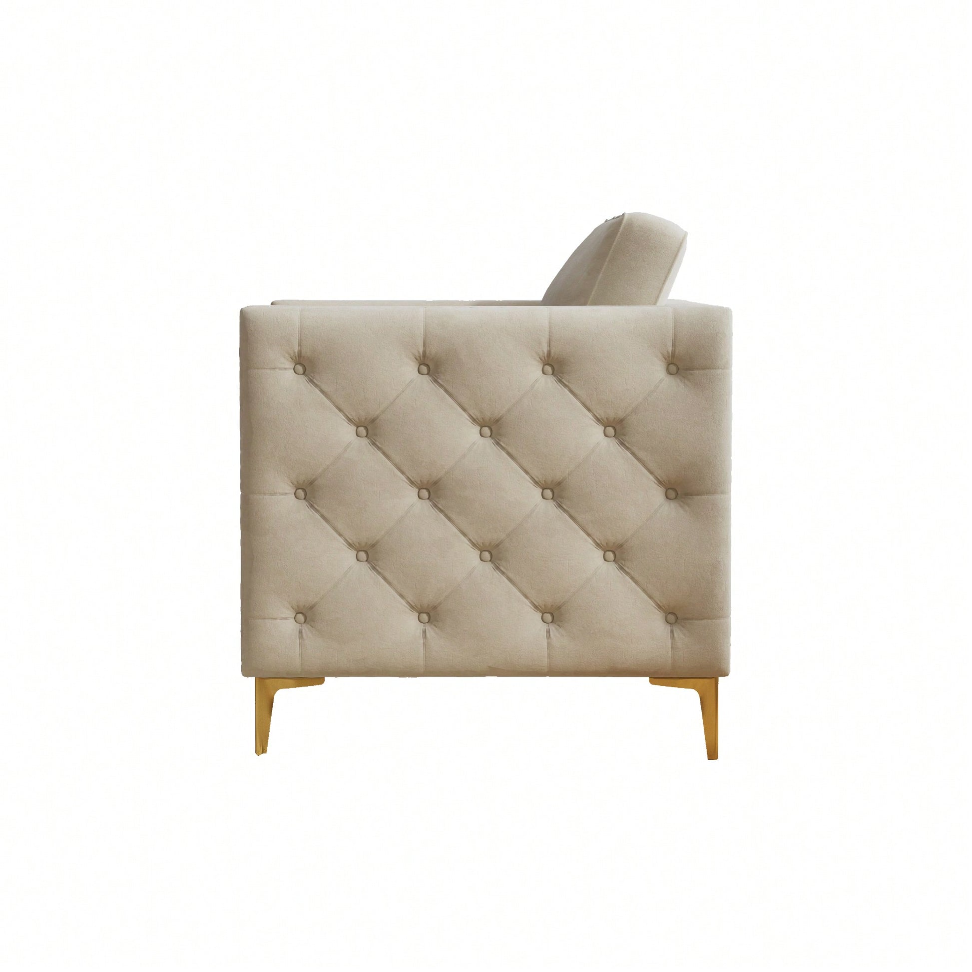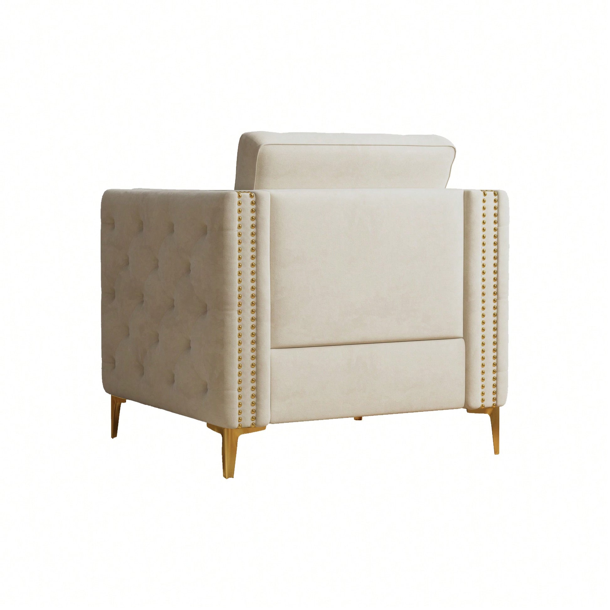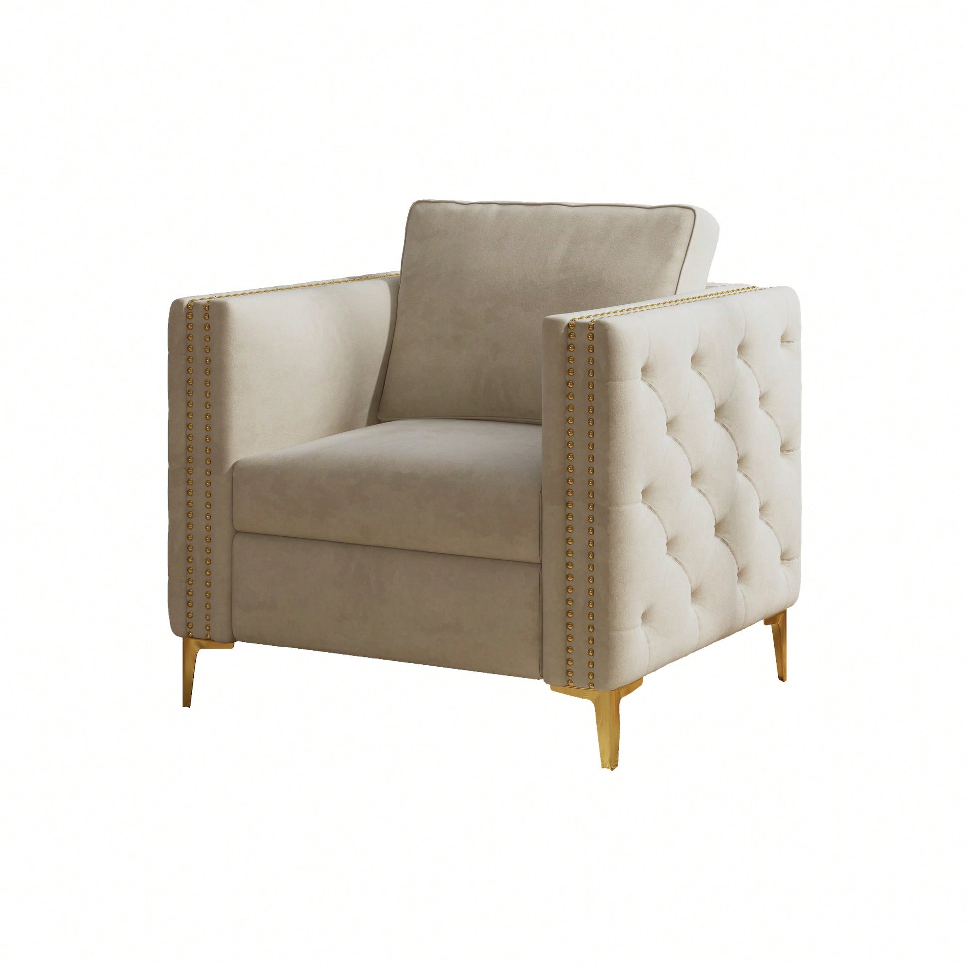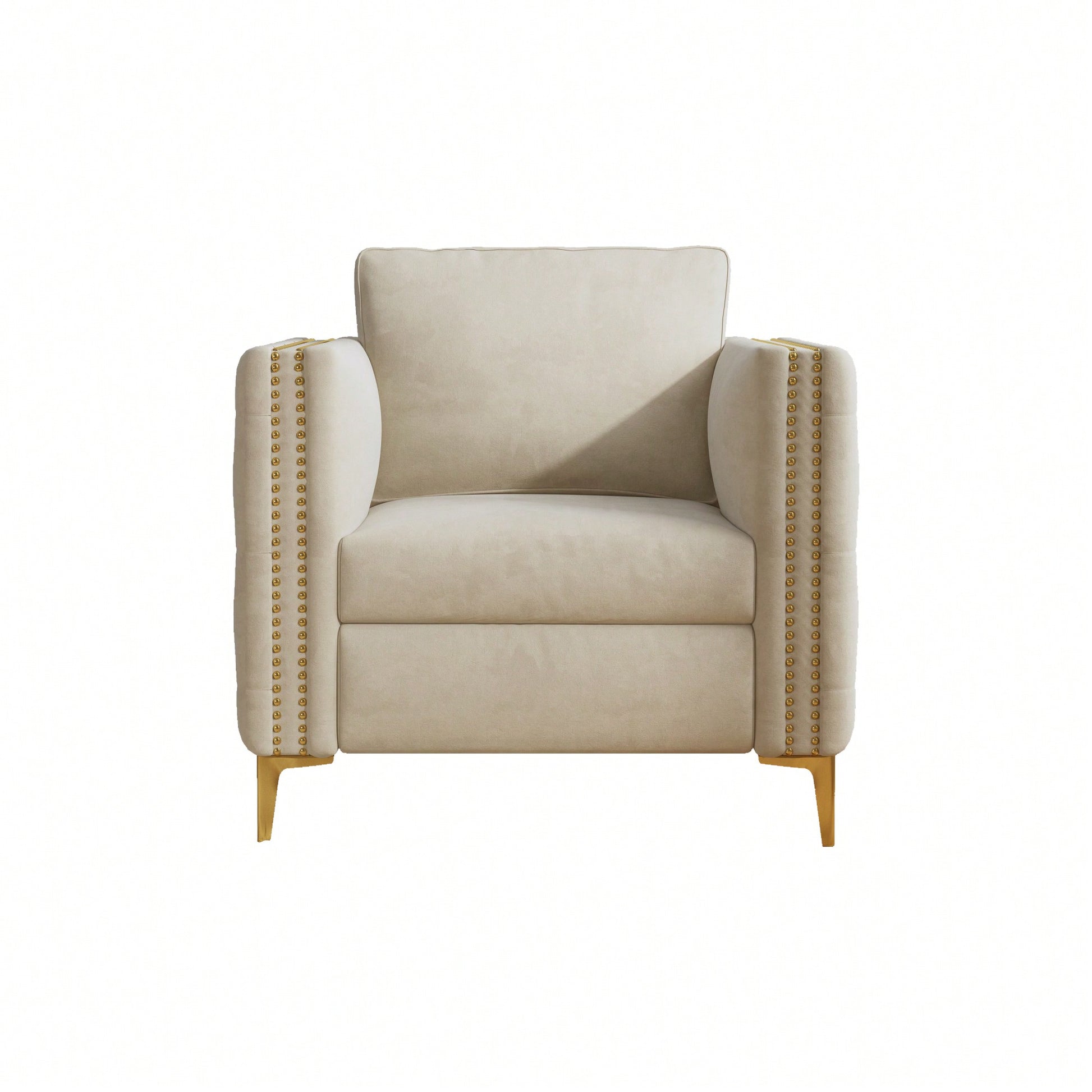 Elegant Beige Velvet Upholstered Accent Chair With Metal Legs For Living Room