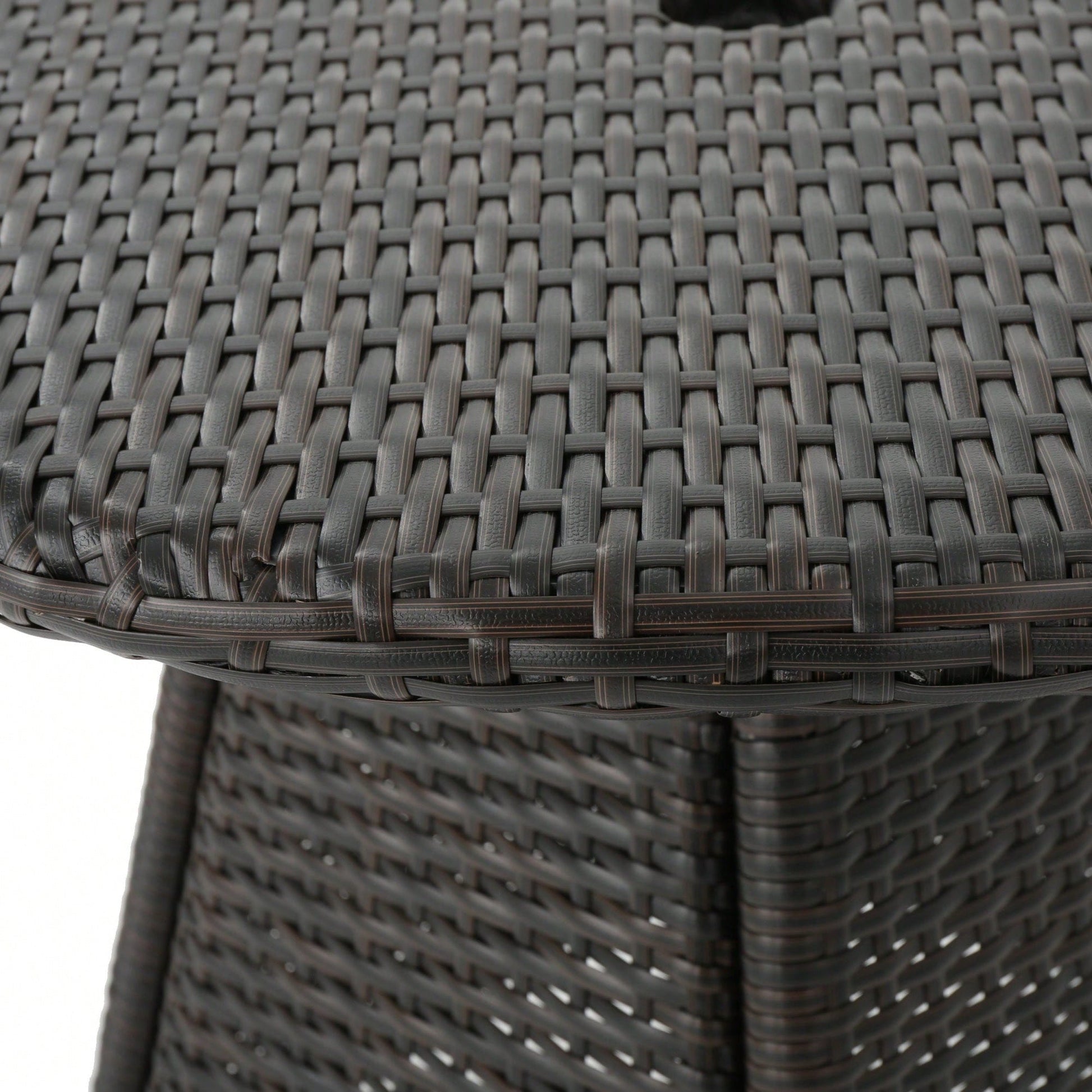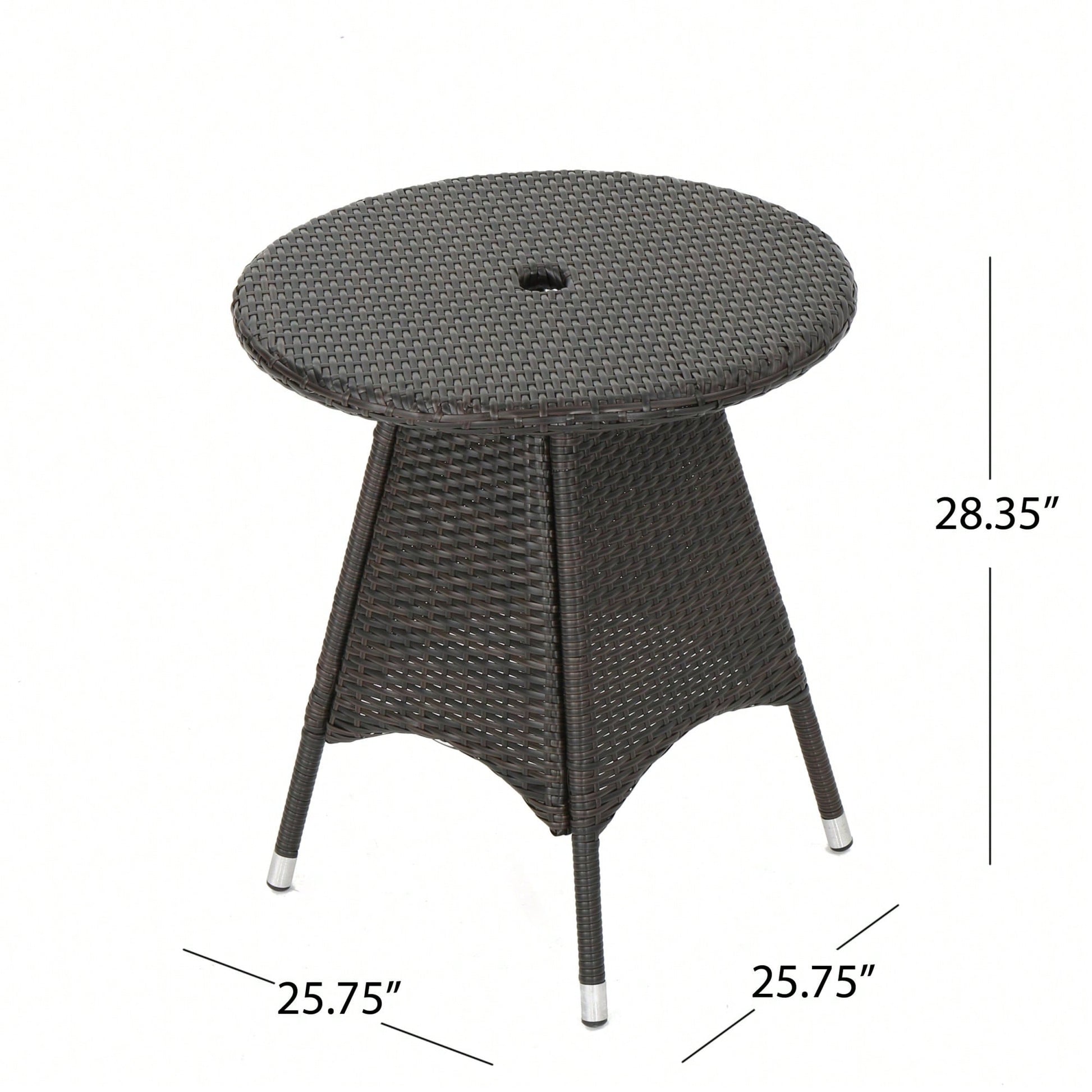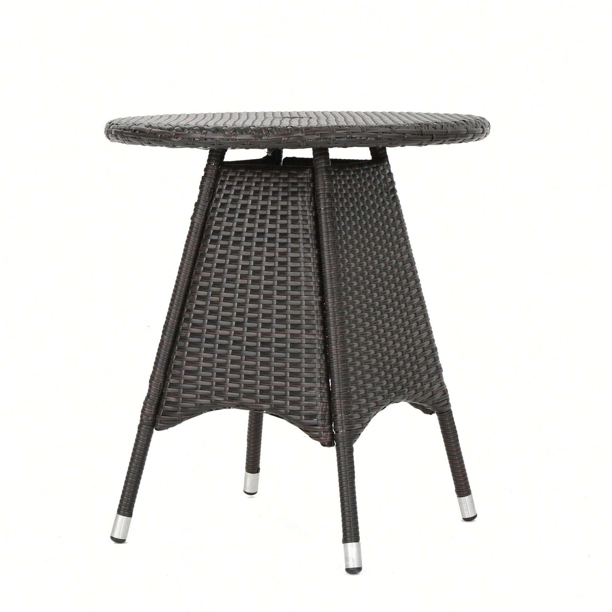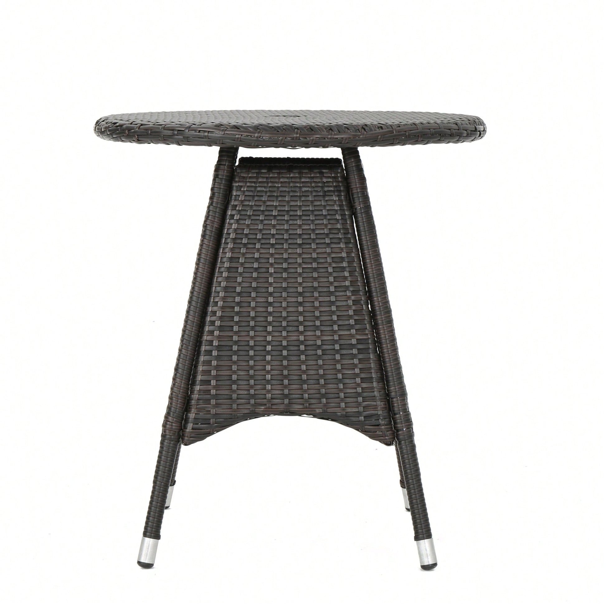 This bistro table is an excellent addition to any outdoor space, designed to enhance your patio with style and functionality. Crafted with a sturdy metal frame and wrapped in weather-resistant resin wicker, it ensures durability against the elements. Its versatile design makes it suitable for various uses, whether you're enjoying a sunny breakfast or hosting a star-lit dinner. The tapered base and circular surface provide a sleek, understated look that complements any outdoor ensemble.