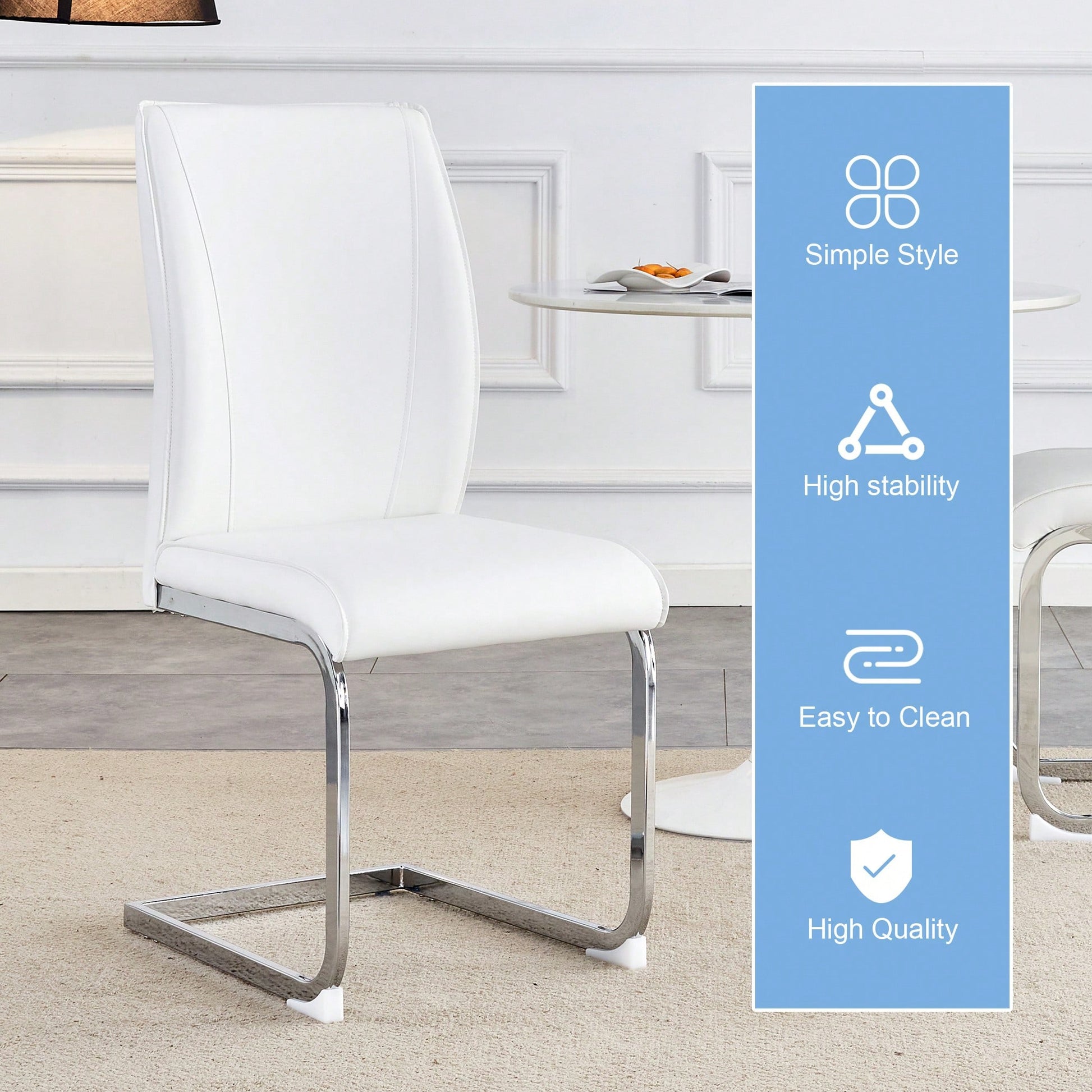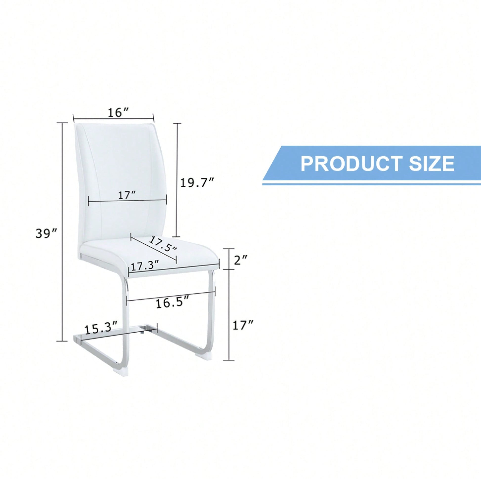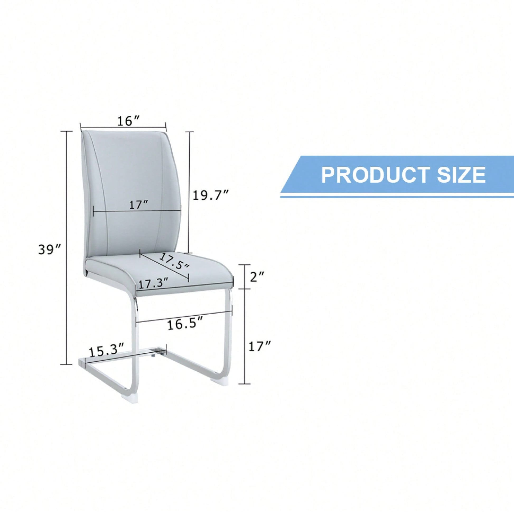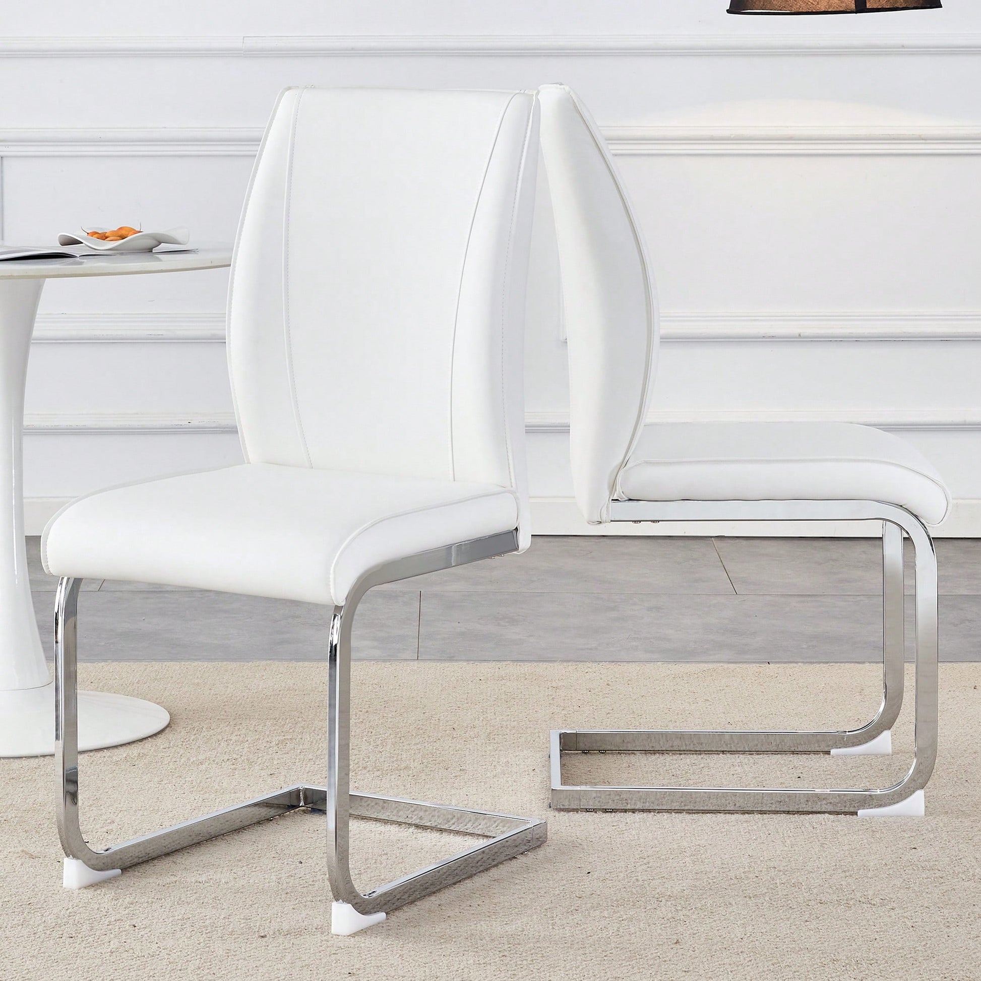 This set of two black dining chairs features a luxury simple design with an arched silhouette that enhances the aesthetic of your dining space. The chairs are equipped with unique arched metal silver legs, providing both stability and a contemporary industrial flair. Crafted from high-quality PU material, the chairs offer a soft and breathable surface that is wear-resistant and easy to maintain. The high-resilience sponge filling ensures strong support and comfort, making them ideal for extended sitting. The ergonomic backrest conforms to the natural curve of the waist, effectively dispersing pressure to alleviate fatigue. With a robust structure and anti-slip feet, these chairs are safe and protect your flooring. Available in multiple colors, they can easily complement various decorative styles. Assembly is straightforward, typically taking 15-20 minutes with the included manual.