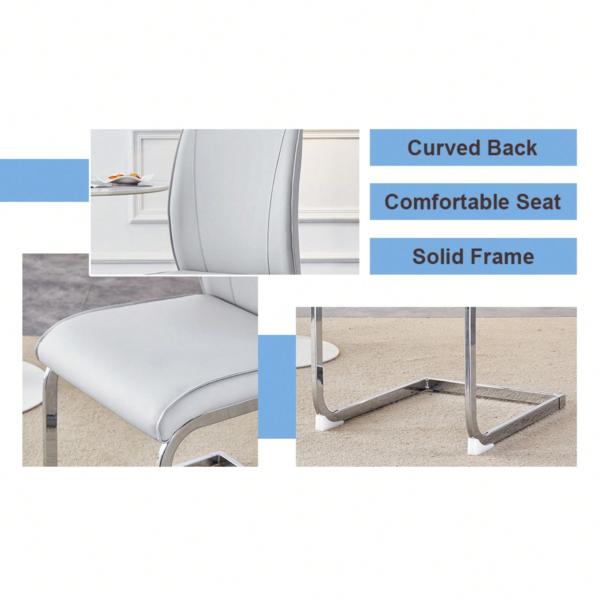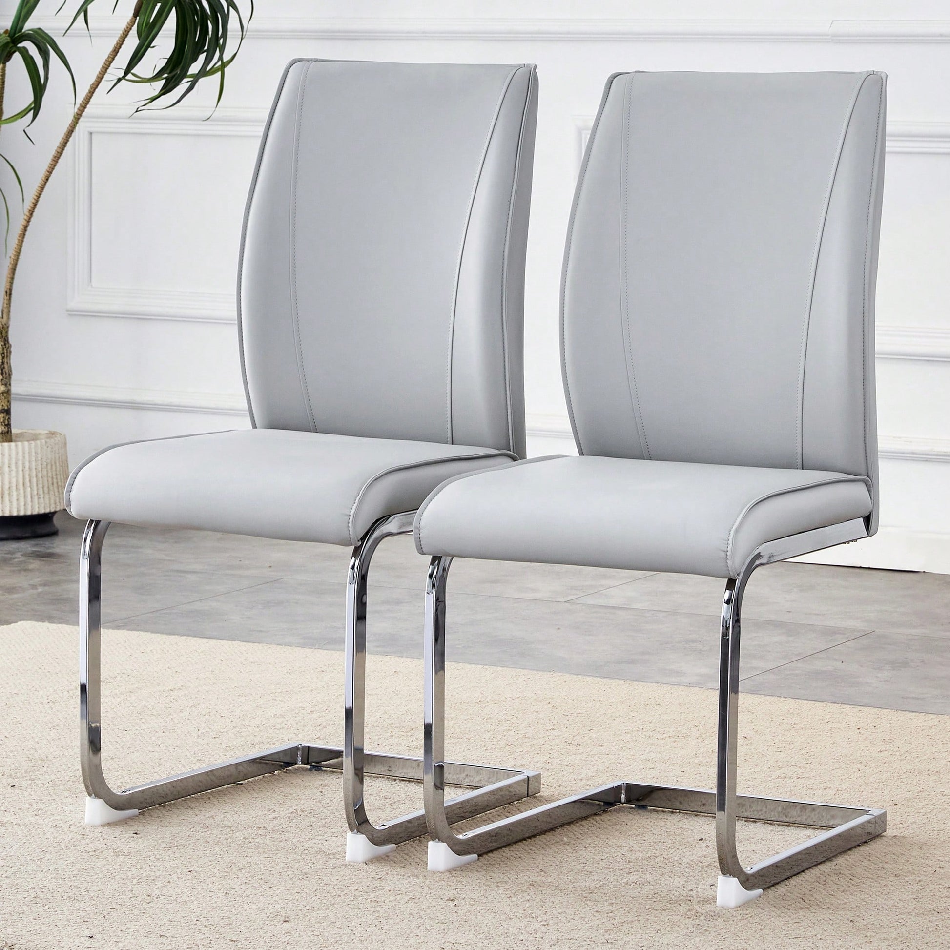 Elegant Black PU Dining Chairs With High Resilience And Arched Silver Metal Legs - Set Of 2