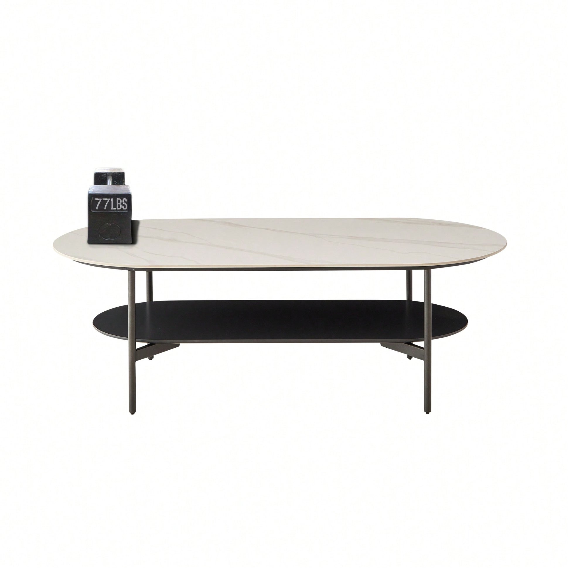 Elegant Ceramic Coffee Table With Walnut Finish Bottom Shelf And Metal Frame For Living Room And Office, Modern Design, Easy Assembly