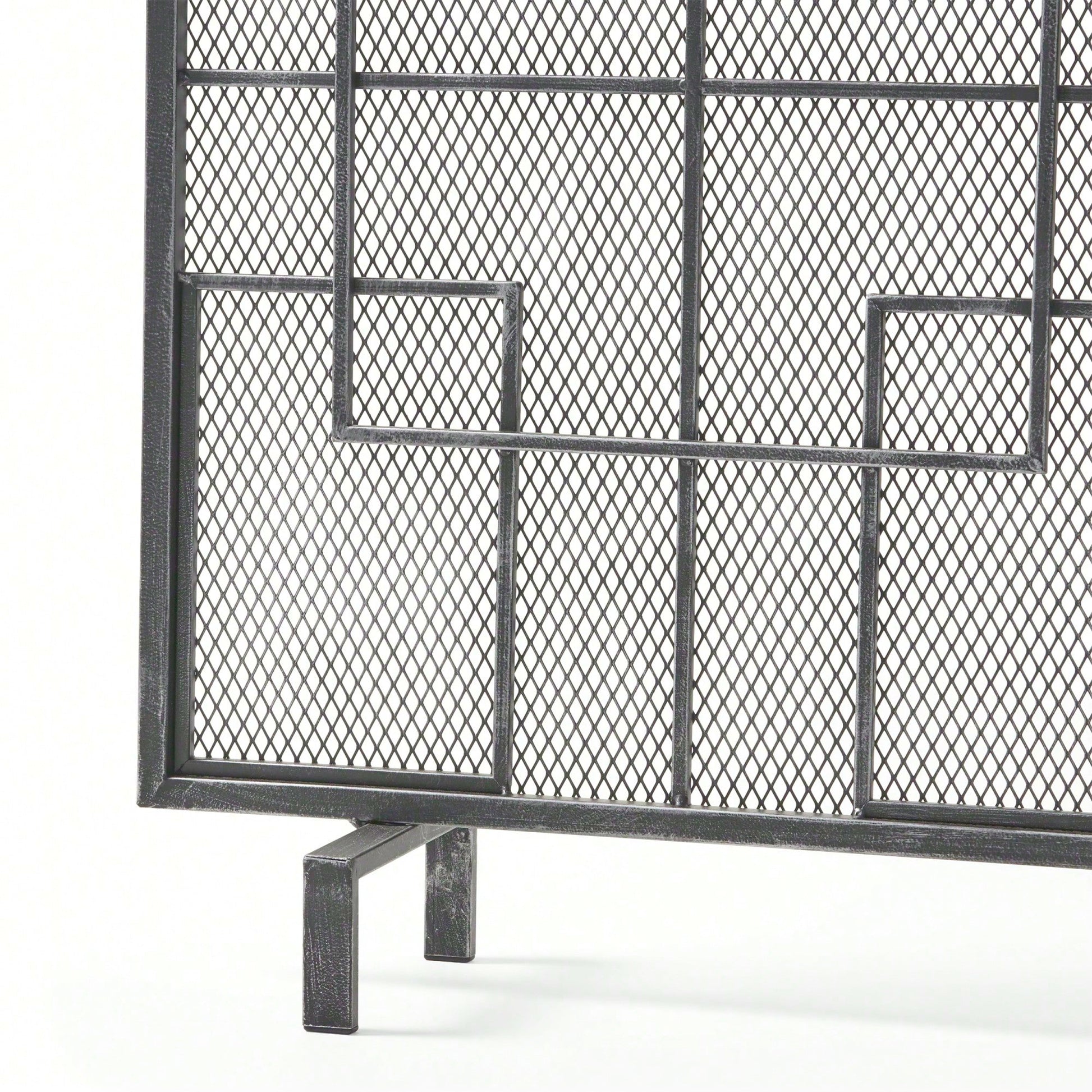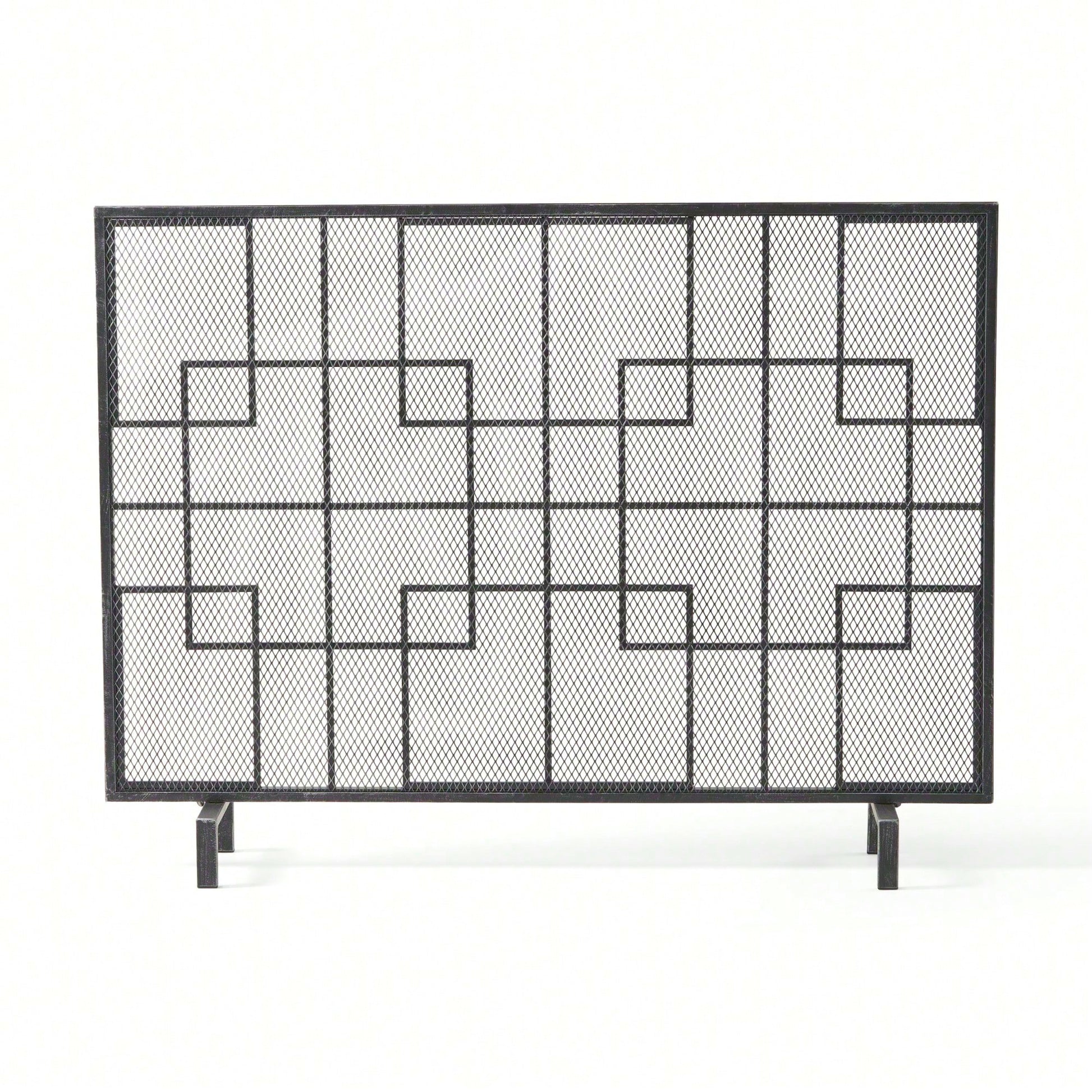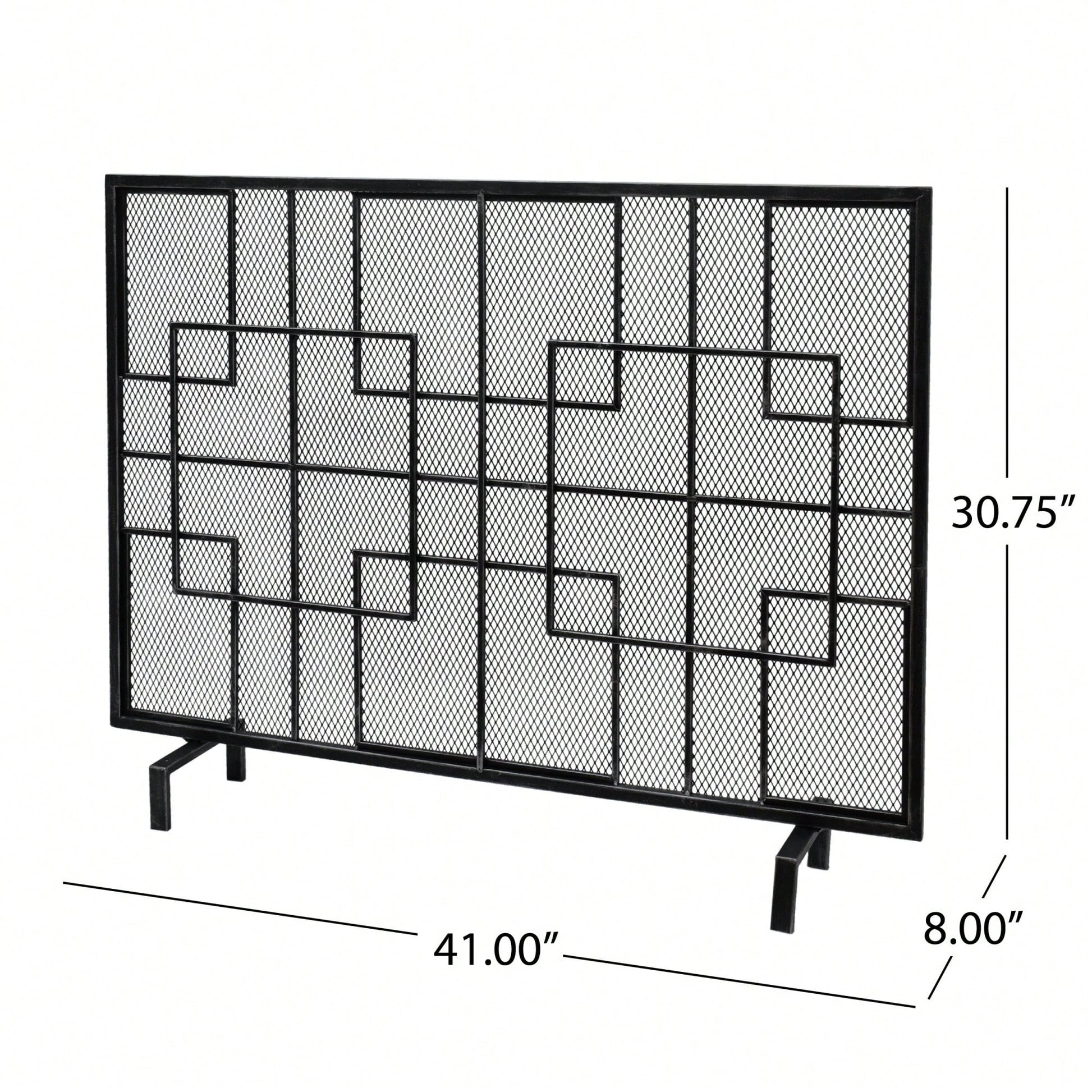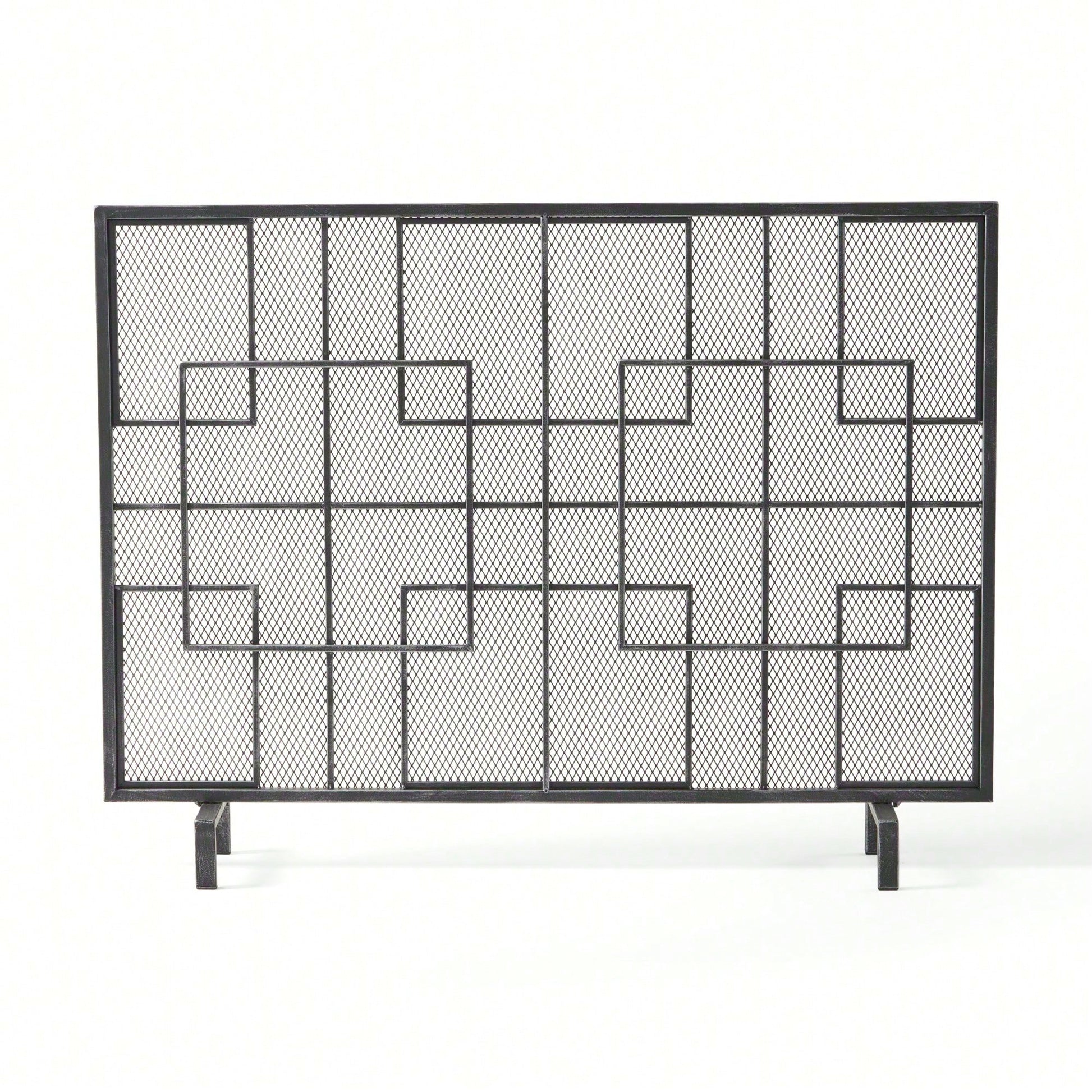 This fireplace screen is a stylish and practical accessory that enhances your living space while ensuring safety from stray embers and sparks. With its contemporary design, featuring clean lines and a geometric pattern, it serves as a perfect accent to both modern and traditional interiors. The single panel structure offers stability and elegance, while the fine mesh screen provides effective protection for your decor. Crafted from durable iron, this fire screen promises to withstand the test of time, making it a reliable addition to your home.