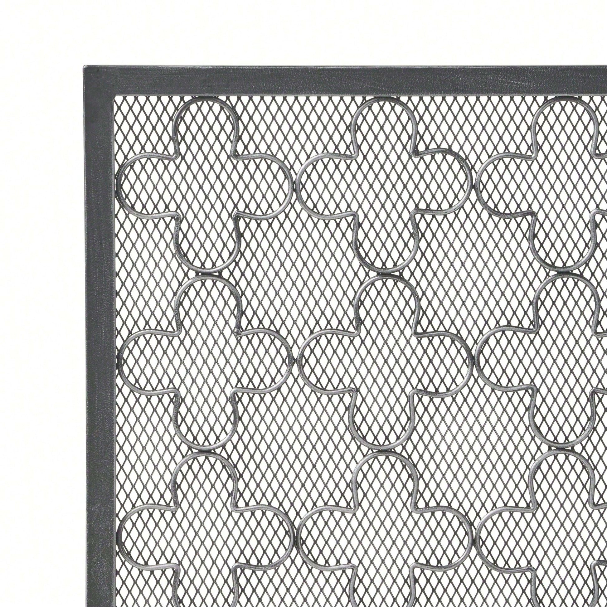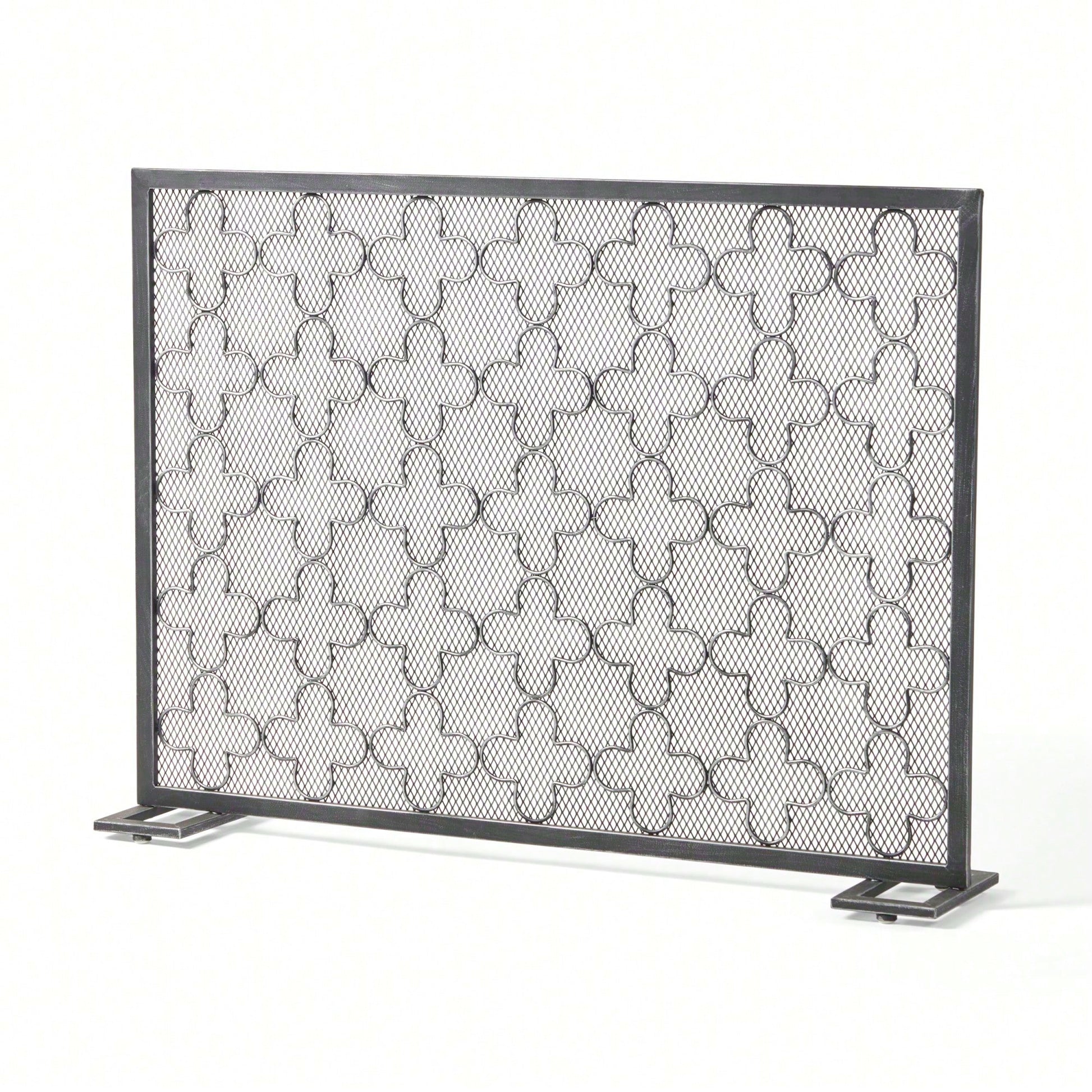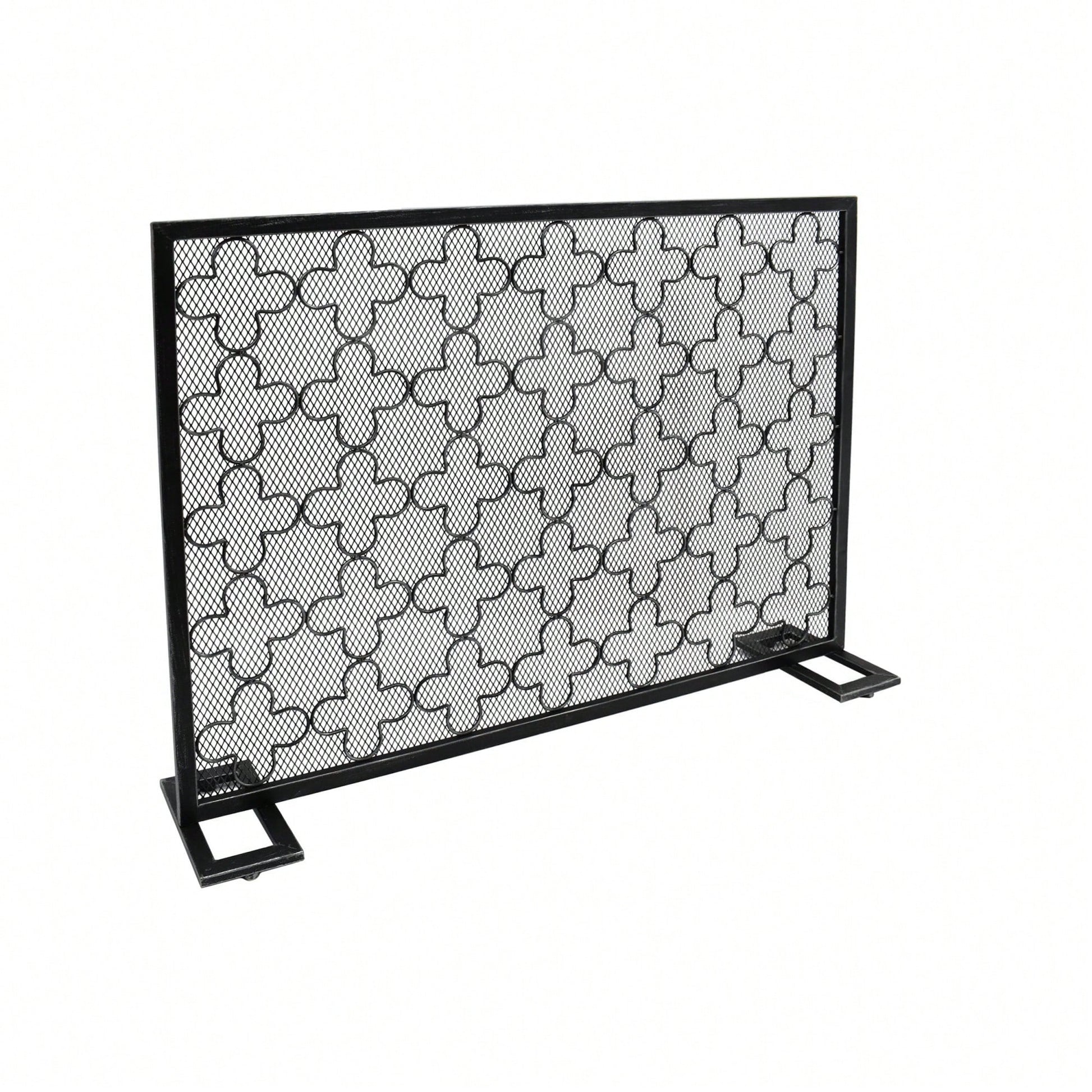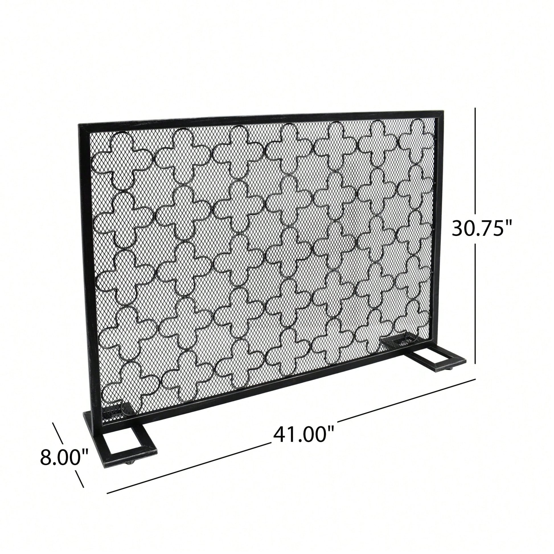 Enhance your fireplace experience with this stylish and functional fireplace screen. Designed to protect against hot embers and flying sparks, it combines safety and aesthetics seamlessly. The modern single panel design showcases clean lines and a chic clover trellis pattern, making it a beautiful addition to your living space. Crafted from durable iron with a matte finish, this fireplace screen offers both strength and a polished appearance, ensuring it remains a reliable companion by your fireside for years to come. Its dimensions of 30.75" H x 41.00" W x 8.00" D allow it to fit perfectly in various settings, providing warmth and elegance to your home decor.