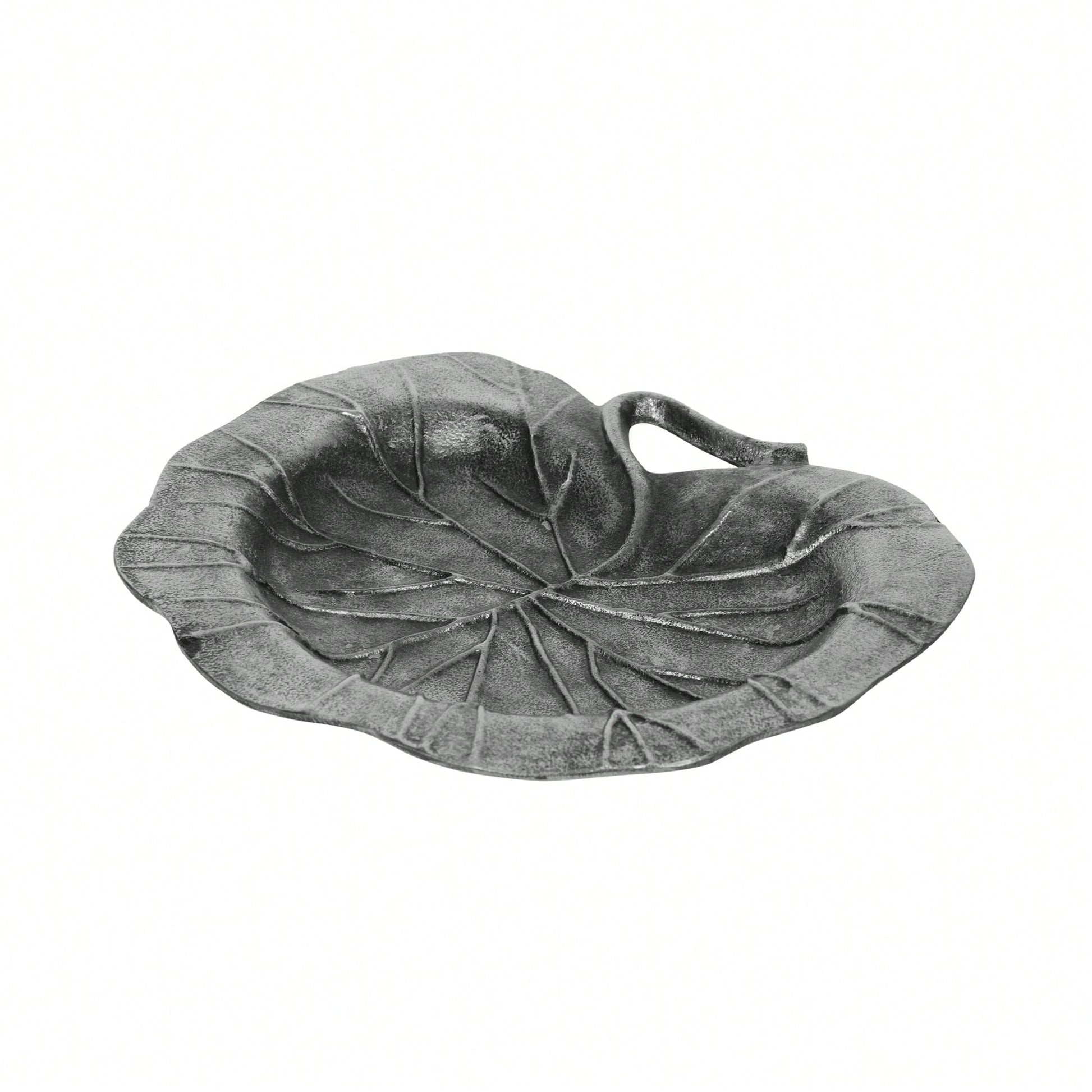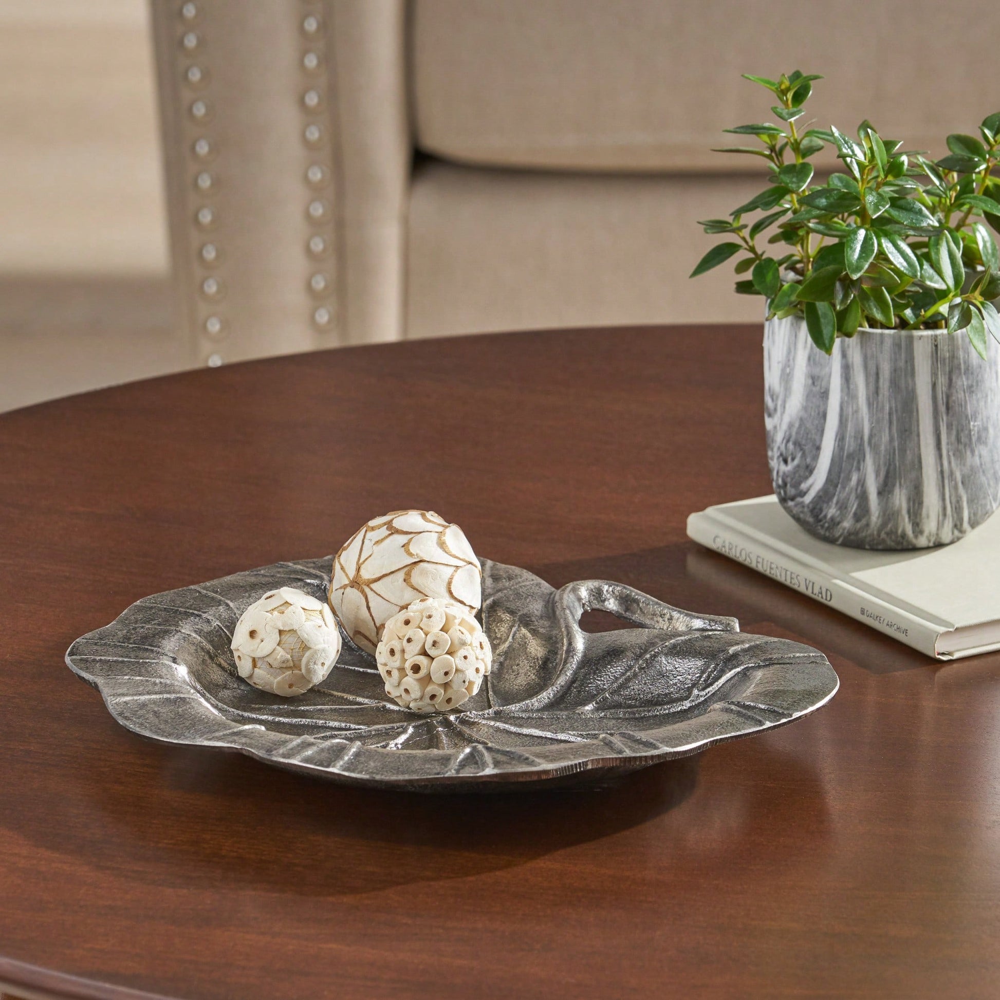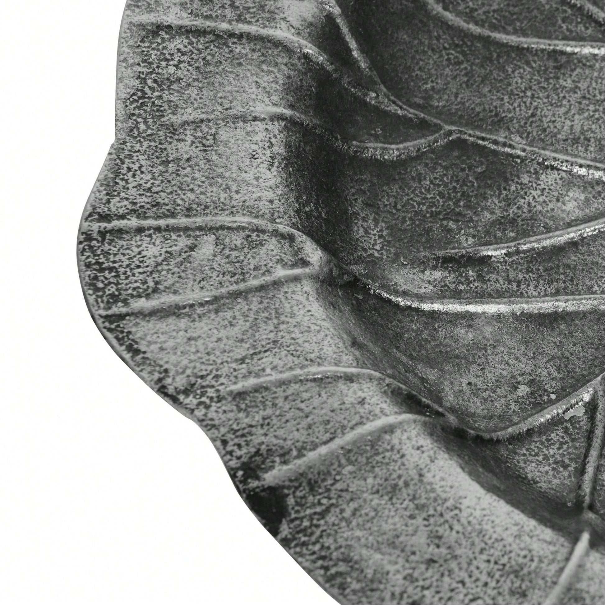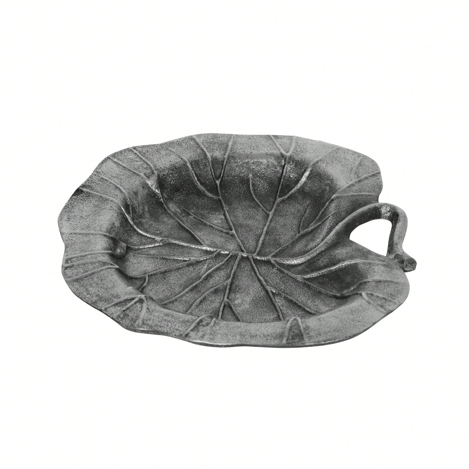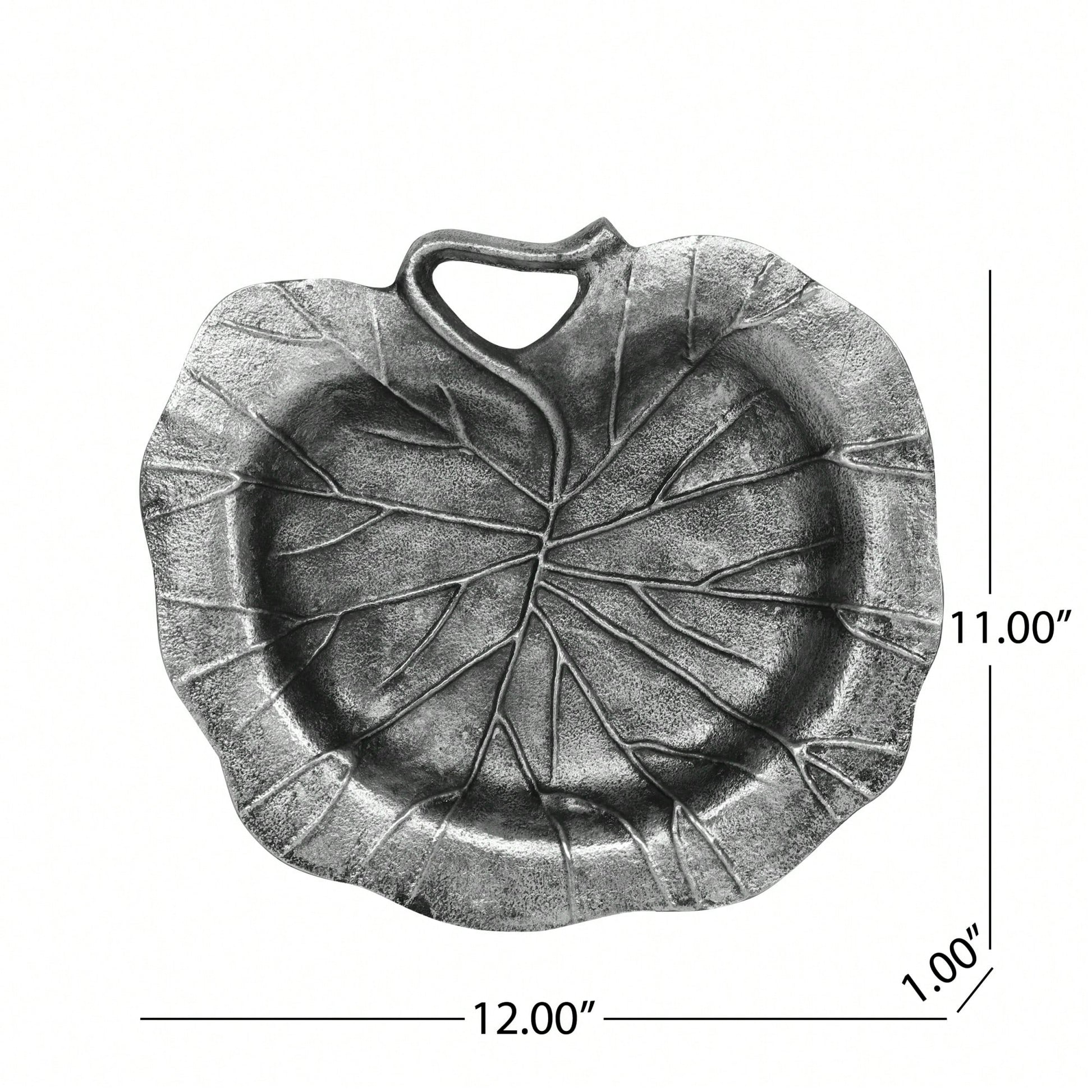 Elevate your interior decor with this exquisite decorative plate. Featuring a round leaf design, it adds a touch of personality to your console, side, or coffee table. Each piece is handmade, showcasing artisan craftsmanship and ensuring that every product is one-of-a-kind due to natural variations. The aluminum structure provides a lightweight yet stable frame, while the rust-resistant quality ensures longevity. The antique nickel finish offers a timeless aesthetic, making it a perfect accent for any interior space.
