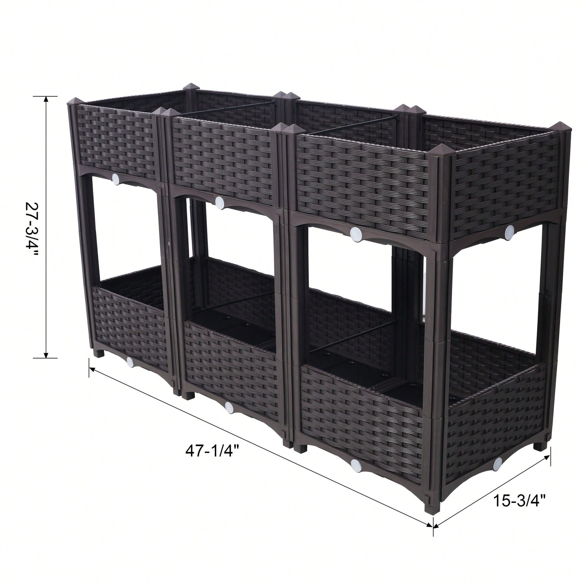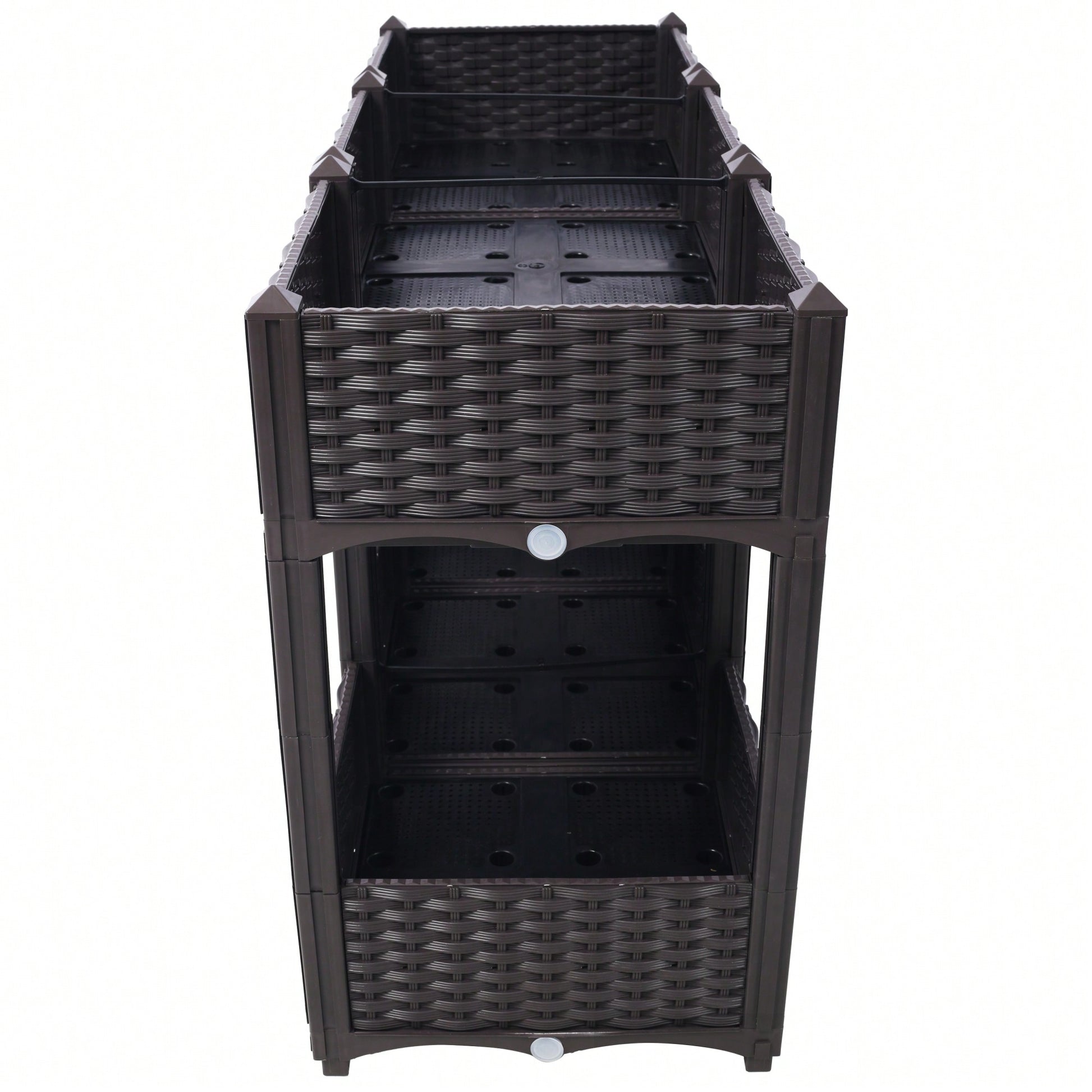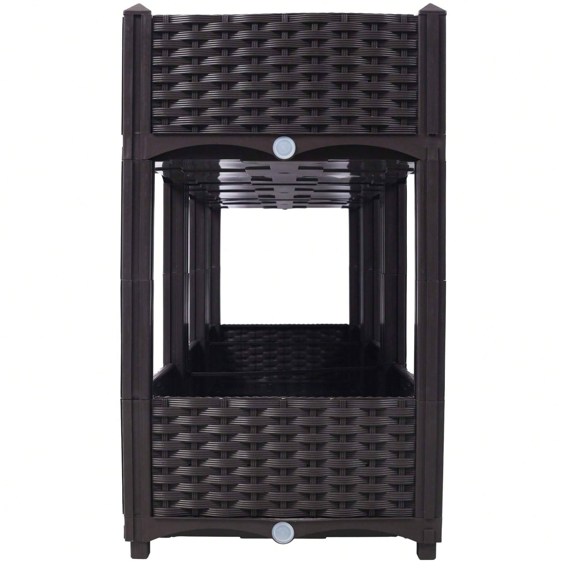 This elevated planter box combines functionality with style, making it a perfect addition to your outdoor or indoor gardening setup. Constructed from durable and lightweight material, the attractive rattan-patterned design not only adds aesthetic appeal but also ensures longevity. The self-draining system features a drainage hole at the bottom, allowing you to manage excess water easily while retaining moisture when needed. Its modular design means you can personalize your gardening space-add or remove legs and arrange them in ways that fit your space perfectly. The raised height of these planters offers numerous advantages, including protection from weeds, animals, and easier access for those with mobility challenges. Assembly is quick and simple, and the waterproof surface allows for hassle-free cleaning, making it a practical choice for patios, balconies, cafes, and more.