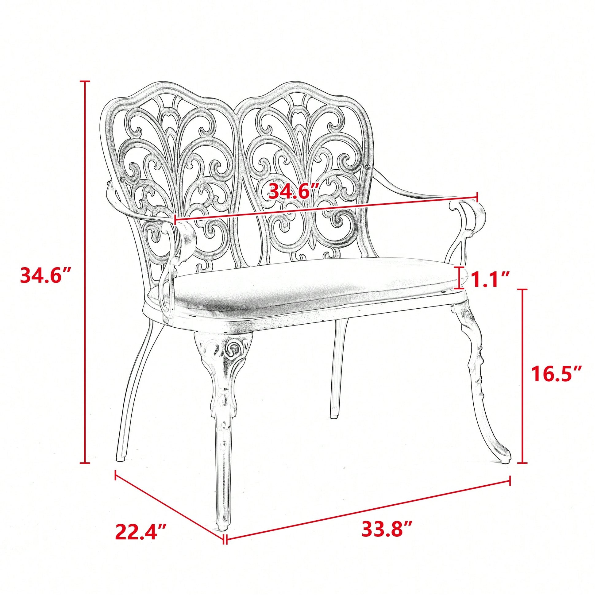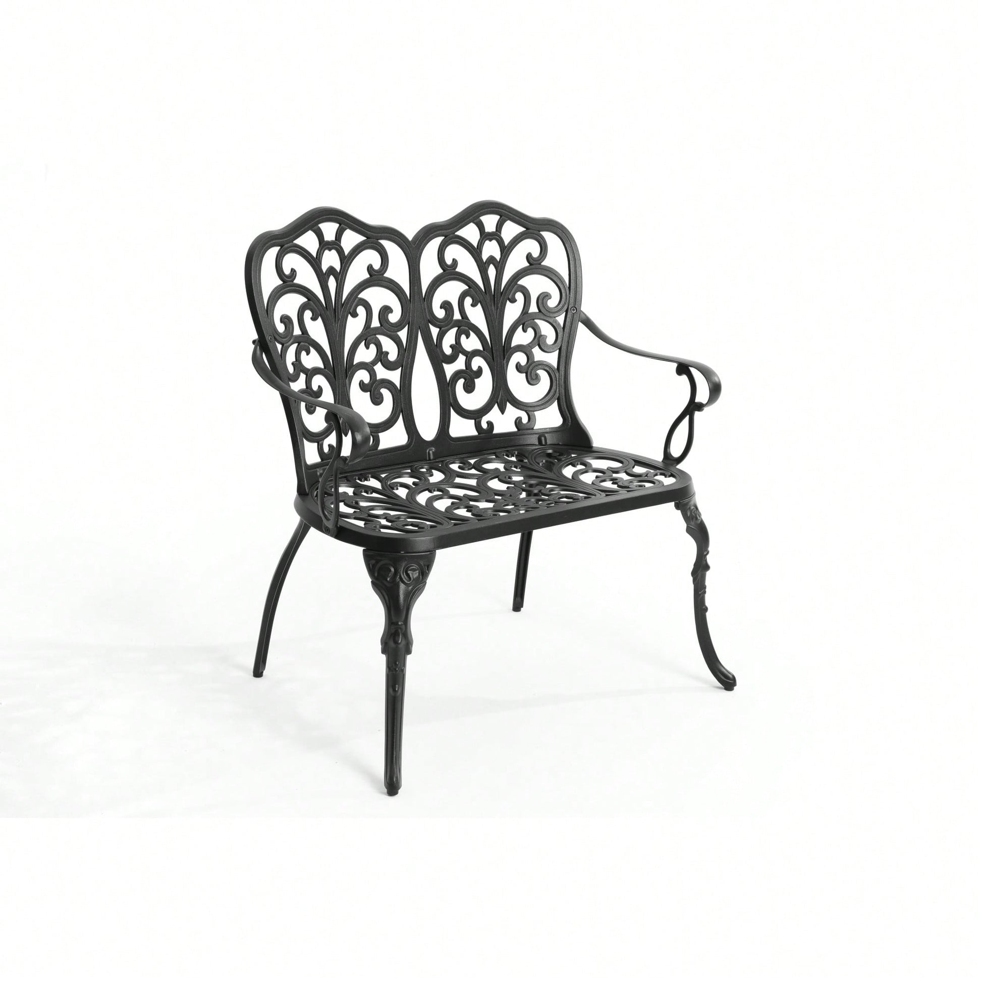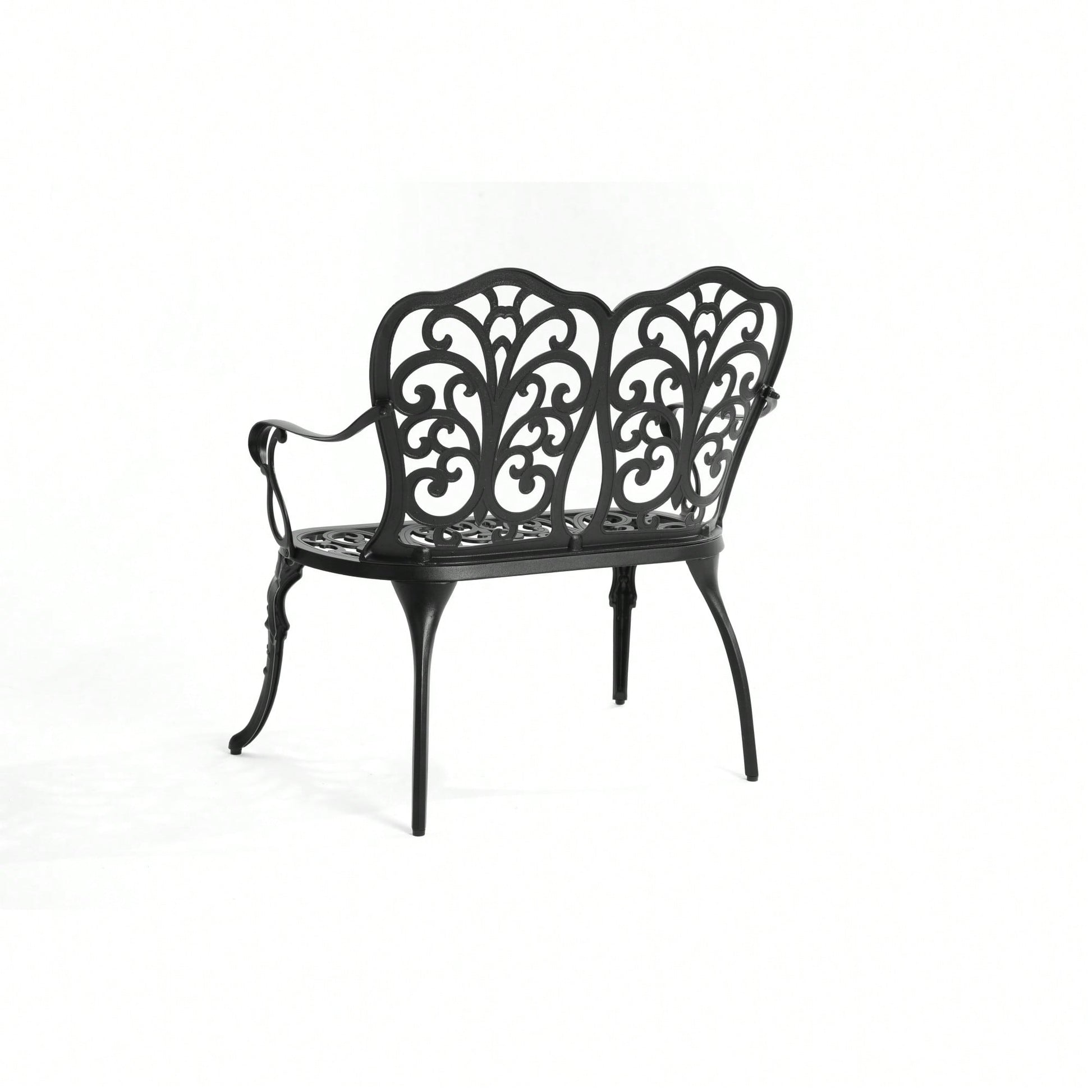 1. Features - Made from durable cast aluminum for long-lasting use - Elegant floral rose design enhances outdoor decor - Ergonomically designed for comfort during extended seating - Suitable for various outdoor settings including patios, parks, and yards - Rust-resistant finish ensures durability against the elements 2. Product Description This metal park bench is crafted from high-quality cast aluminum, providing a sturdy and durable seating option for any outdoor space. The intricate floral rose design adds a touch of elegance, making it a perfect addition to your patio, lawn, or garden. Its ergonomic structure ensures comfort, allowing you to enjoy your outdoor environment for longer periods. The bench is designed to withstand various weather conditions, thanks to its rust-resistant finish, making it a reliable choice for outdoor furniture. Specifications: - Material: Cast Aluminum - Color: Black