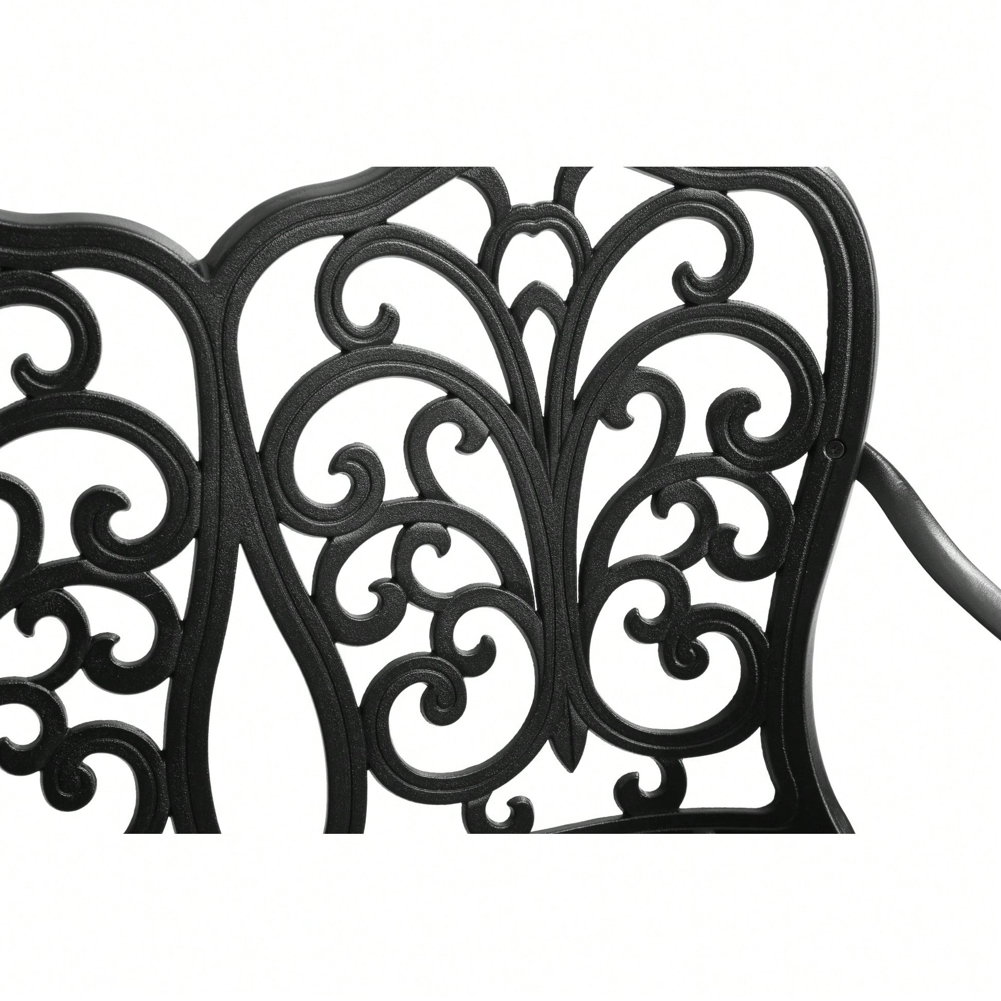 Elegant Floral Rose Design Cast Aluminum Outdoor Garden Bench For Patio Park Lawn Yard Black
