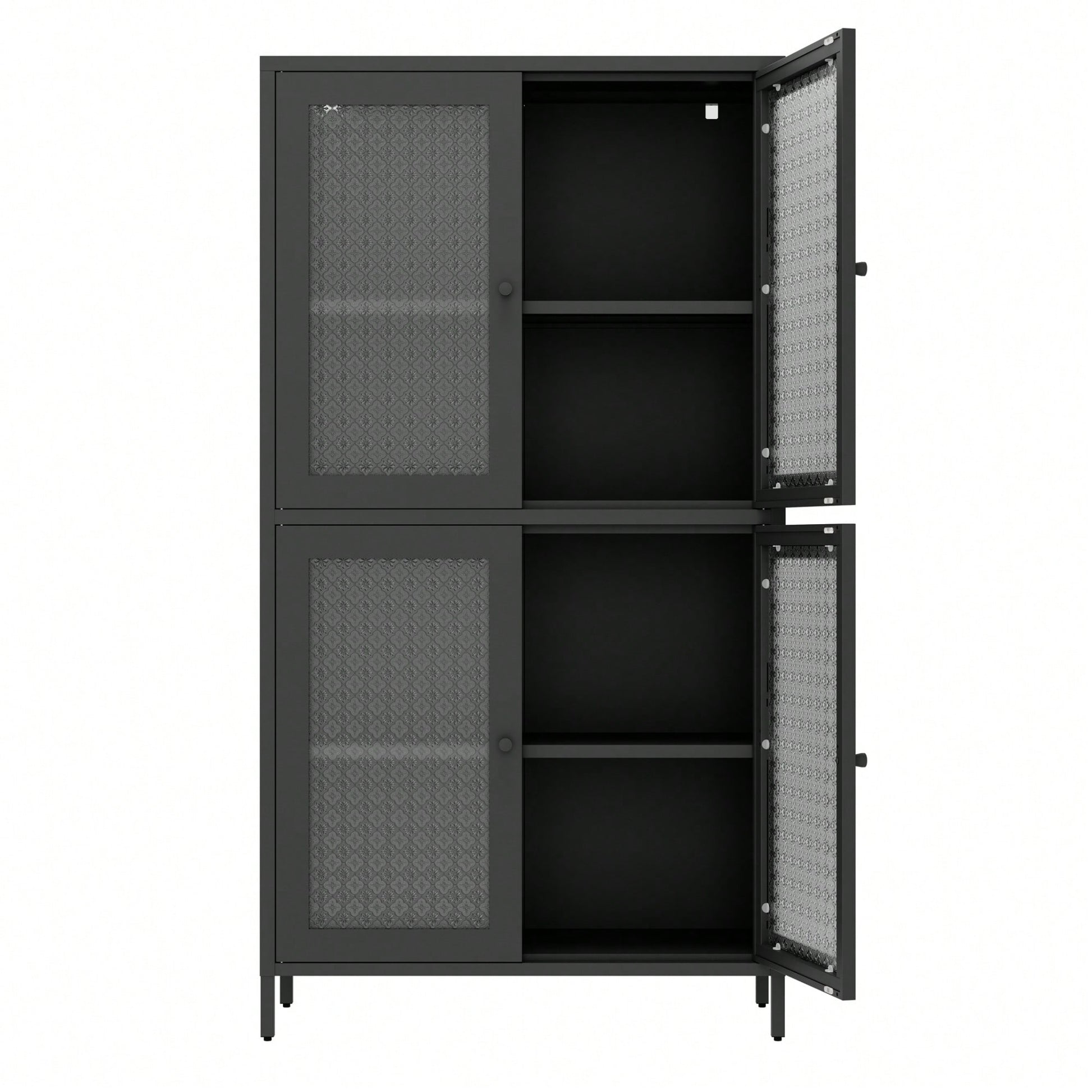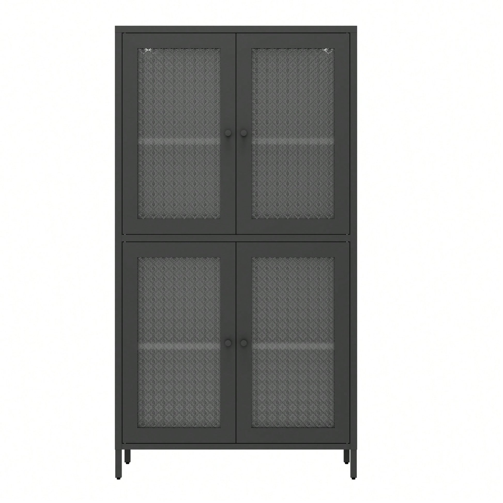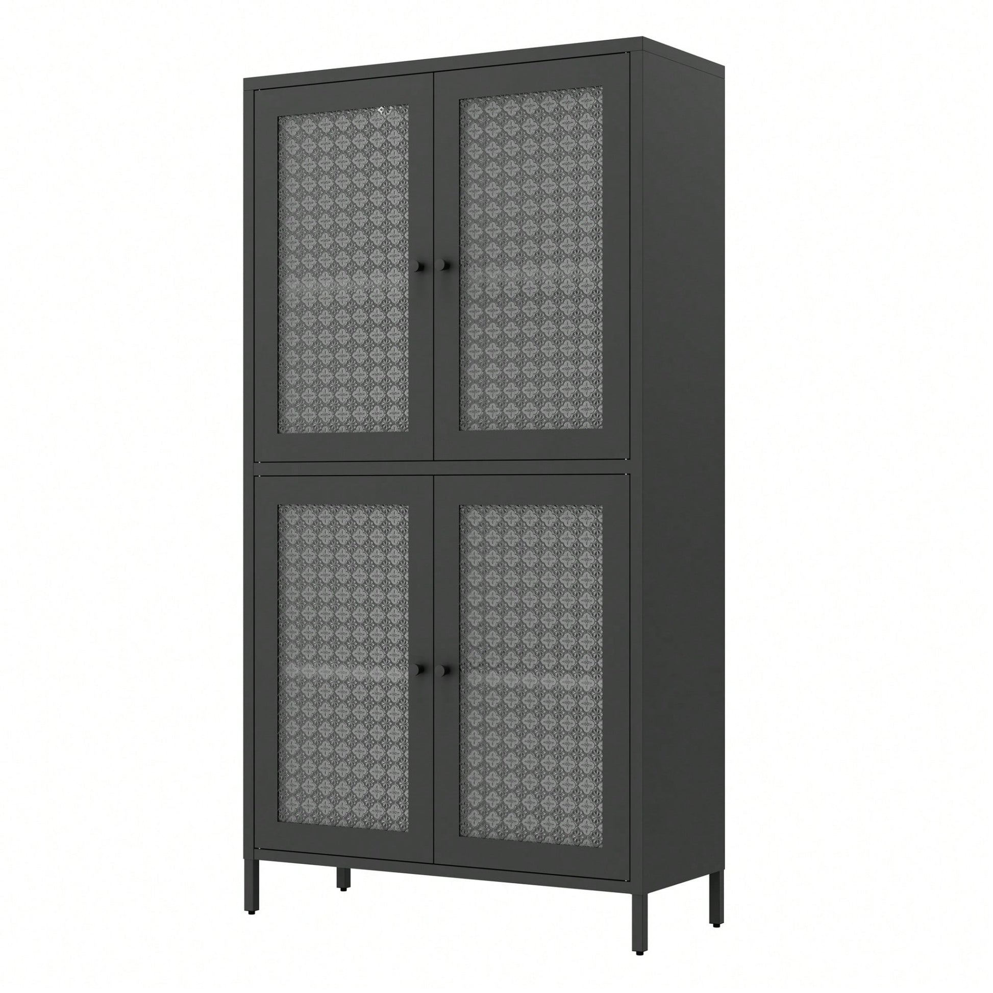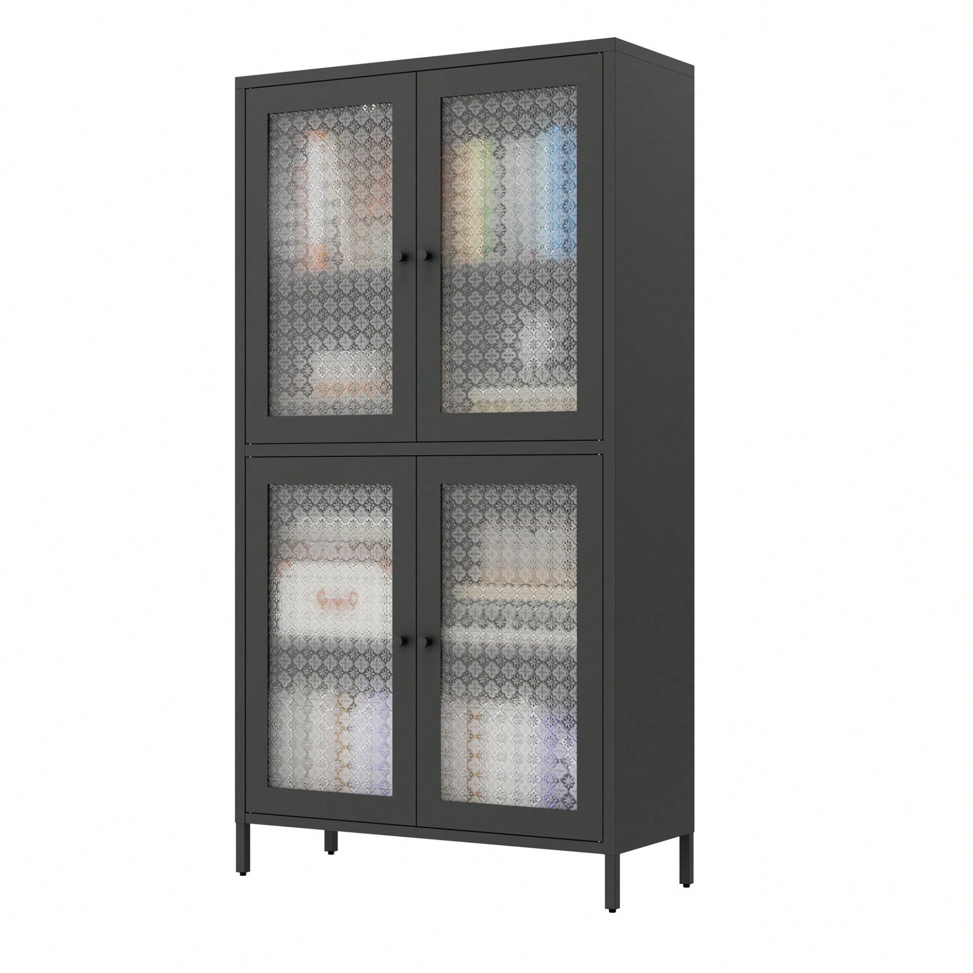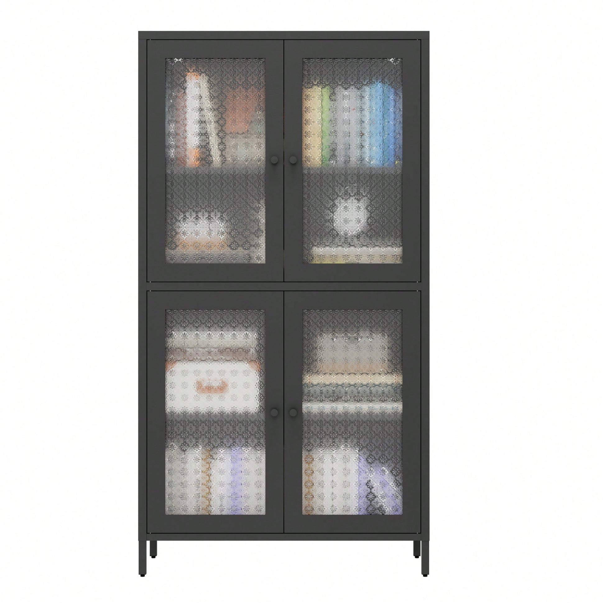Elegant Freestanding Metal Storage Cabinet with 4 Glass Doors and Shelves for Home Office Kitchen Hallway - Black and Begonia Glass