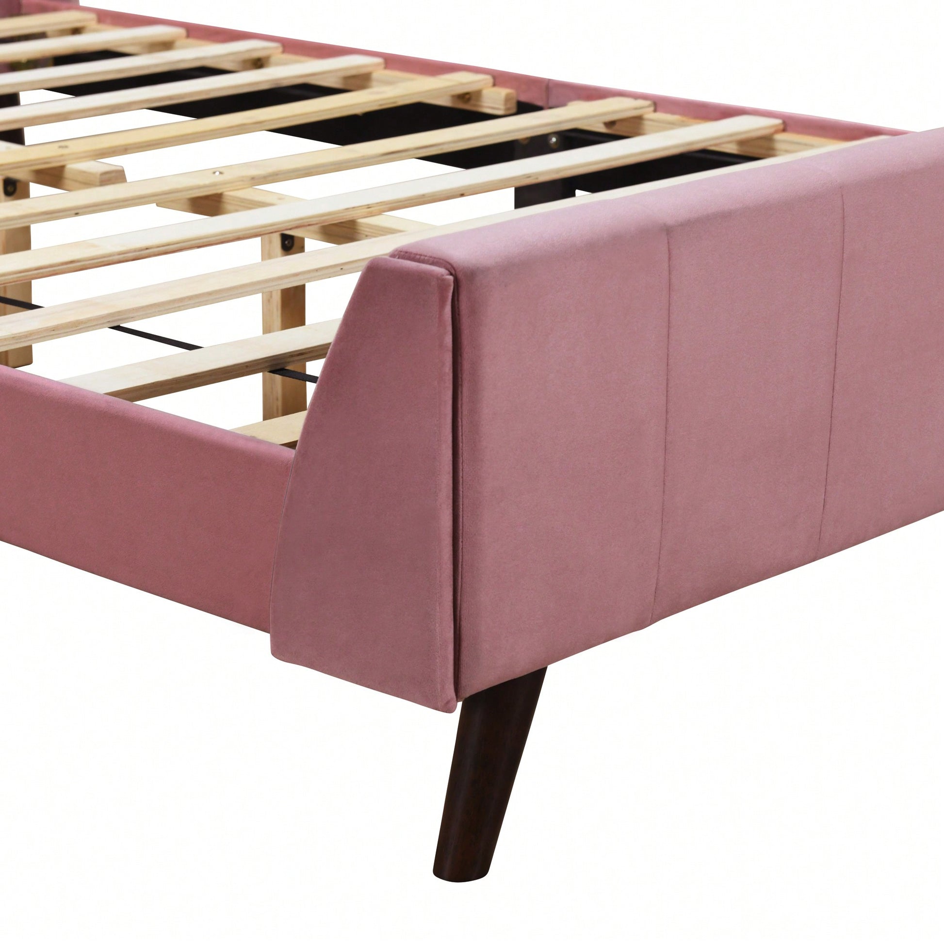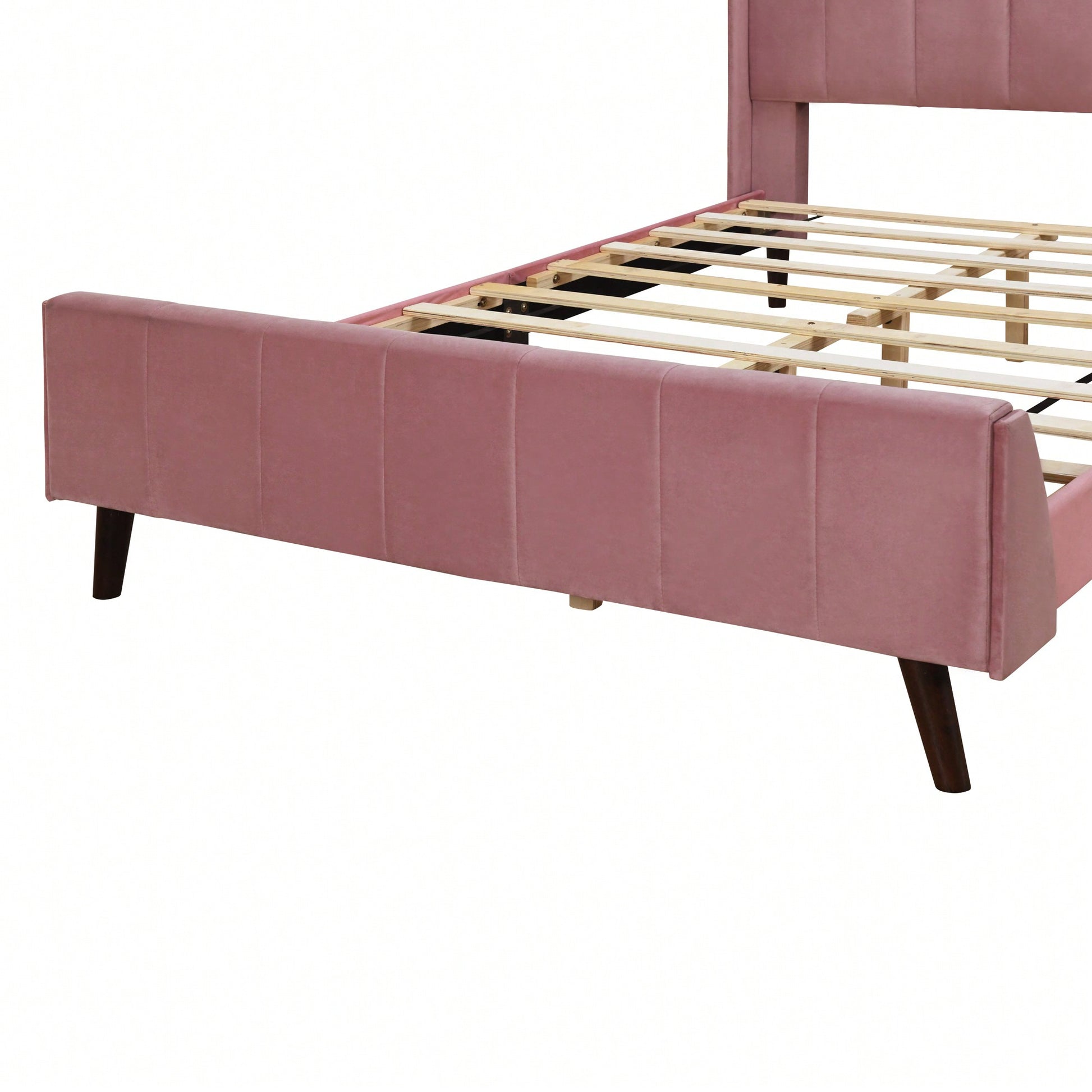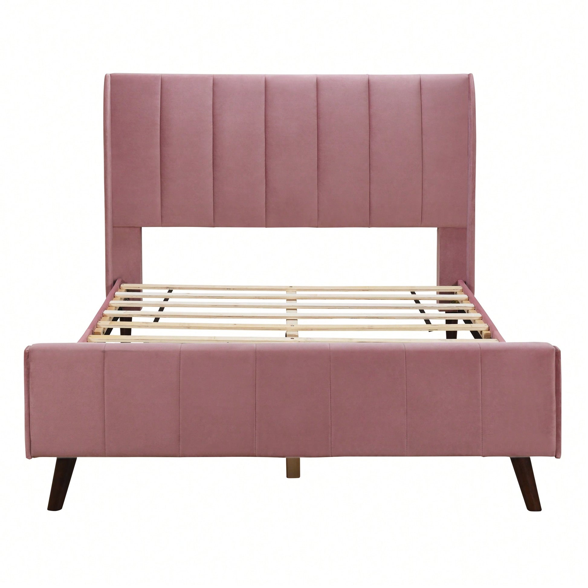 This upholstered platform bed combines style and function seamlessly, offering a modern yet timeless design suitable for any room. The inviting foam-filled velvet upholstery and tufted headboard add visual interest and comfort. The creatively designed footboard serves a dual purpose, allowing you to hang clothes while enhancing the overall aesthetic. Crafted from durable plywood, this frame ensures a stable foundation that can hold up to 700 lbs. With its hollow design underneath, you can effectively utilize the vertical space for additional storage or organization. This bed not only enhances your room's decor but also provides a cozy and practical sleeping solution.