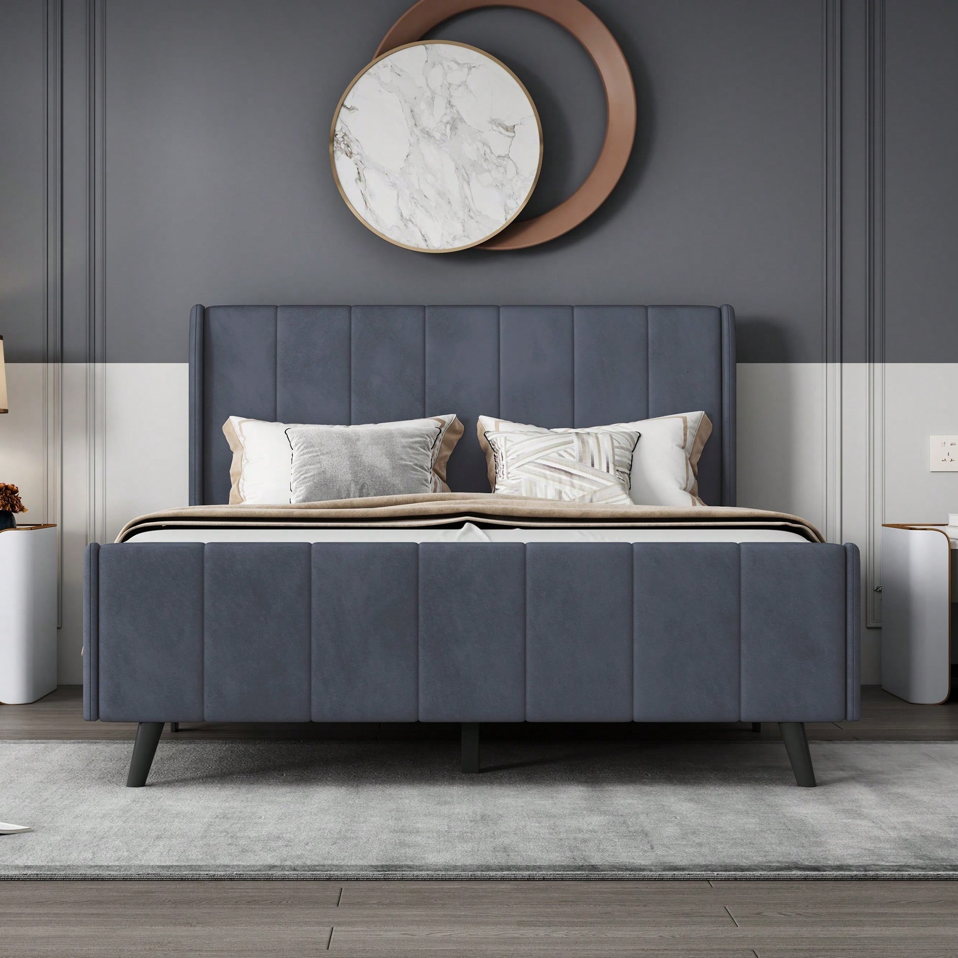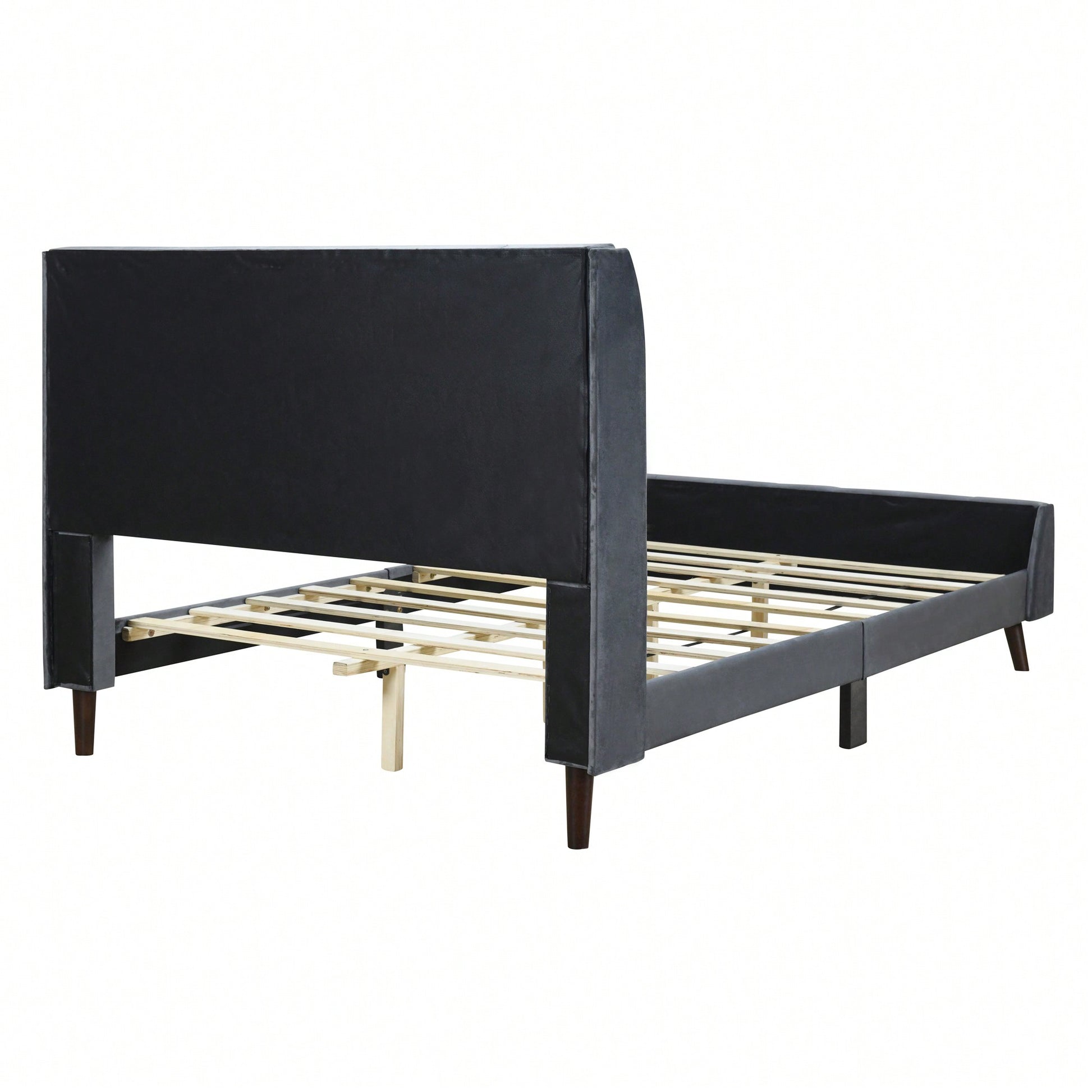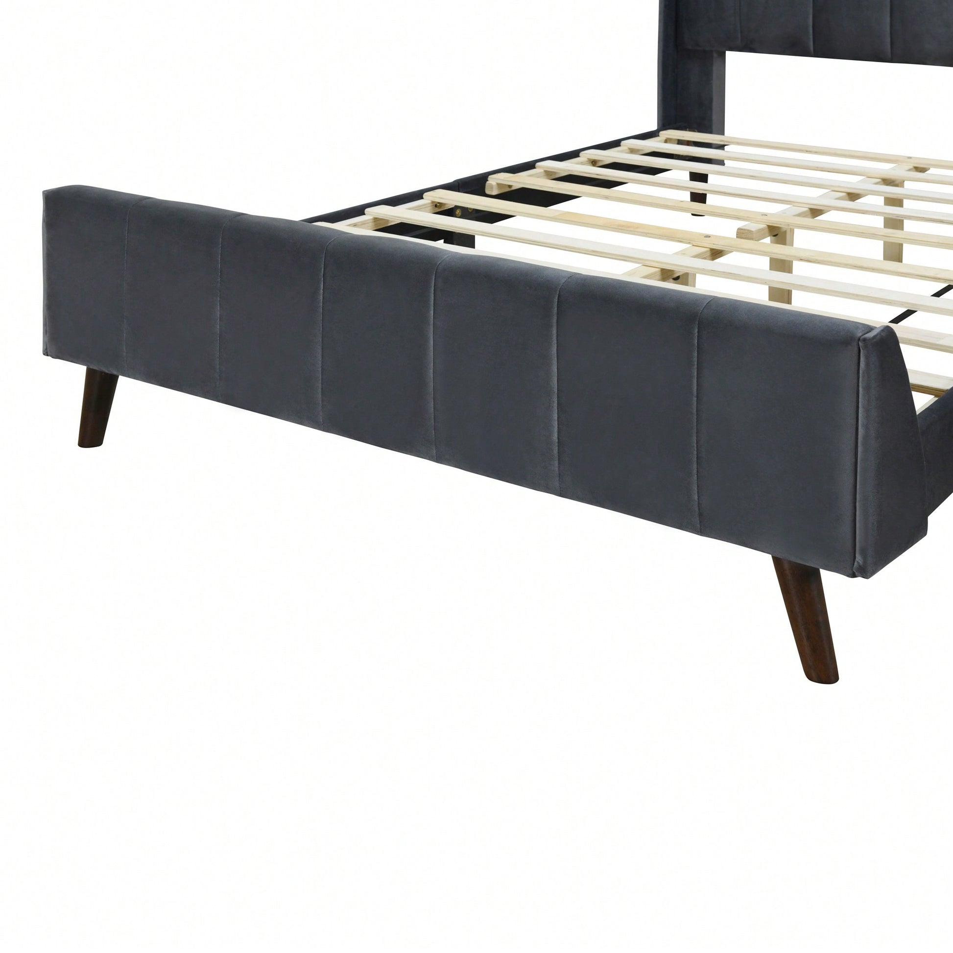 Elegant Full-Size Velvet Upholstered Platform Bed In Gray - Stylish Comfort For Any Bedroom