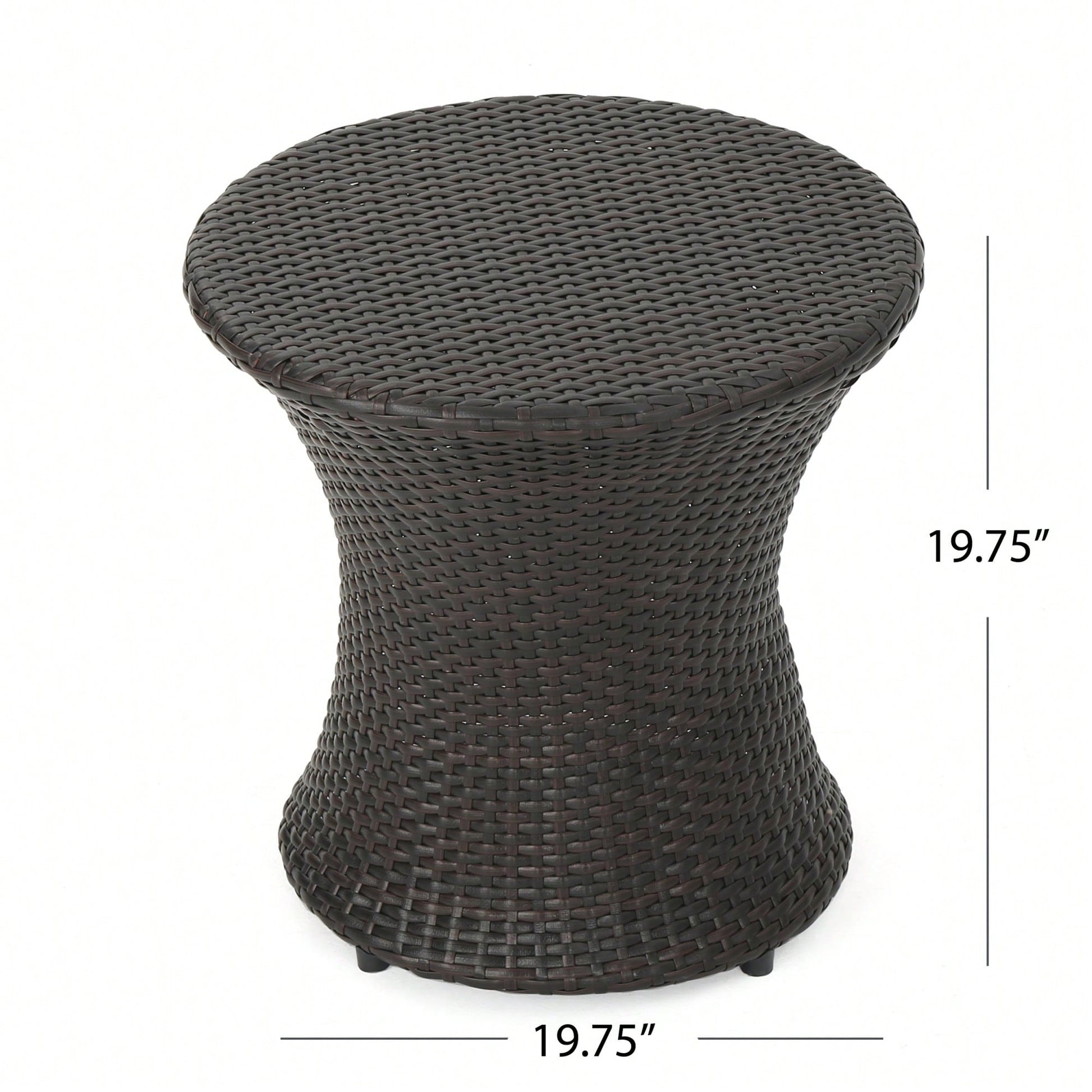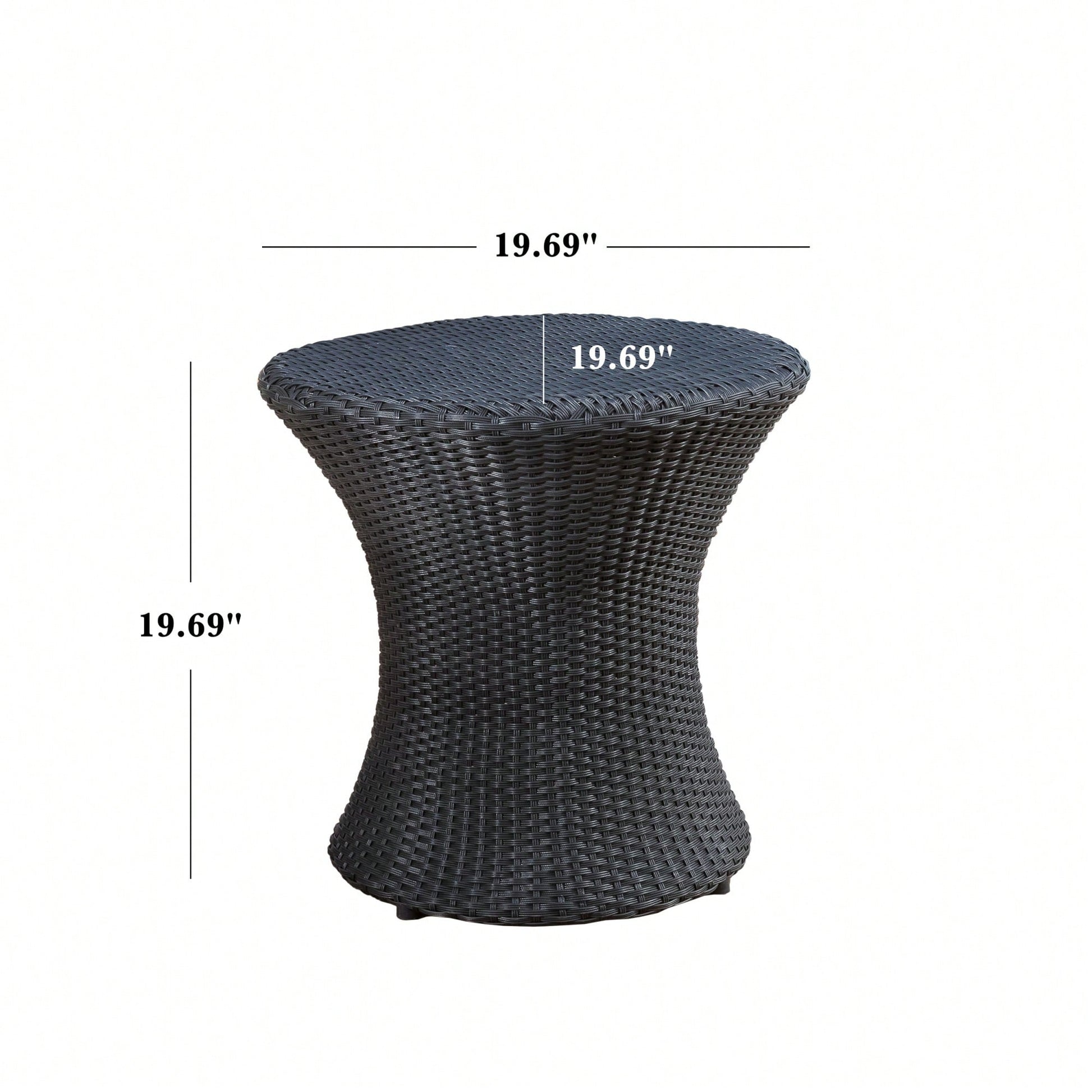 This side table is an exceptional addition to any living space, offering both functionality and style. Measuring 19.75 inches in width, depth, and height, it is the ideal size for smaller areas, providing the perfect spot for books, drinks, and decorative elements while keeping your hands free for relaxation. Its construction with PE rattan ensures that it is easy to maintain-requiring no special care-while being resistant to UV rays, water, and mildew.