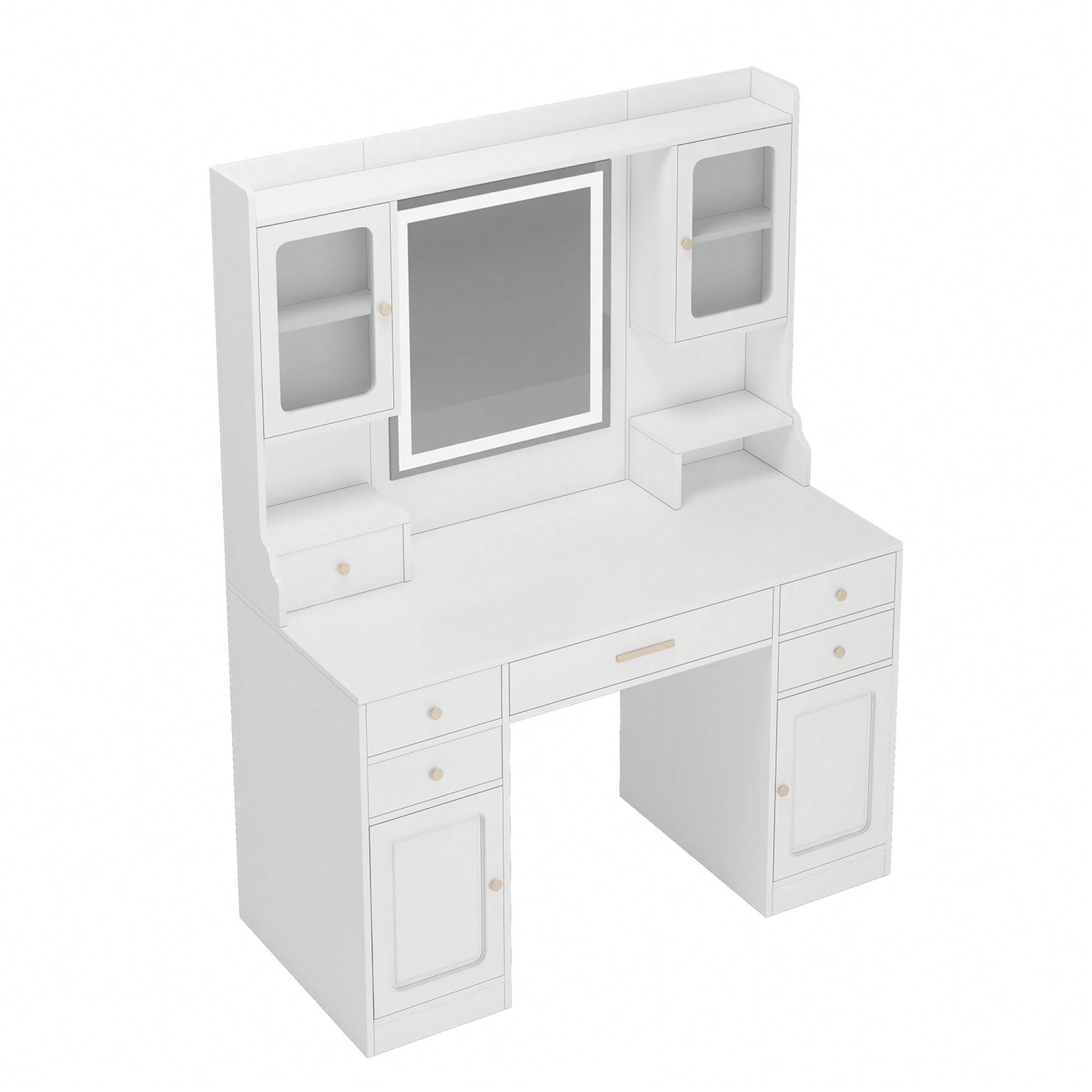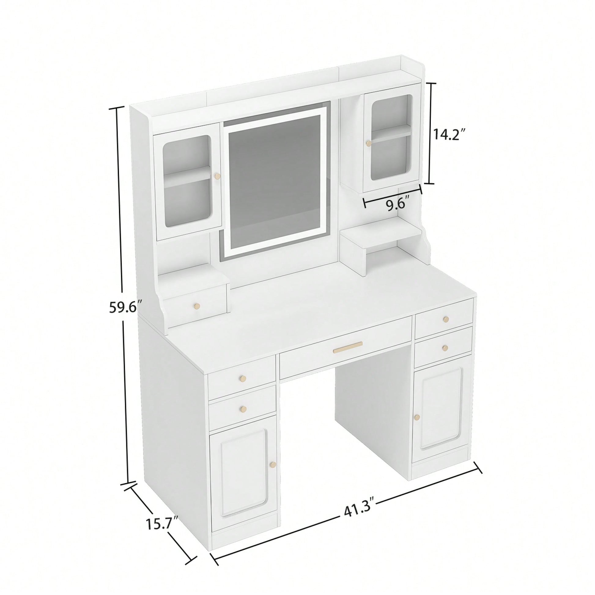 Elegant Makeup Vanity Set With Mirror, 6 Drawers And Shelves, Stylish Dressing Table For Beauty Essentials