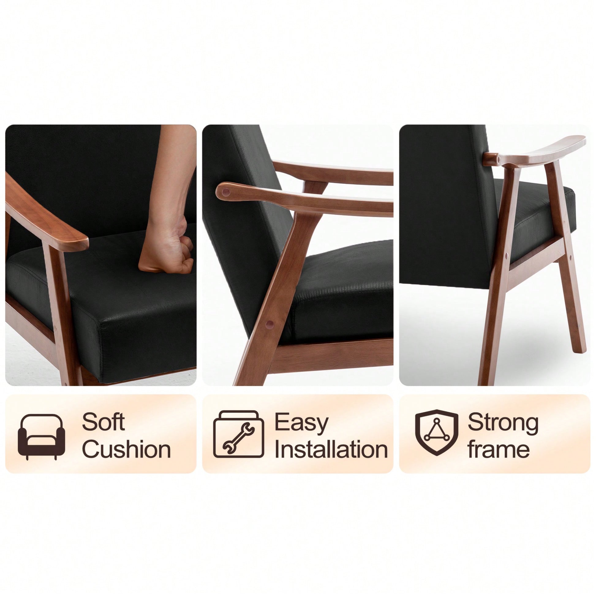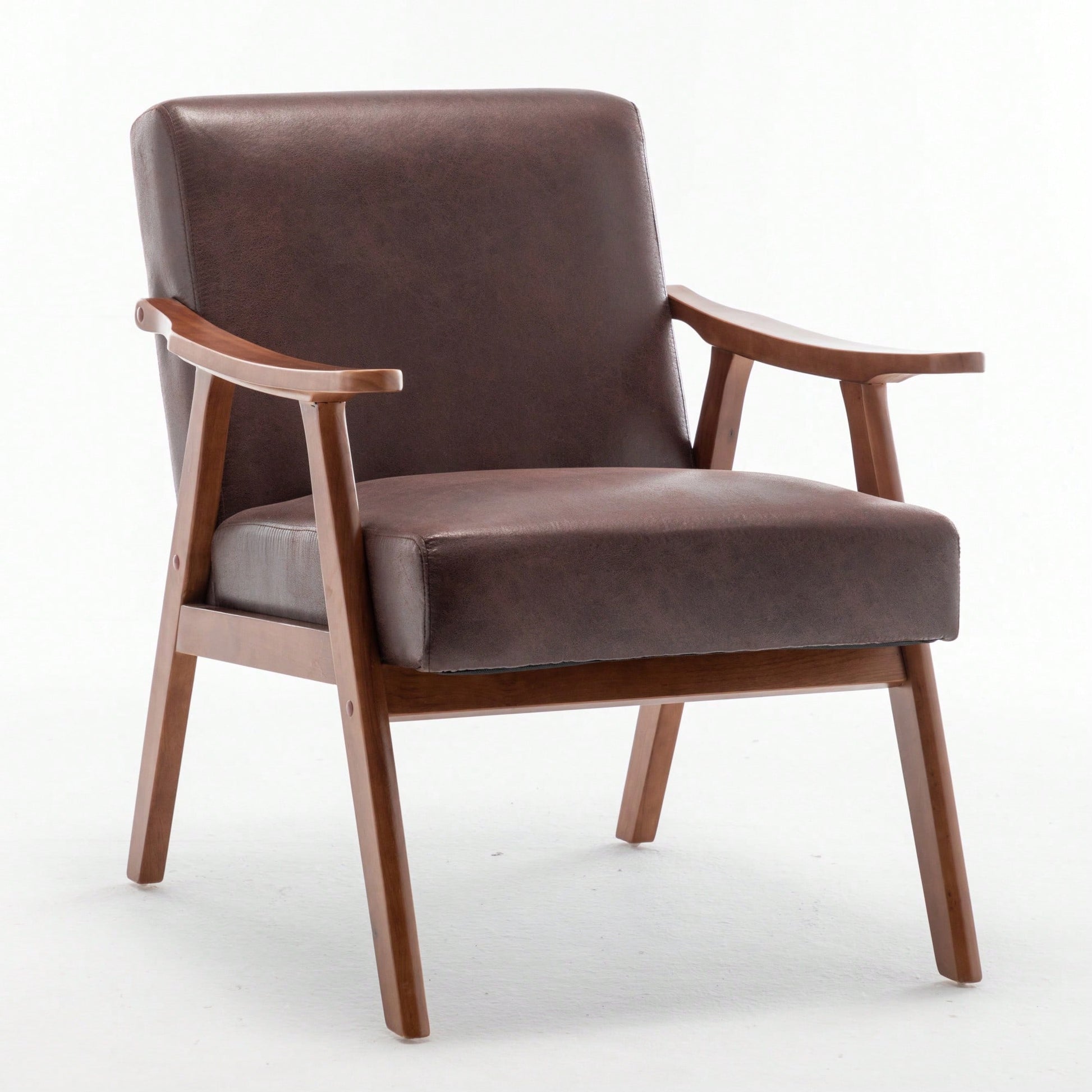 Elegant Mid-Century Modern Accent Chair With Solid Wood Frame And Extra-Thick Backrest For Living Room, Bedroom, Or Reading Nook