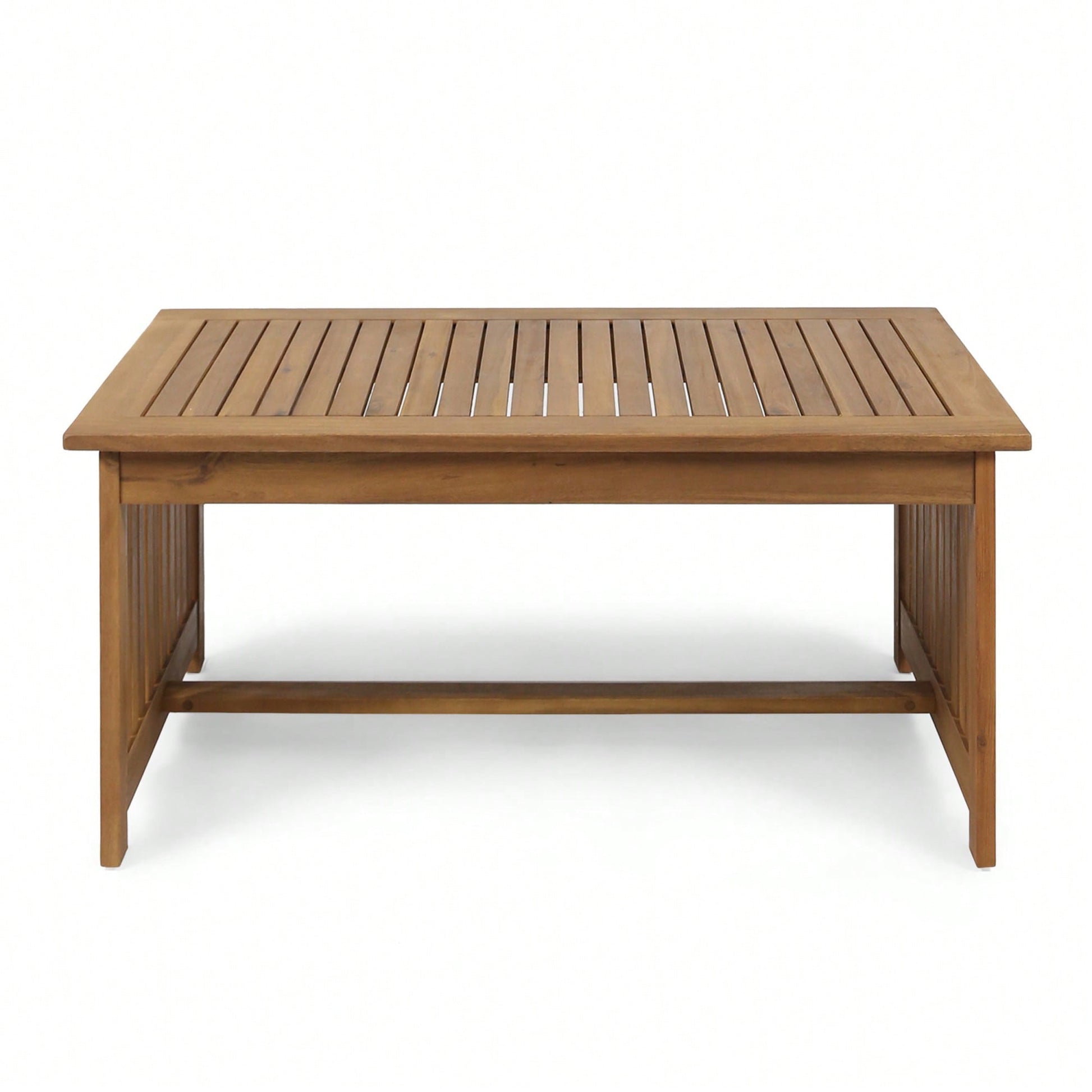This coffee table is a stunning addition to any outdoor space, crafted from durable acacia wood with a beautiful brown patina finish. Its design not only elevates the aesthetic of your seating area but also provides a sturdy surface for drinks and decor. The handcrafted details ensure that each piece is unique, making it a perfect centerpiece for gatherings.